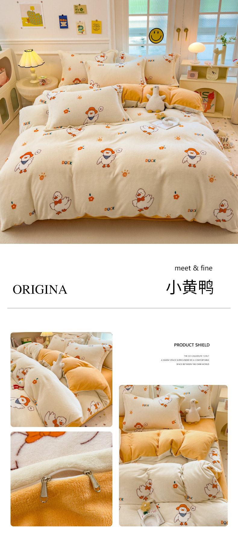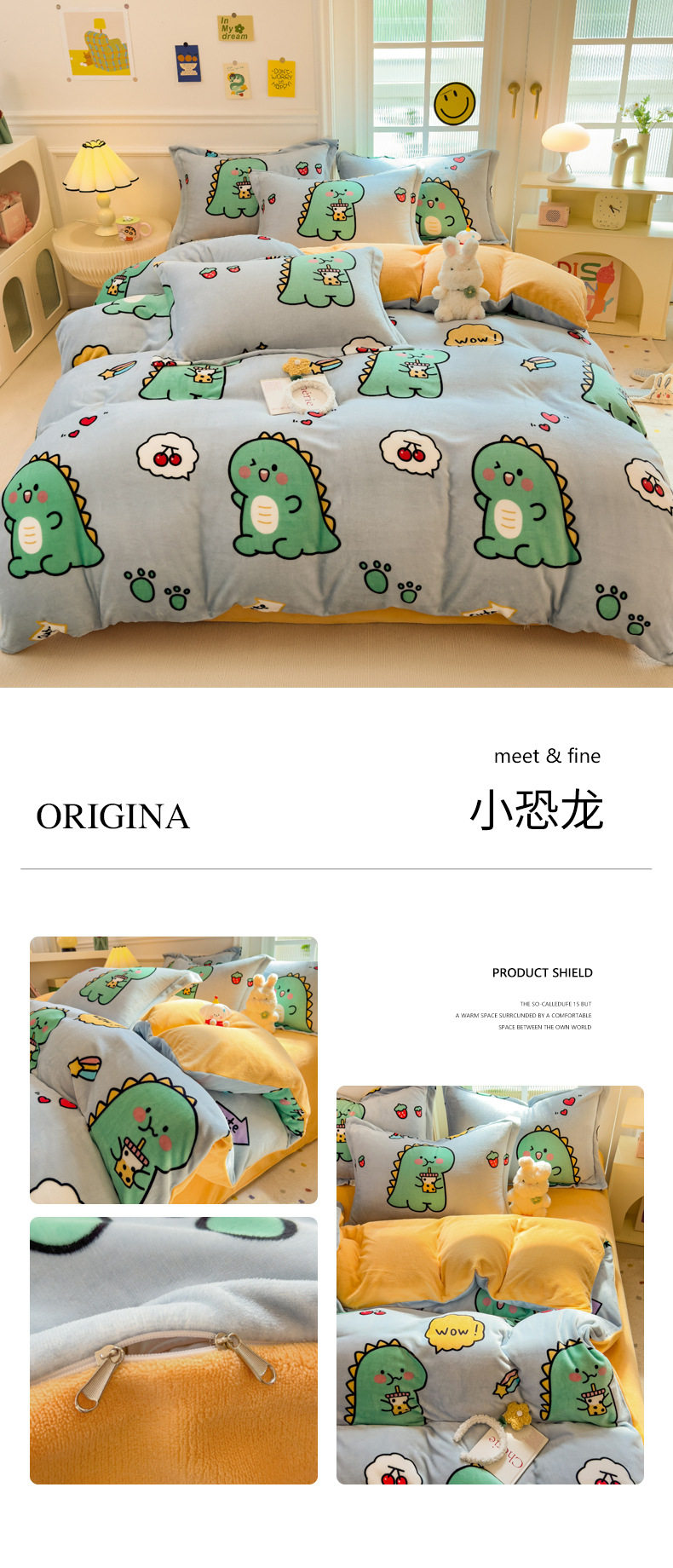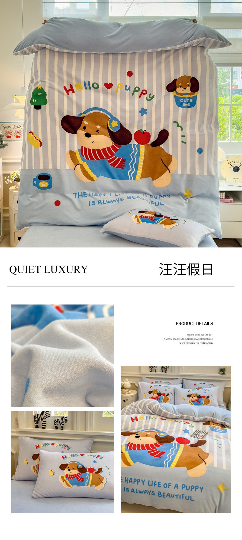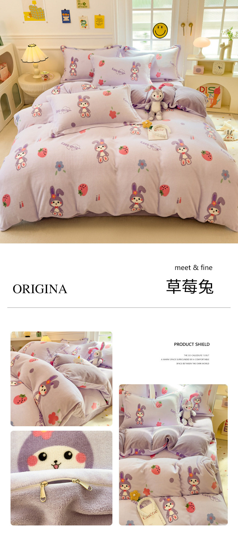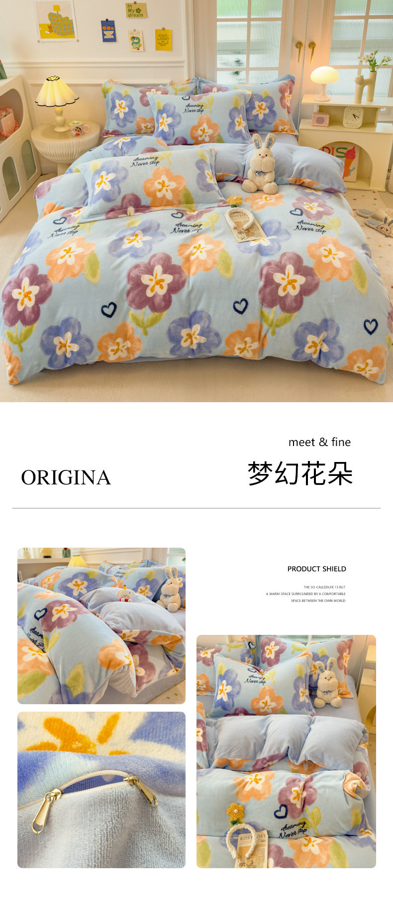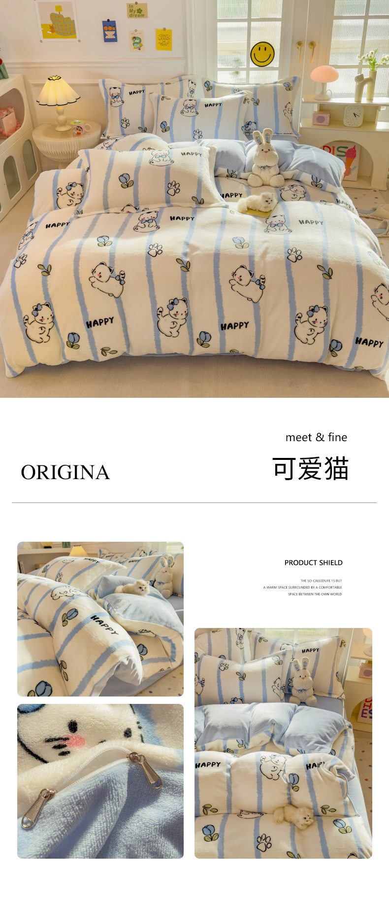 Class a Milk Velvet Large Version Cartoon Four-Piece Winter Thickeneded Coral Velvet Quilt Cover Bed Sheets Student Warm Three-Piece Set