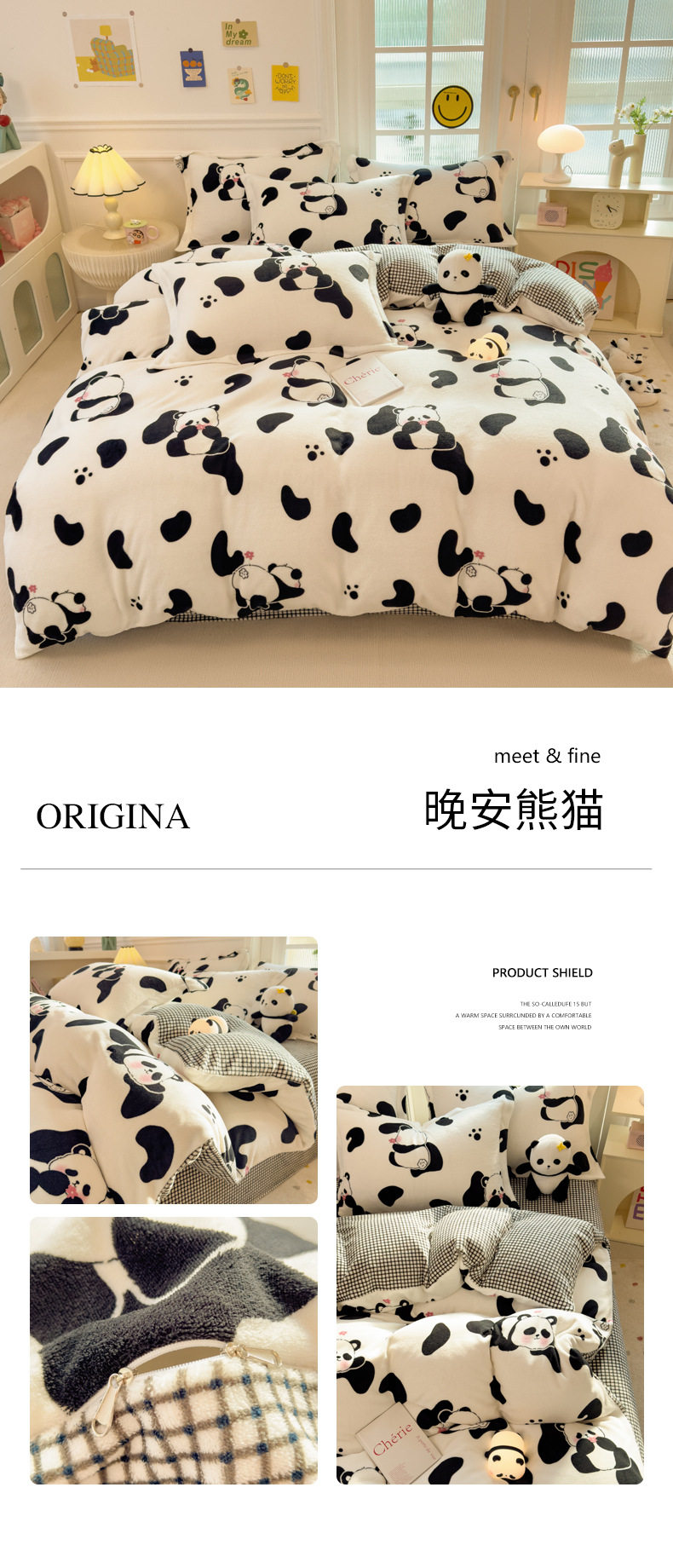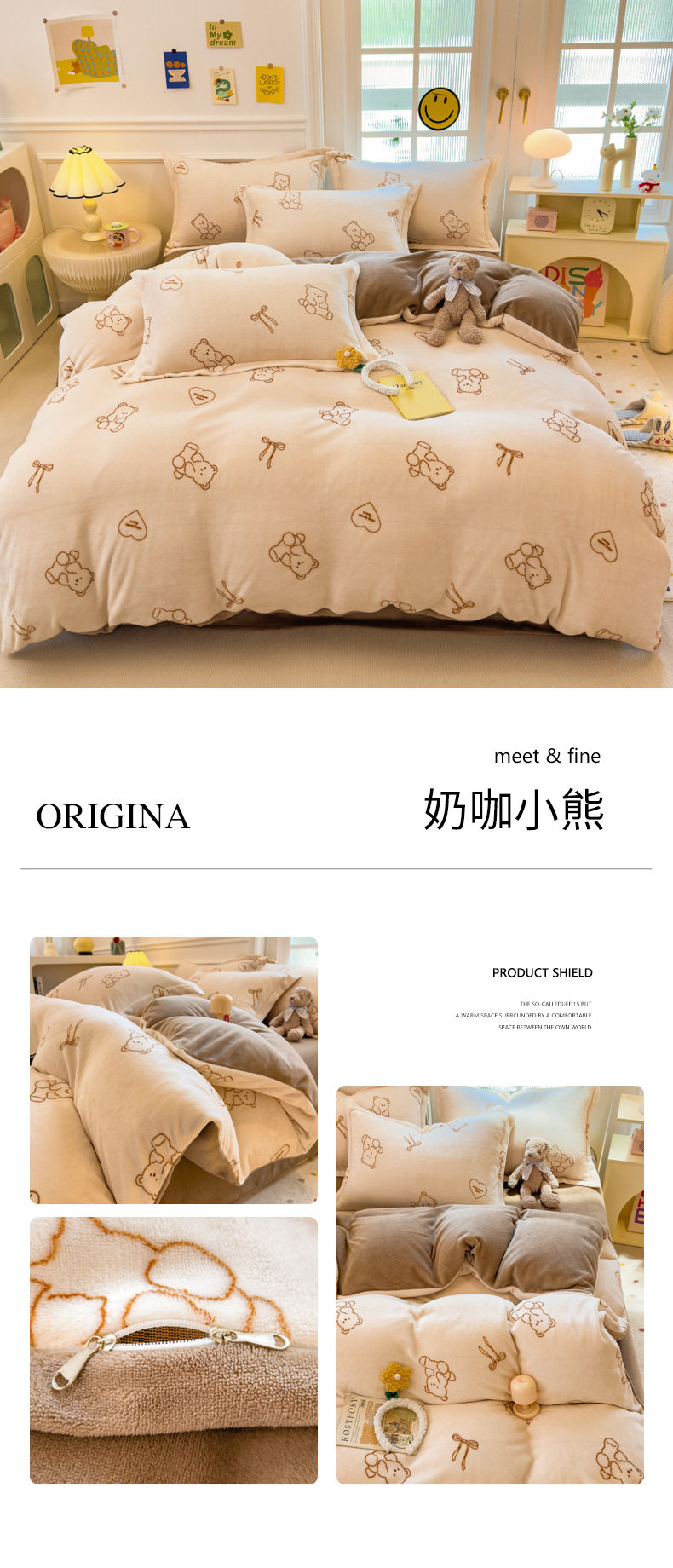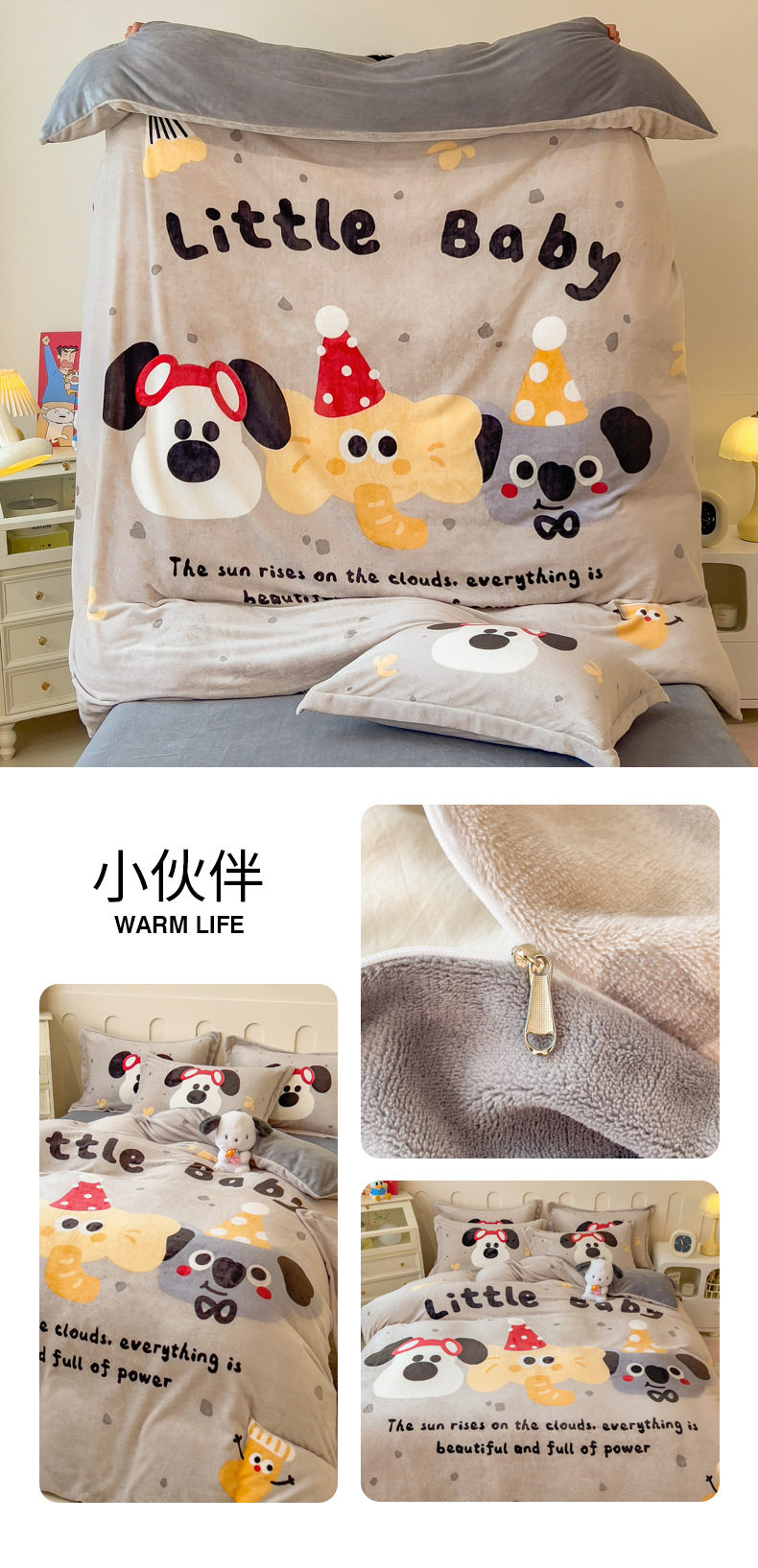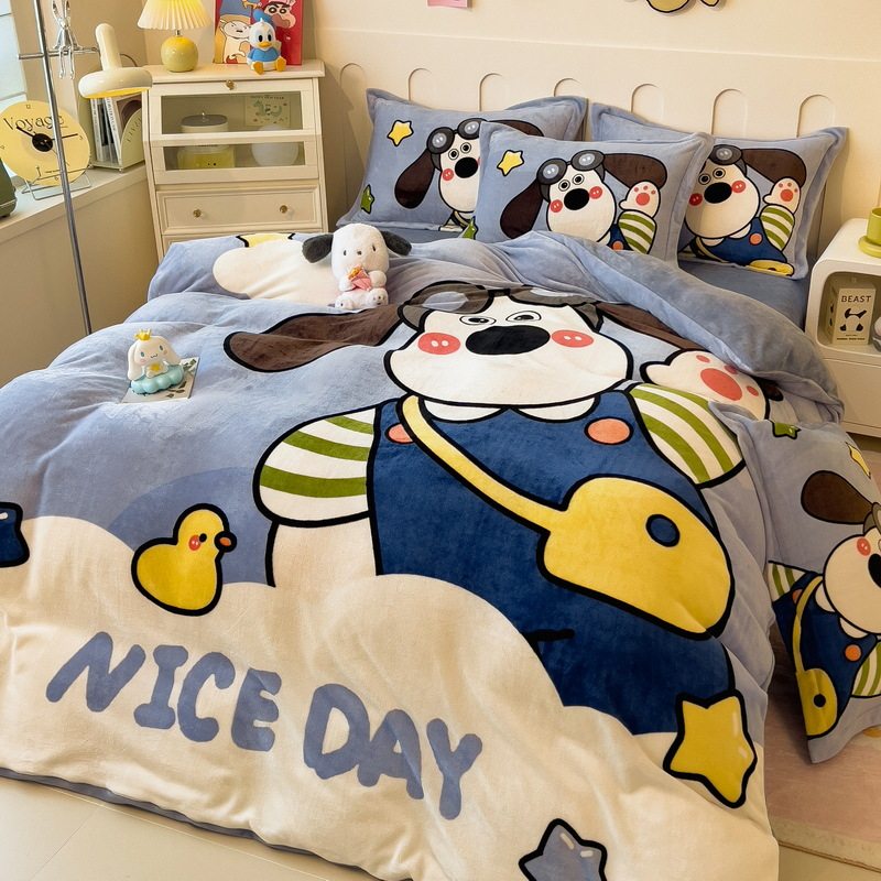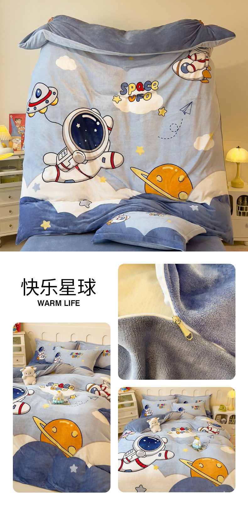 Class a Milk Velvet Large Version Cartoon Four-Piece Winter Thickeneded Coral Velvet Quilt Cover Bed Sheets Student Warm Three-Piece Set