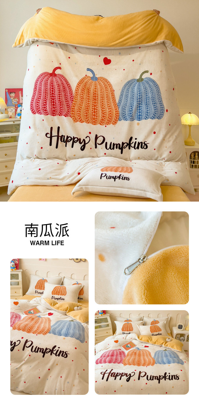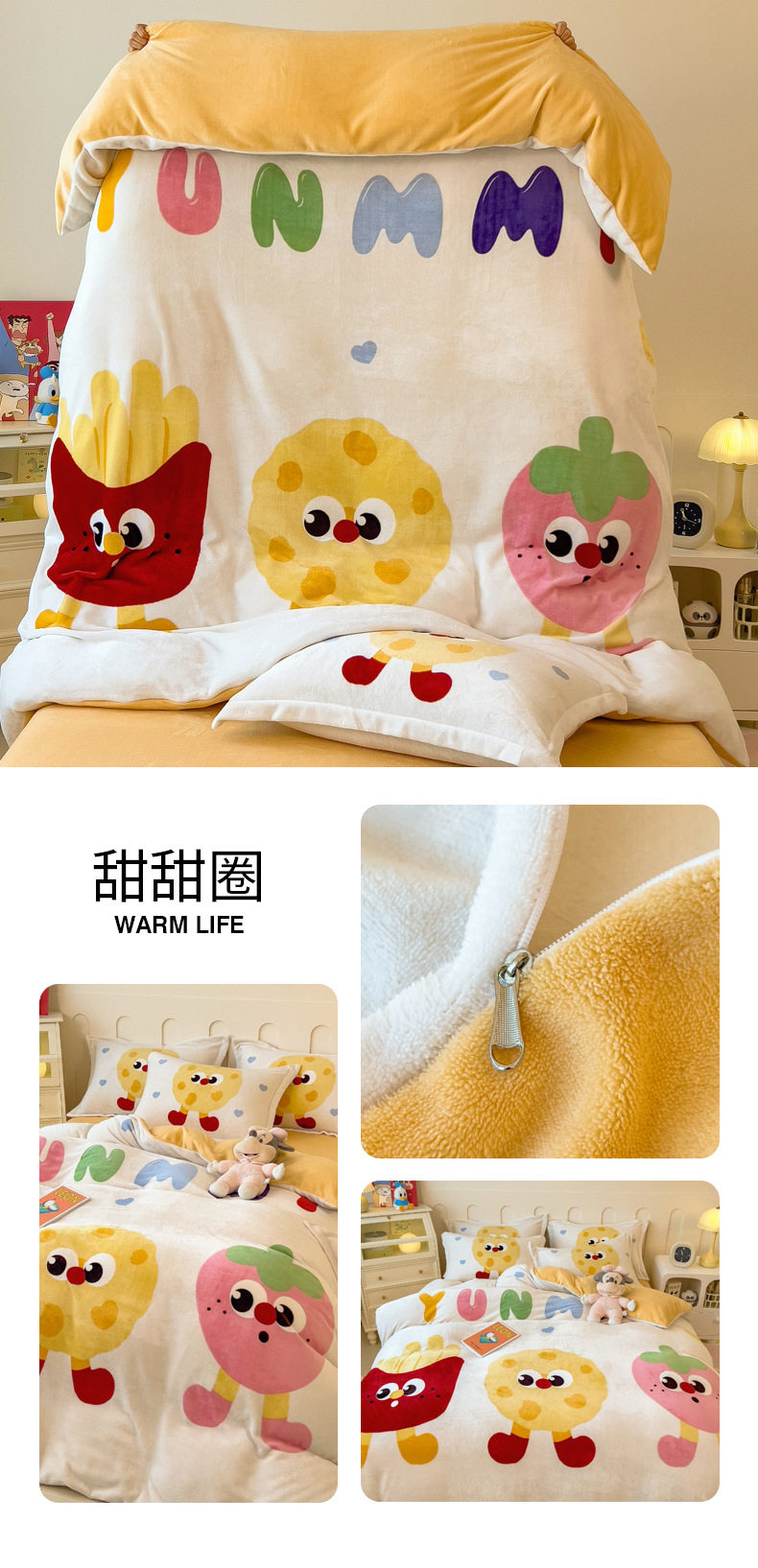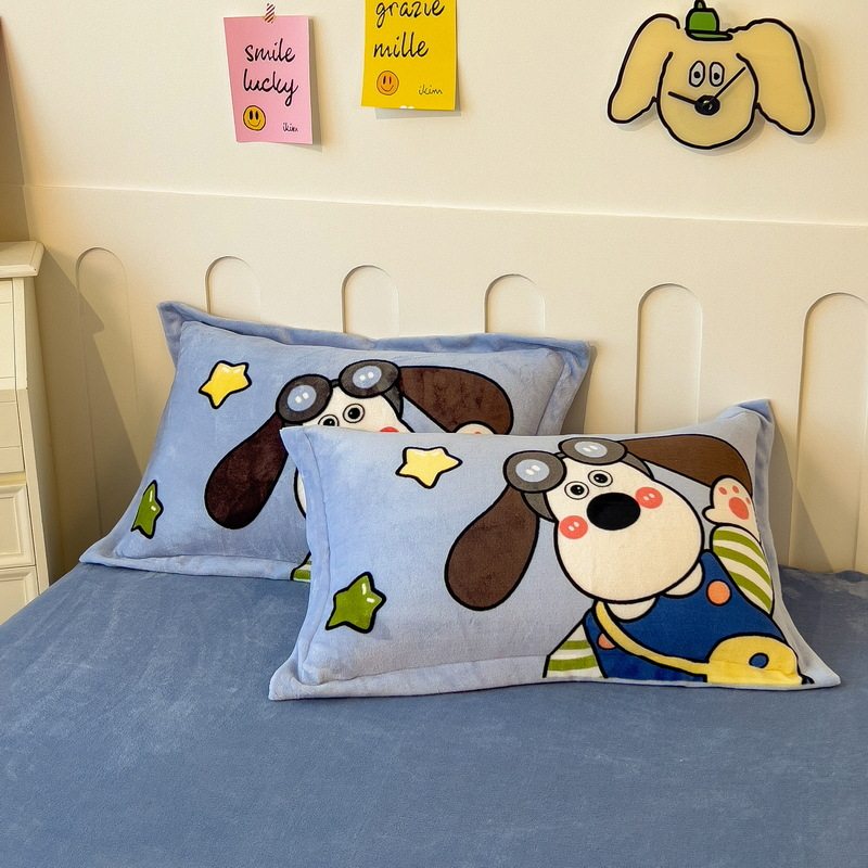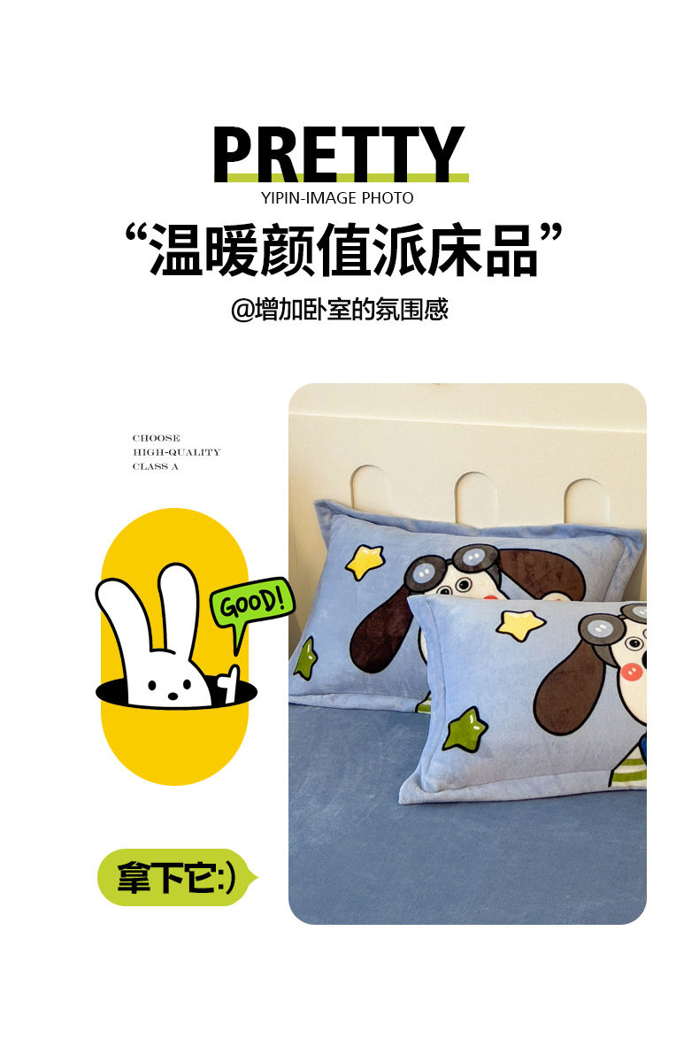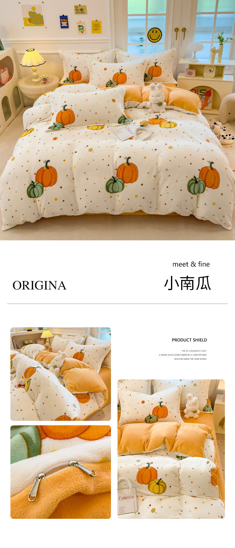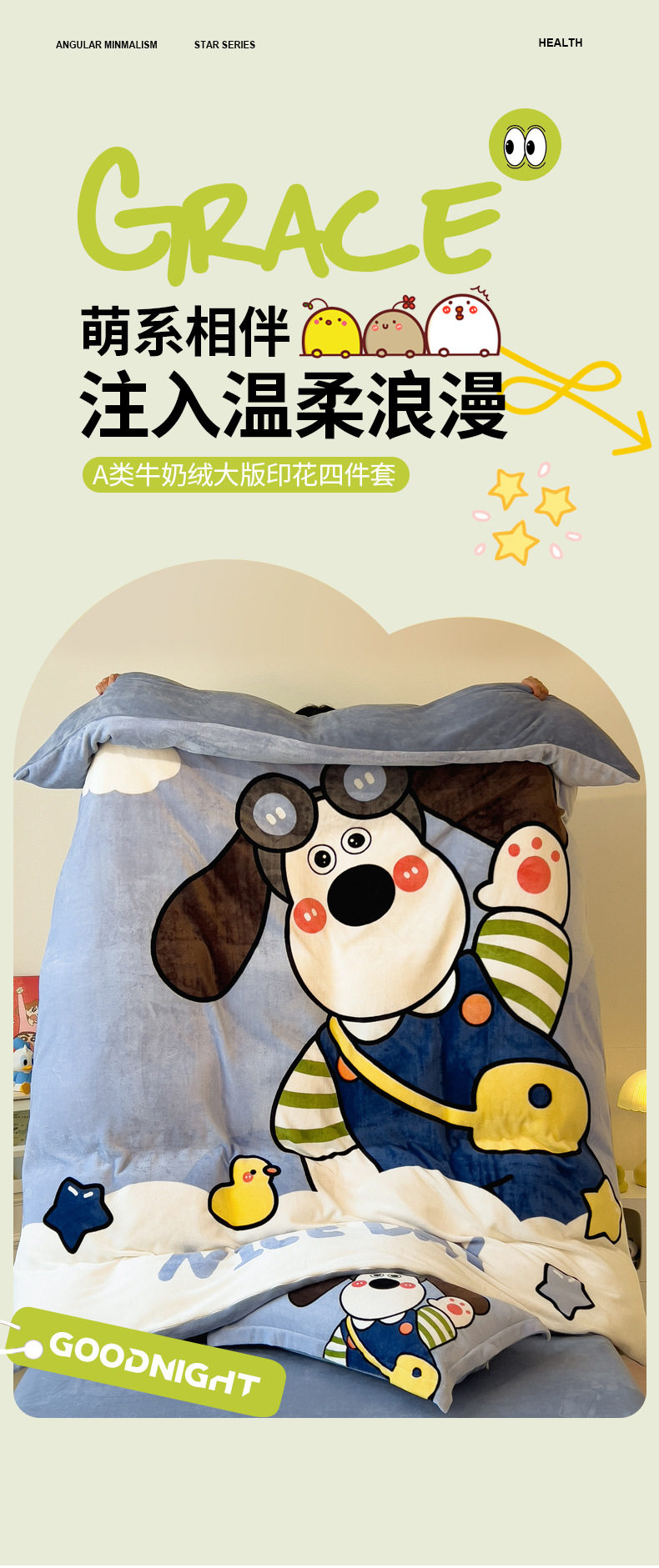Class a Milk Velvet Large Version Cartoon Four-Piece Winter Thickeneded Coral Velvet Quilt Cover Bed Sheets Student Warm Three-Piece Set