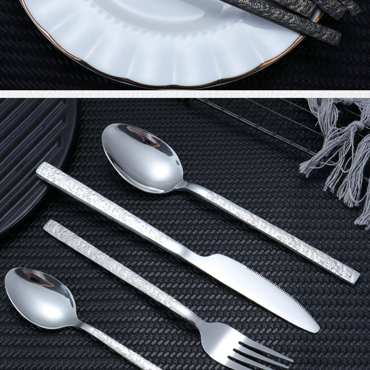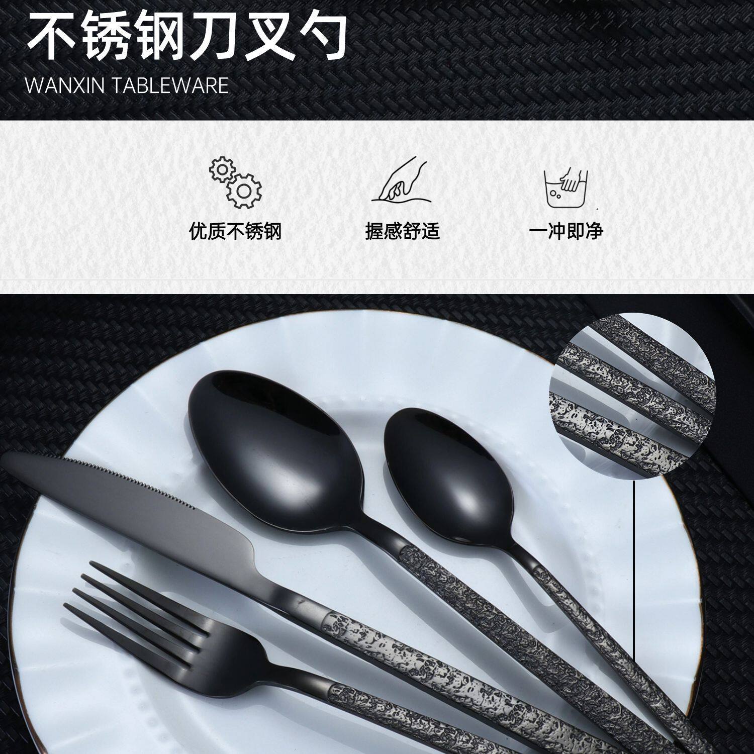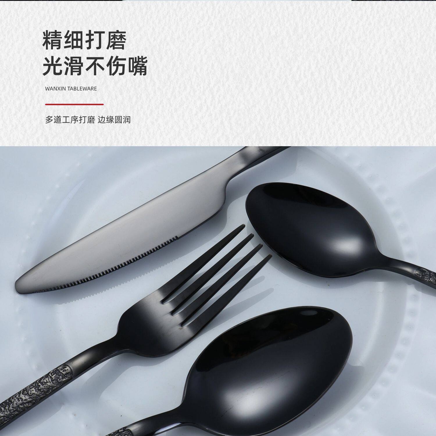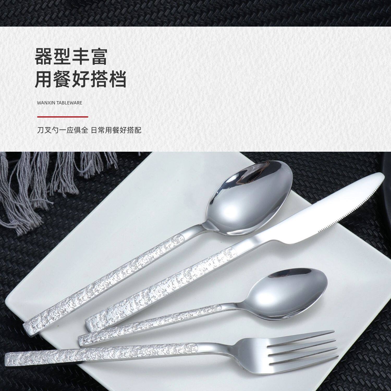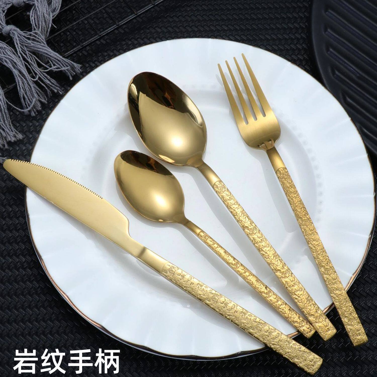 Cross-border Stainless Steel Western-style Tableware suit Vintage Thick Stone Rock Pattern Embossed Light Spoon Combination Knife and Fork Spoon