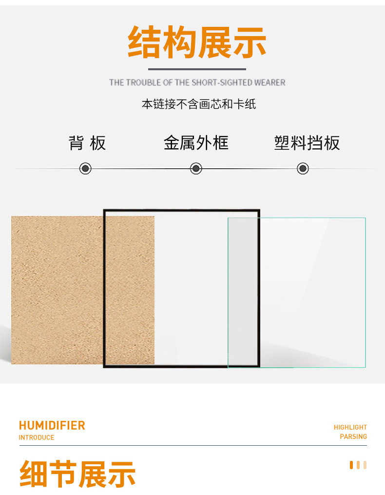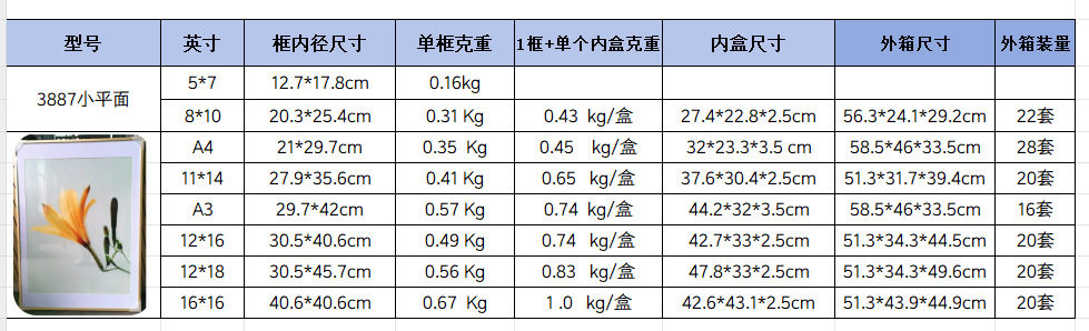 | Inner frame size | 5*7 (12.7*17.8) table setting,8*10 (20.3*25.4) table setting,A4 (21*29.7) hanging and pendulum integrated,A4 (21*29.7) + single inner box,A3(29.7*42) hanging type,A3(29.7*42)+single inner box,11*14 (27.9*35.6) hanging type,12*16 (30.5*40.6) hanging type,12*18 (30.5*45.7) hanging type,16*16 (40.6*40.6) hanging type |