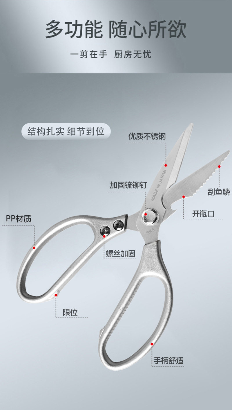 Scissors SK5 Scissors All Stainless Steel Household Kitchen Scissors Chicken Duck Fish Bone Strong Household Aluminum Alloy Handle Scissors