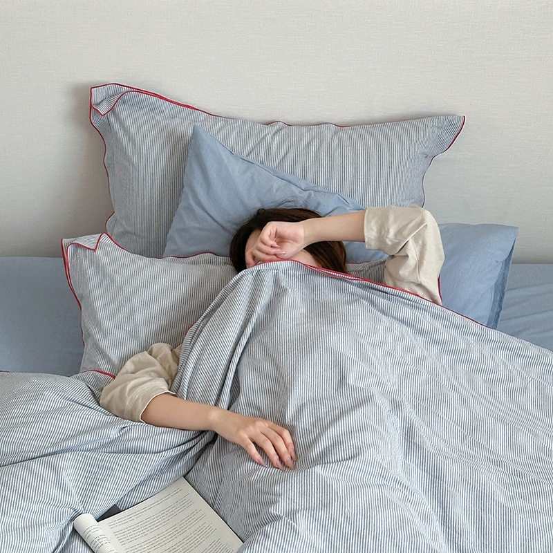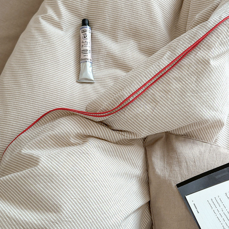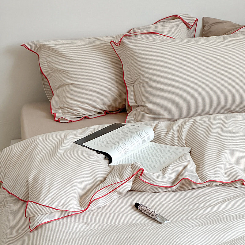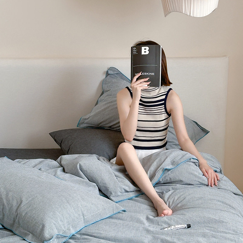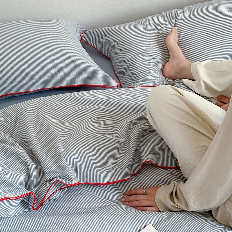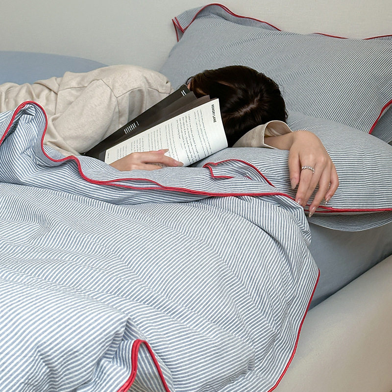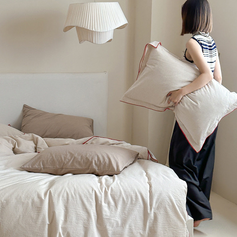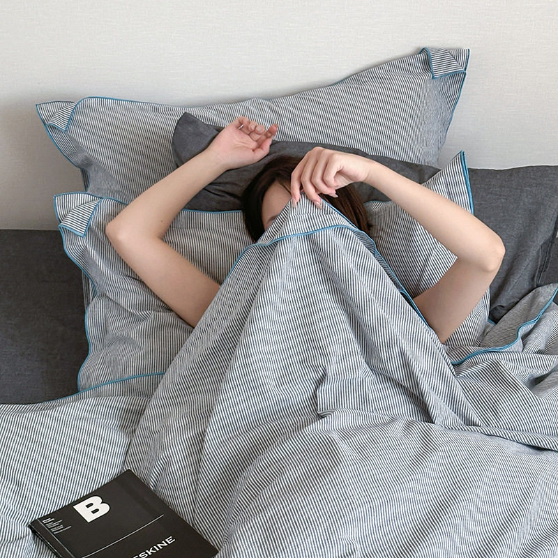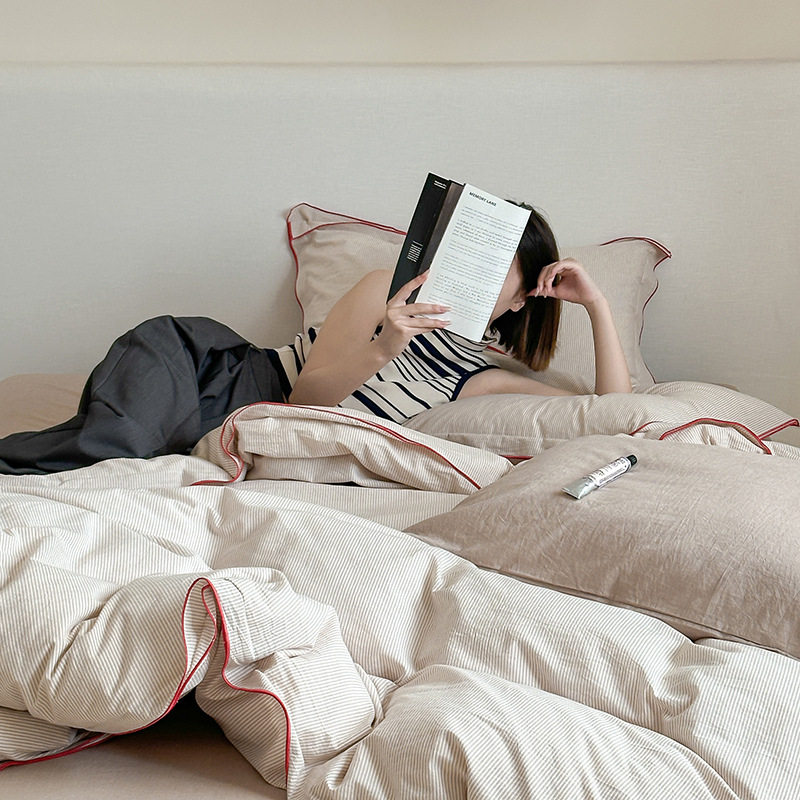 Ins Wind-tight Edge All Cotton Washed Cotton Striped Four-piece Set Pure Cotton Quilt Cover Bed Sheet Skin-friendly Naked Sleeping Bedding