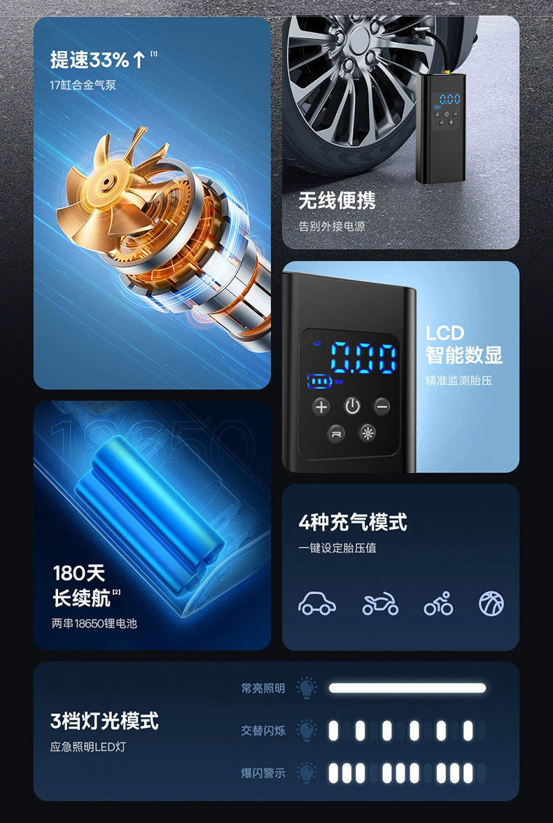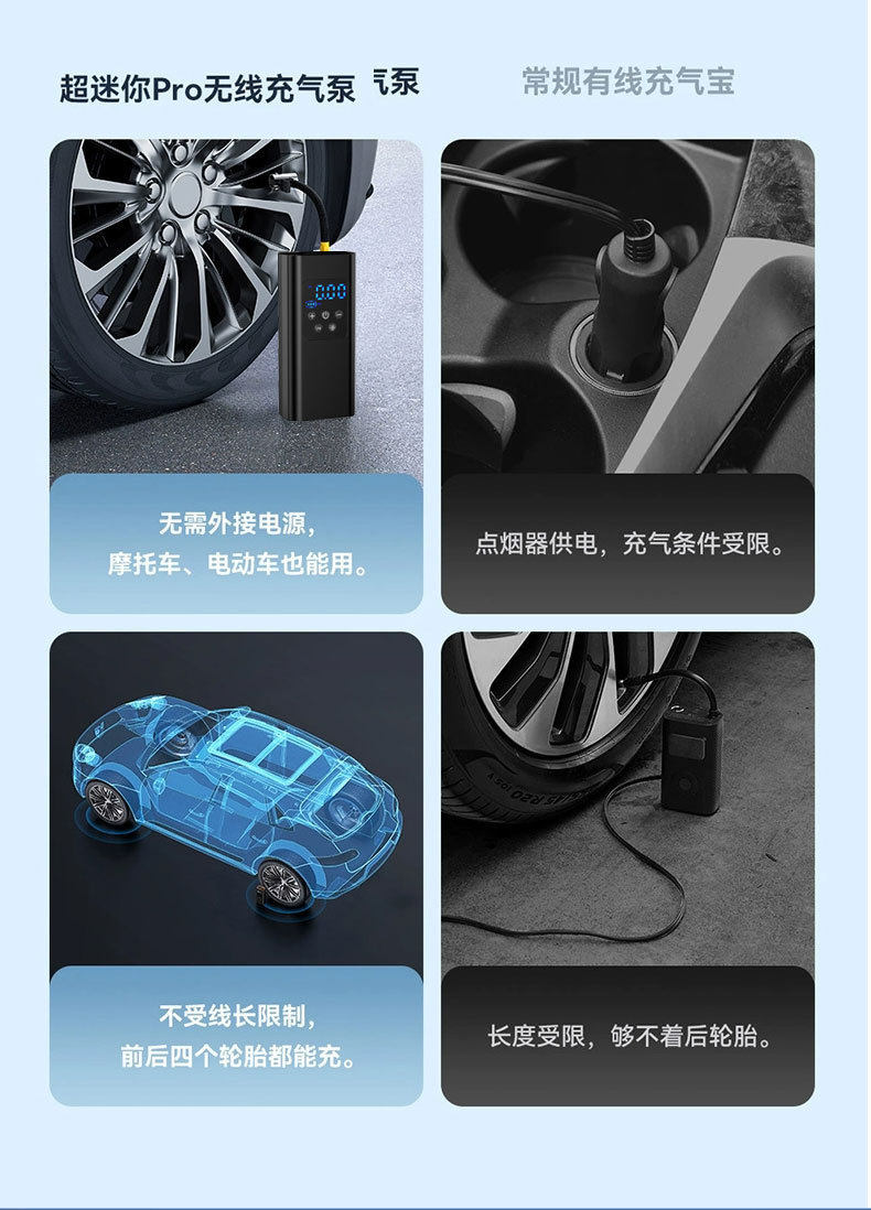 | Specifications | Vehicle air pump★Wired digital display model★DC/12V gasoline vehicle,Vehicle air pump★Wireless digital display model★2 sections 2000mAh,Vehicle air pump★Wireless digital display model★3 sections 2000mAh |