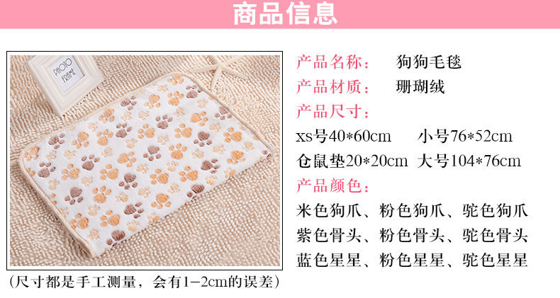 Pet blanket factory direct dog blanket super soft warm coral fleece kennel mat cat dog wholesale cat cage