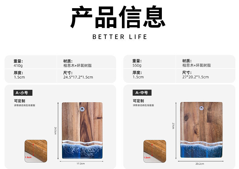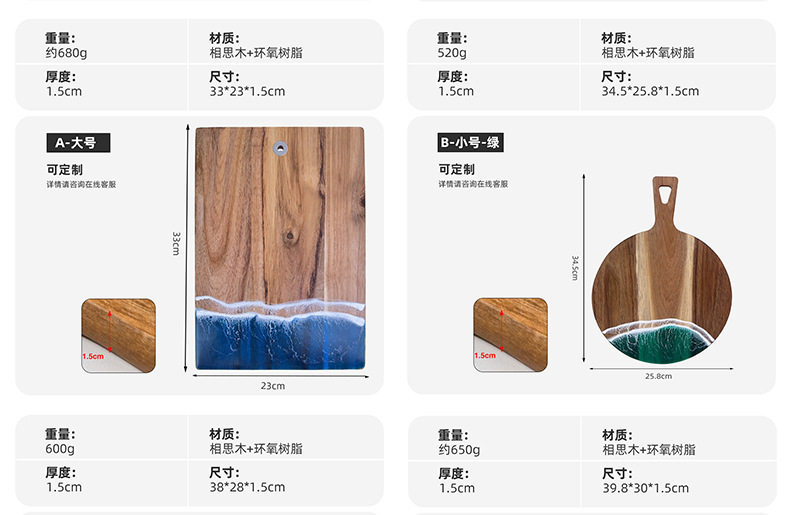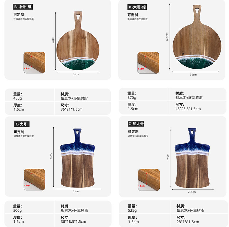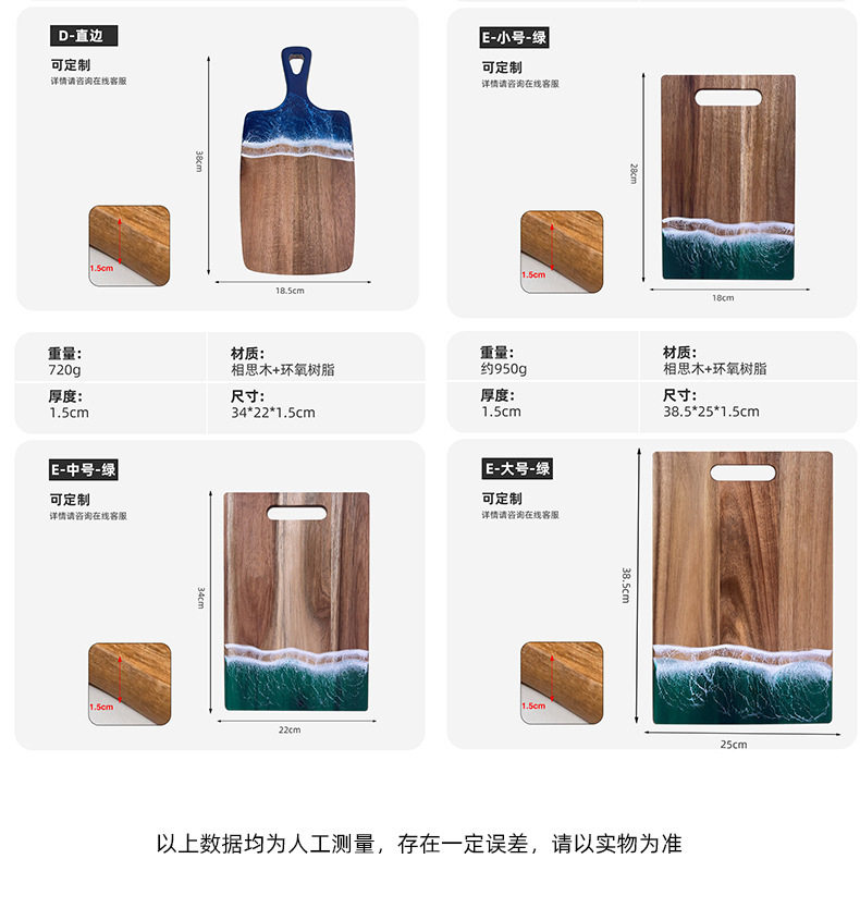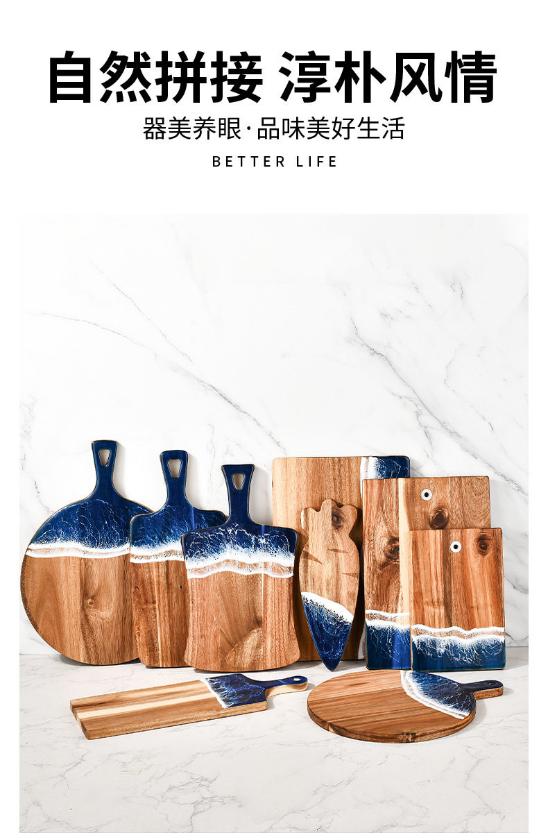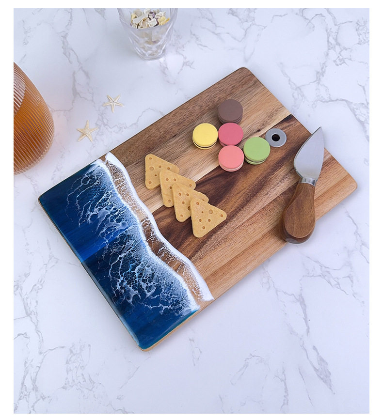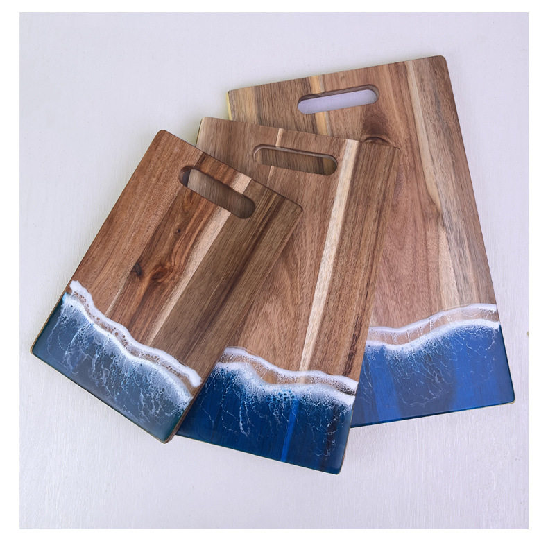 Acacia Wood Cutting Board, Wave Resin Cookware, Whole Wood Steak, Fruit, Bread Chopping Board, Kitchen Supplies