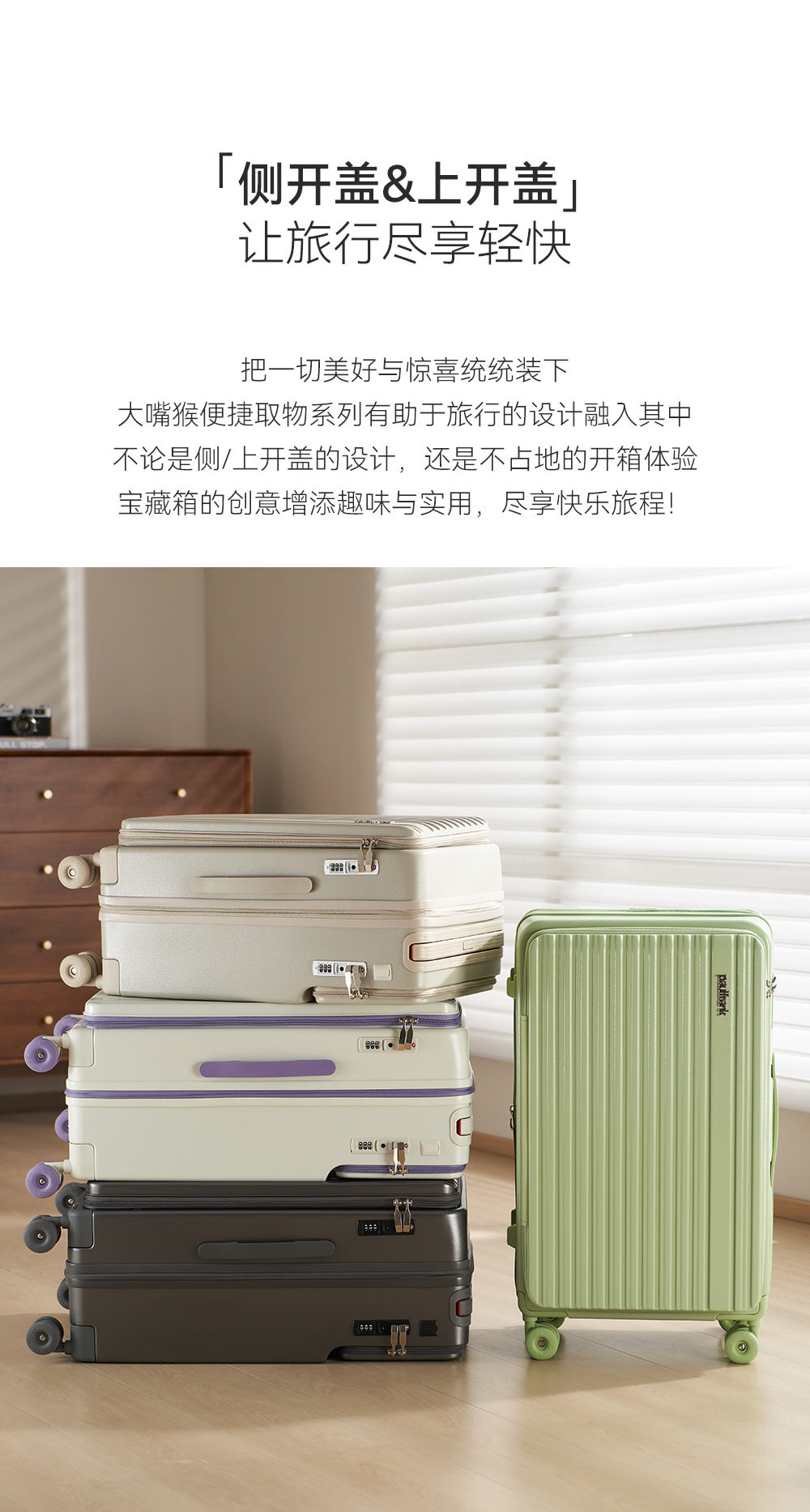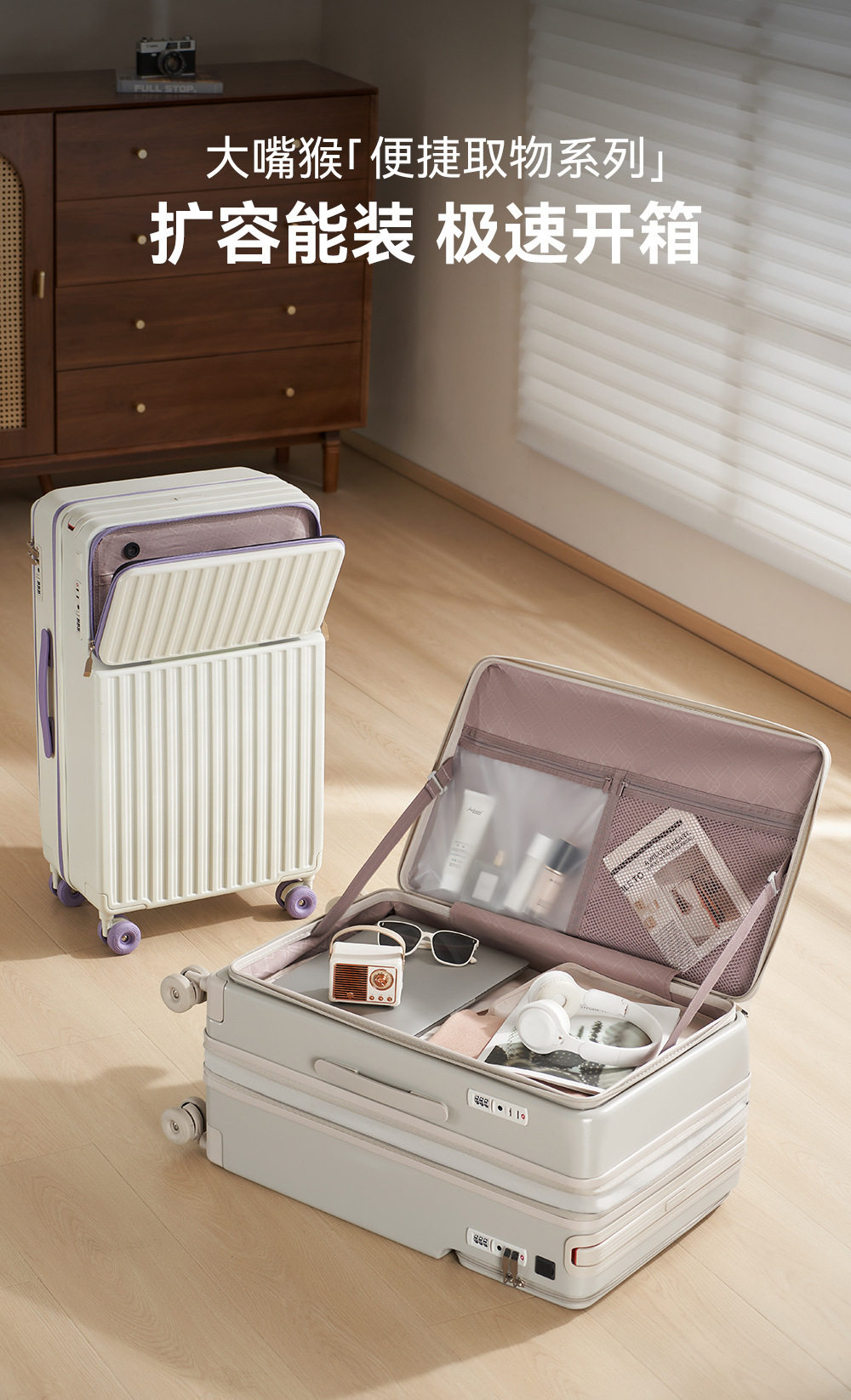 Big Mouth Monkey Side-Opening Suitcase for Women, Expandable Front Opening, Pure Pc Travel Case, Password Lock, Large Capacity Trolley Case