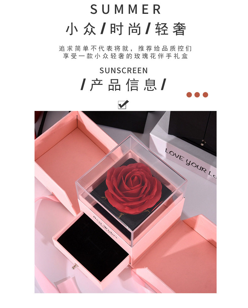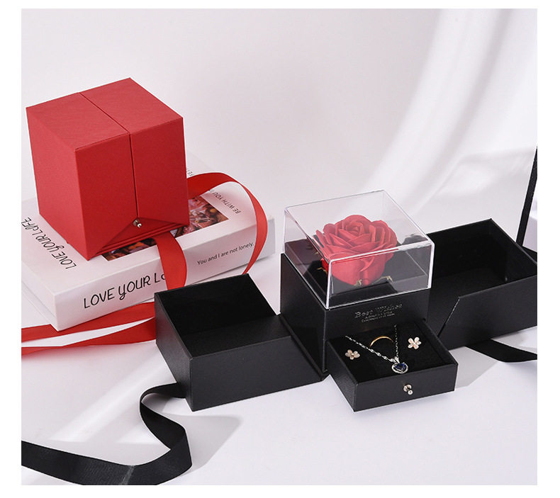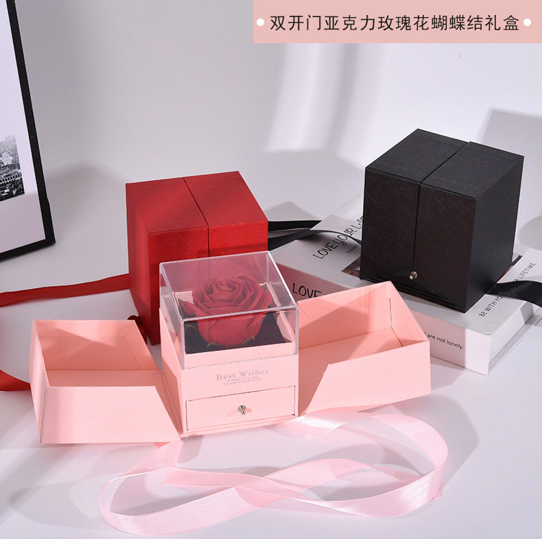 520 Valentine's Day Rose Necklace Jewelry Gift Box Creative Double-Door Acrylic Eternal Flower Lipstick Packaging Box