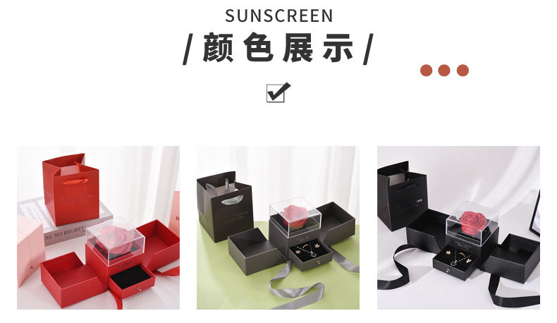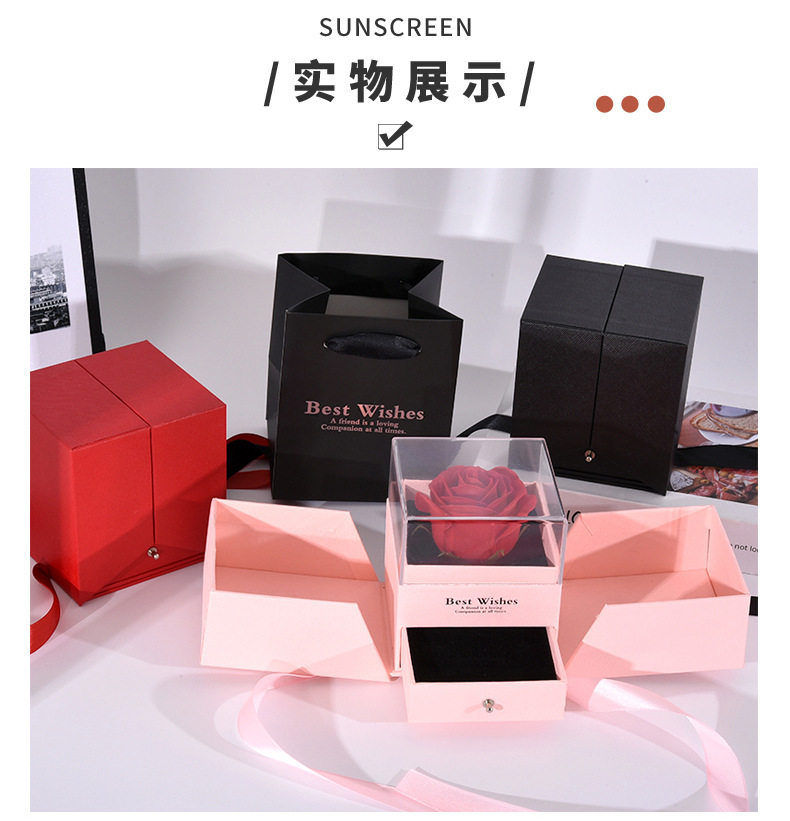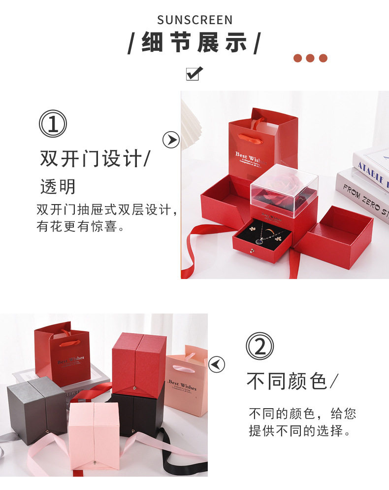 | Specification | Double-door gift box + flowers + gift bag + necklace lining (send greeting card),Double-door gift box + flowers + gift bag + lipstick lining (send greeting card) |