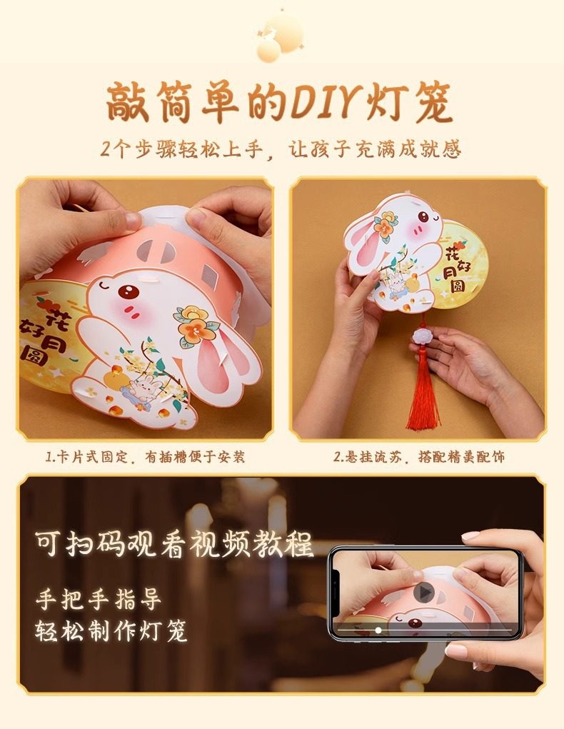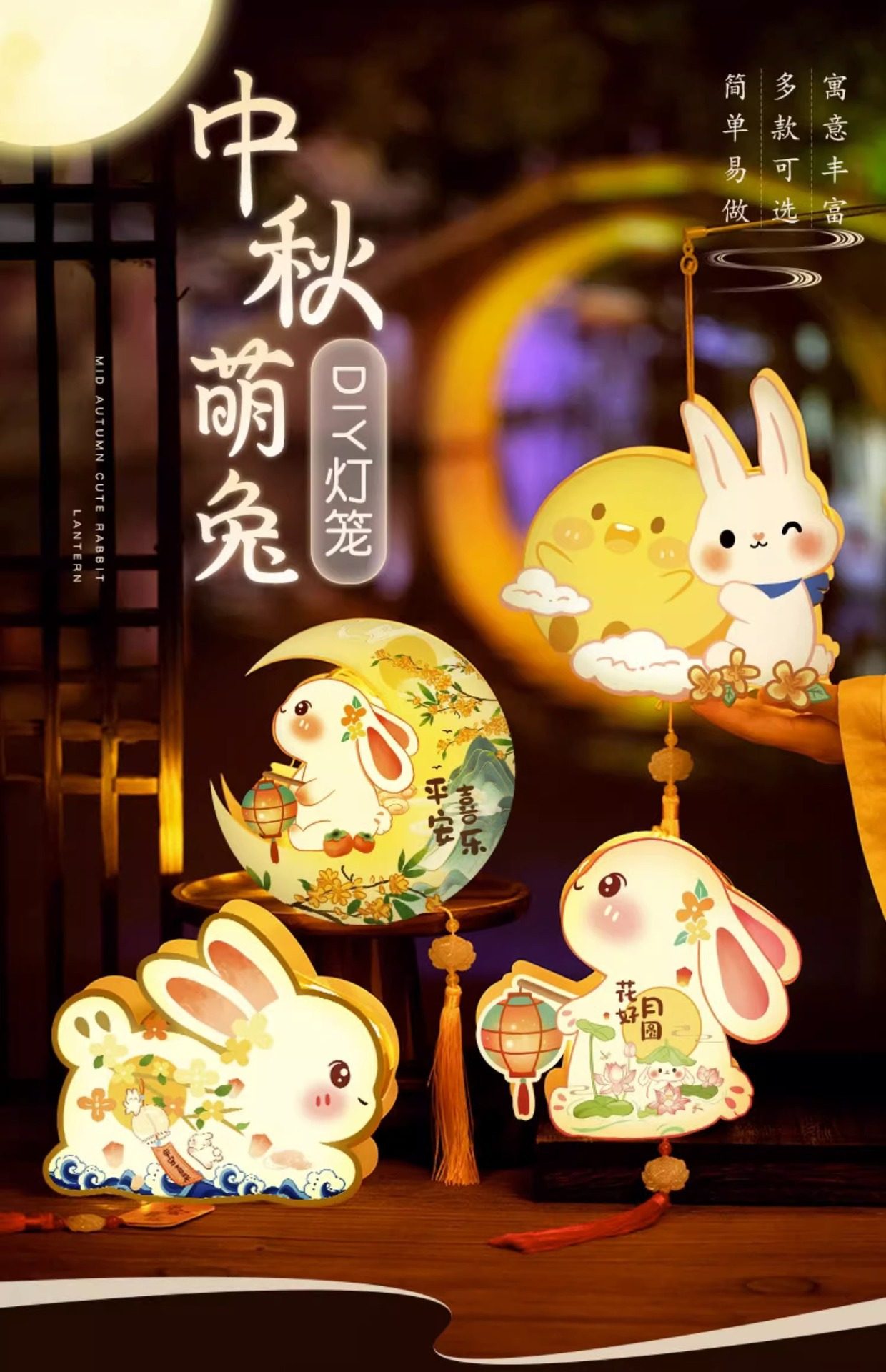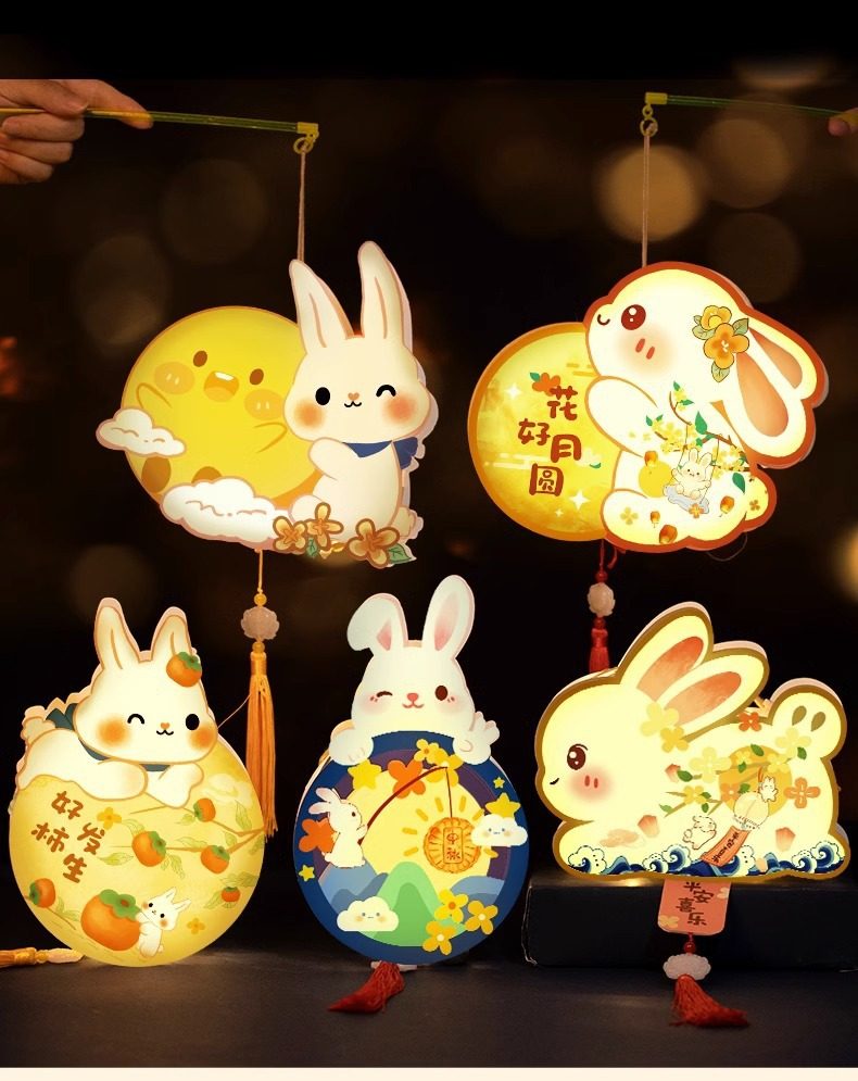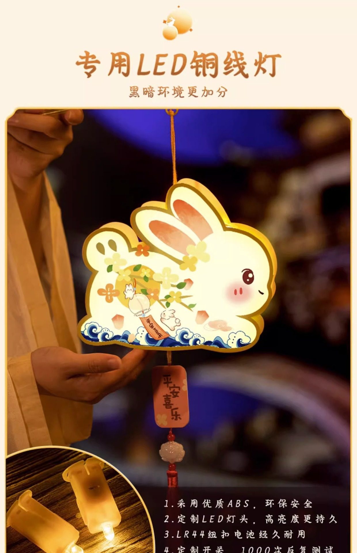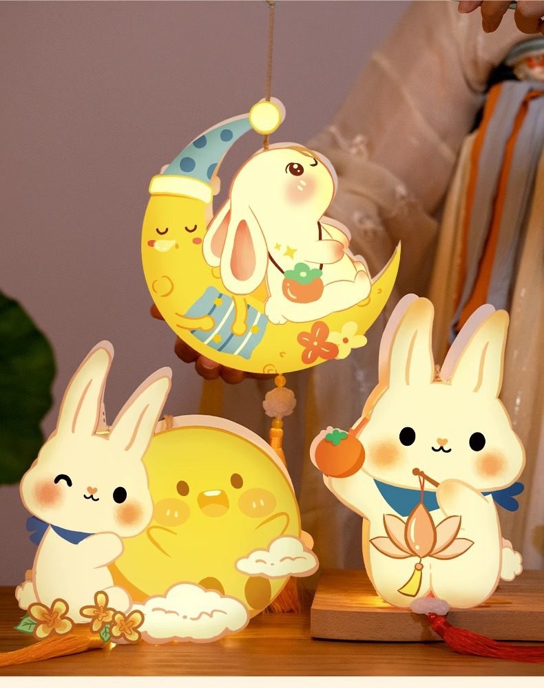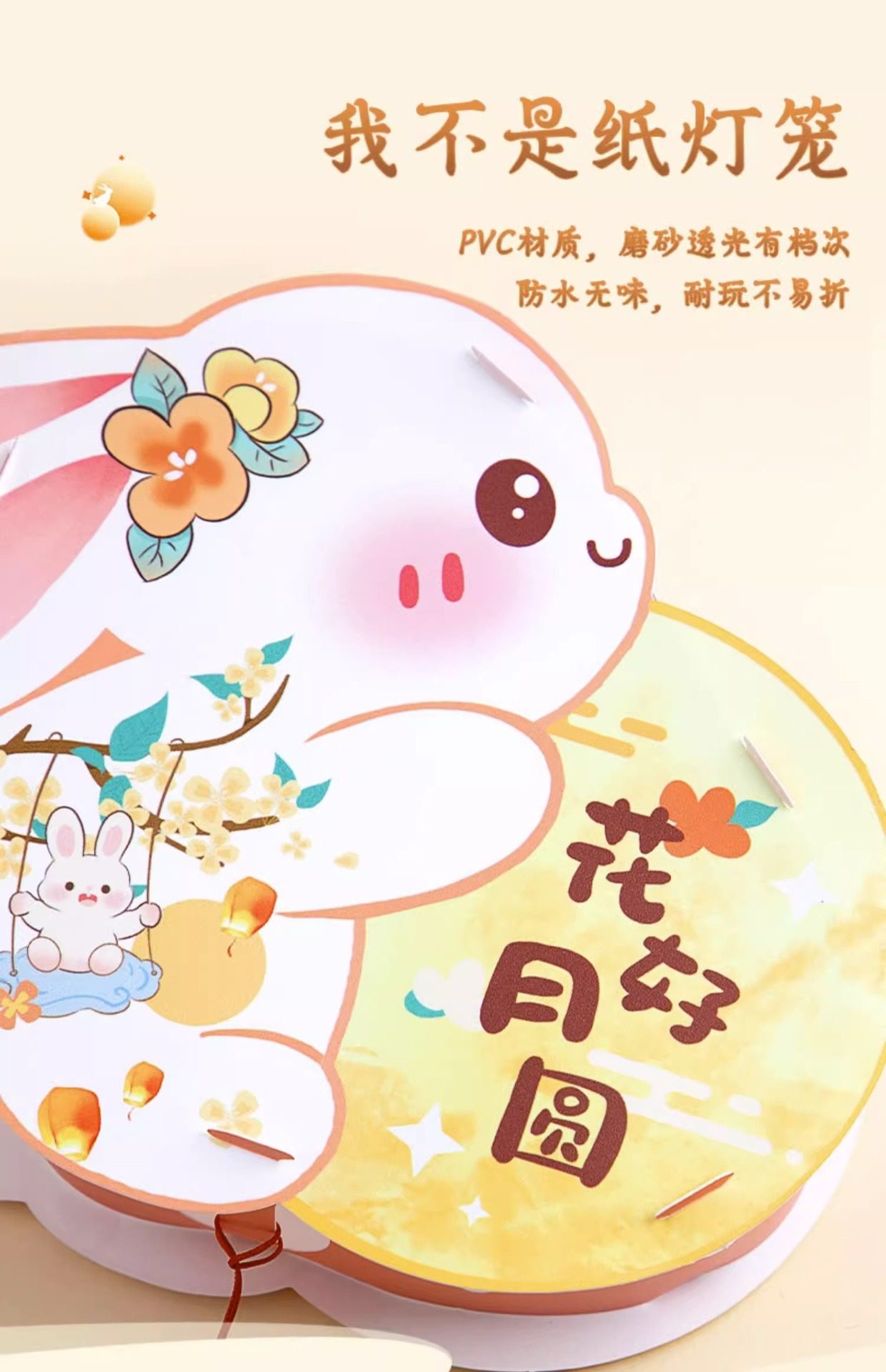 Mid-Autumn Festival Gift Pvc Jade Rabbit Lantern DIY Handmade Traditional Creative Children's Handheld Lantern Glowing Toy