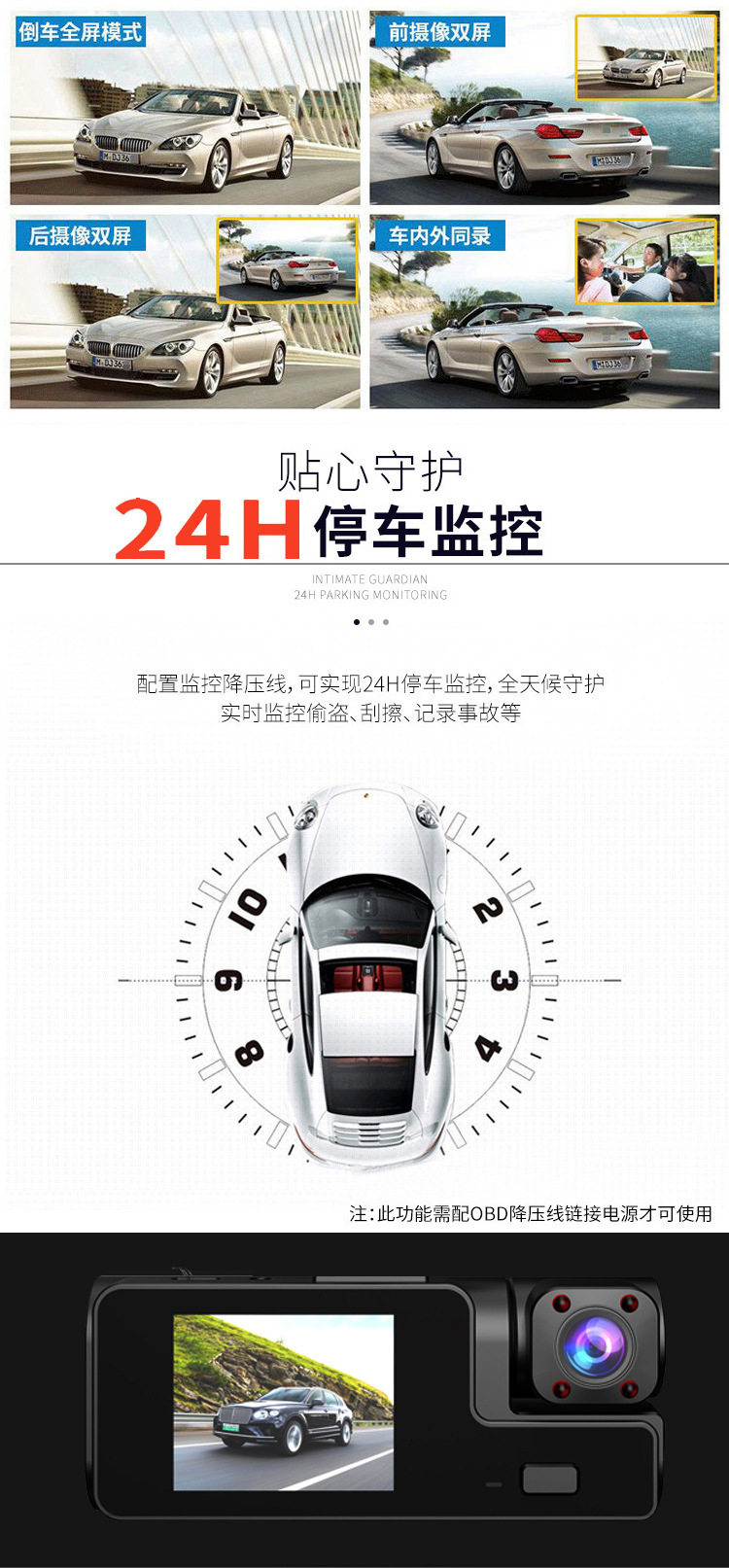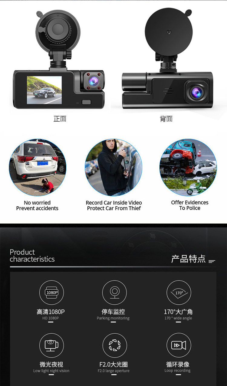 | Color classification | C309 dual recording 1080p (front lens + inner lens),C309 three recordings 1080p (front lens + inner lens + rear lens),C309 dual recording + wifi (front lens + internal lens),C309 triple recording + wifi (front lens + internal lens + rear lens),A22 dual recording (front lens + internal lens),A22 triple recording (front lens + internal lens + rear lens),A22 dual recording + wifi (front lens + internal lens),A22 triple recording + wifi (front lens + internal lens + rear lens),Driving recorder step-down cable,32g memory card,64g memory card |