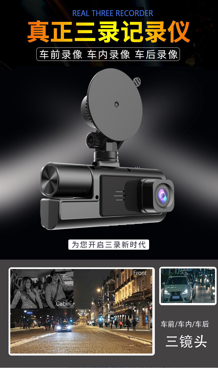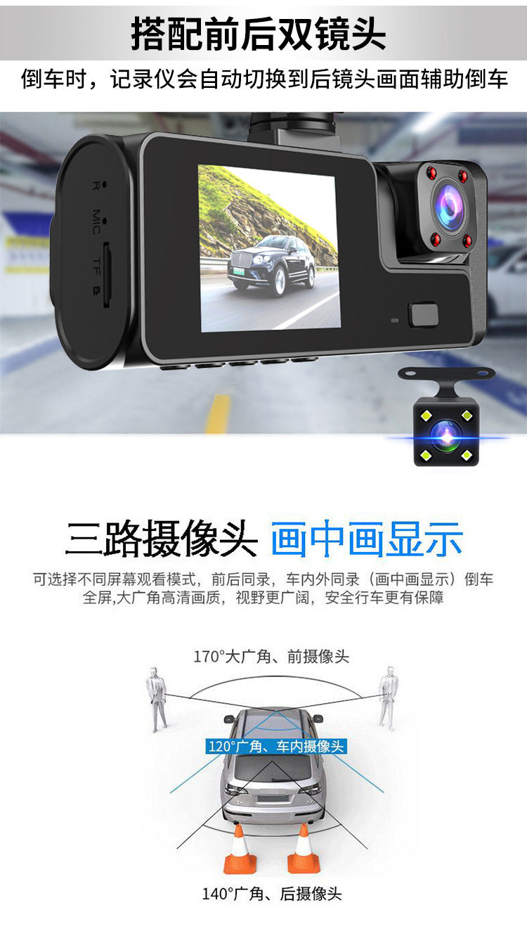 Cross-border explosions 1080P three-recording driving recorder wifi mobile phone interconnection vehicle recorder in stock DashCam