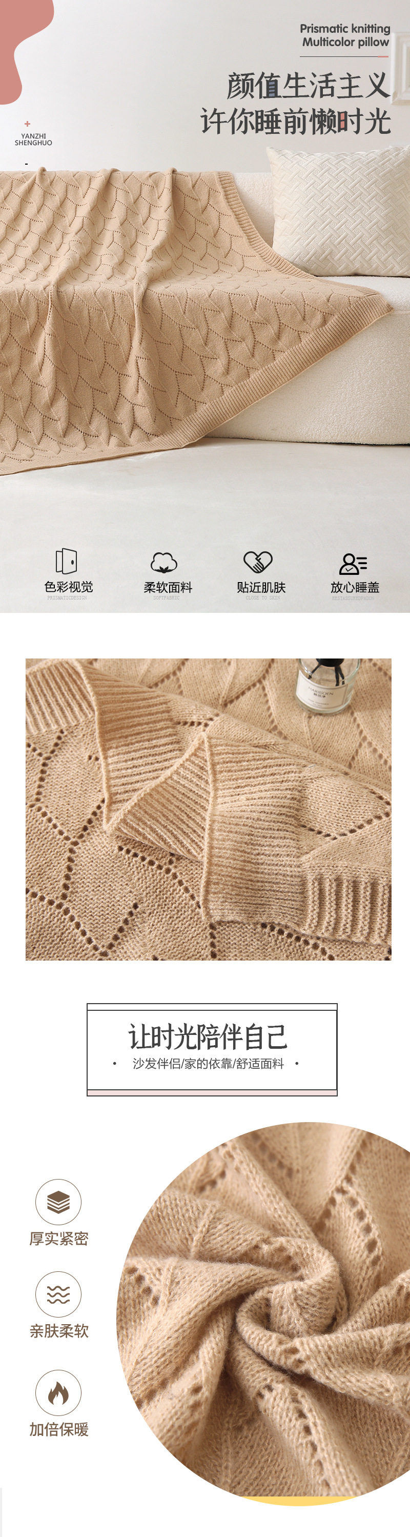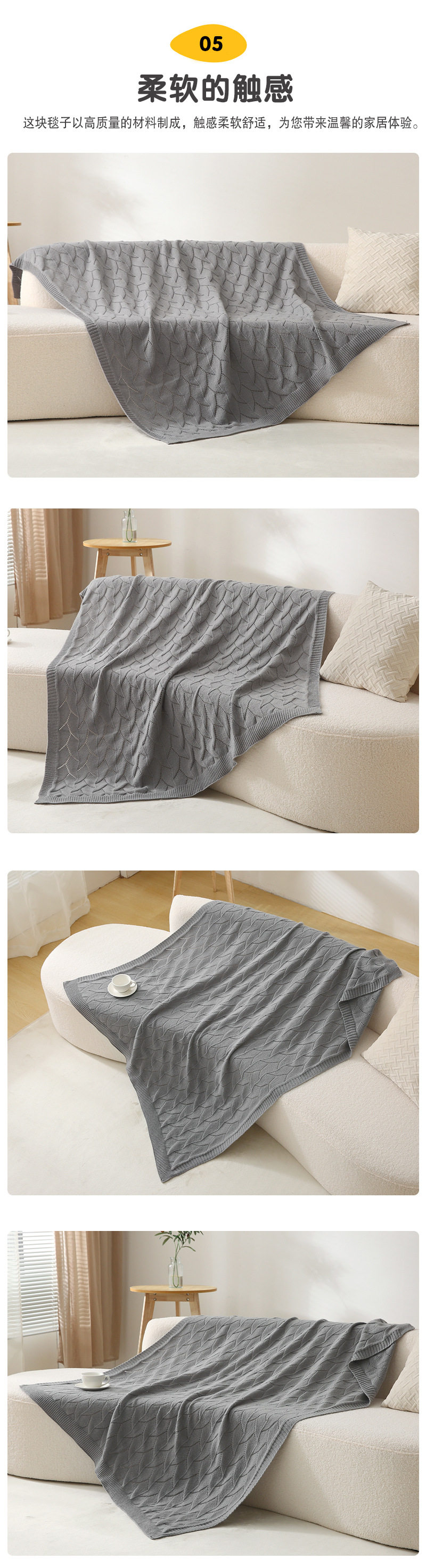 Modern Simple Solid Color Knitted Blanket Hotel Homestay Bay Window Bed End Decorative Blanket Nap Sofa Air Conditioning Blanket