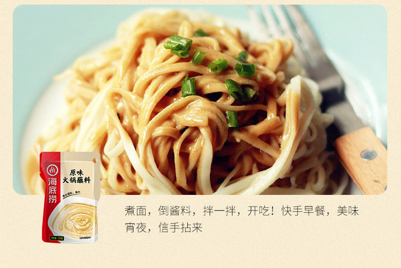 | Packaging specifications | Original flavor 120g,Spicy 120g,Spicy 120g,Peanut sesame paste 100g,Beef sauce 80g,Spicy dry dish 30g,Shacha sauce 80g,Yaozhu mushroom sauce 80g |