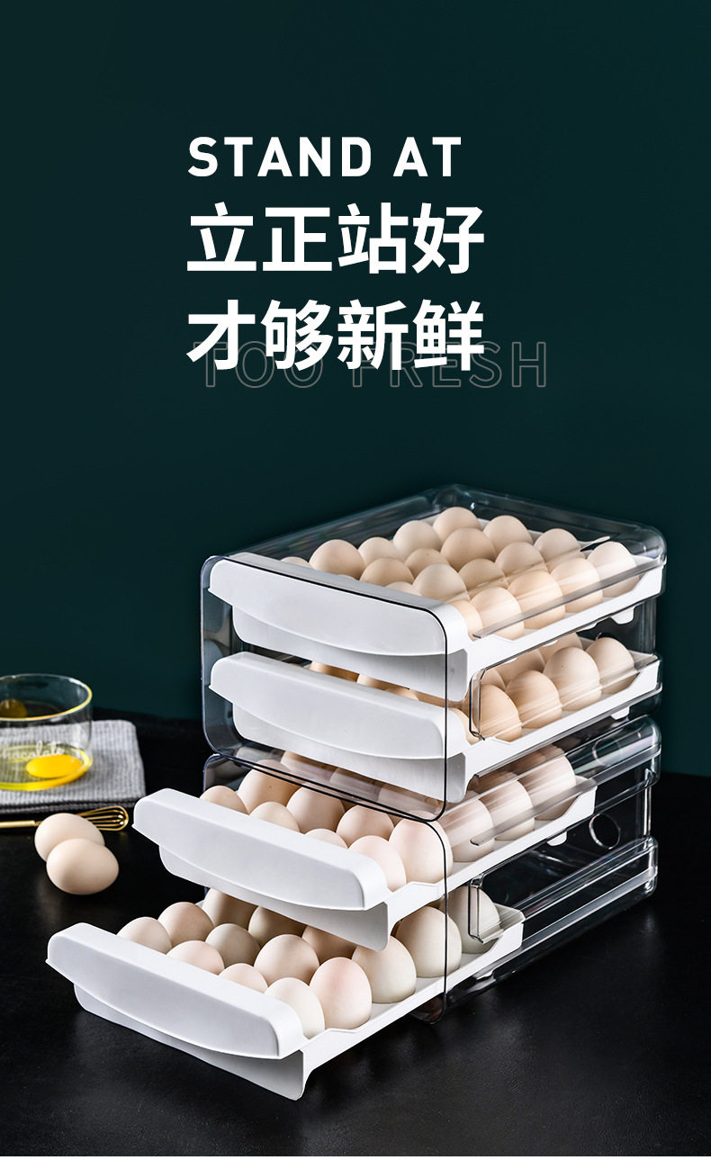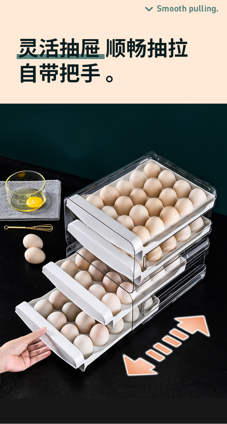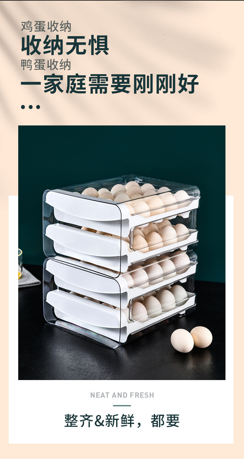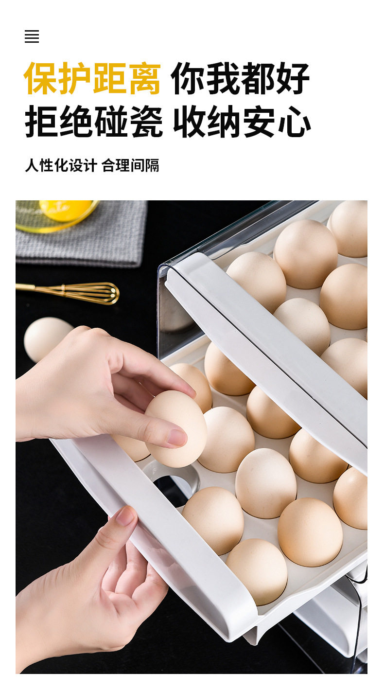 Refrigerator Egg Storage Box, Drawer-Style Fresh-Keeping Box, Kitchen Egg Box, Large Capacity Egg Tray, Sealed for Home Use