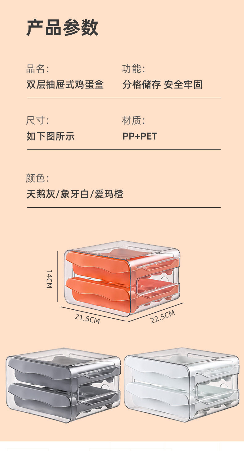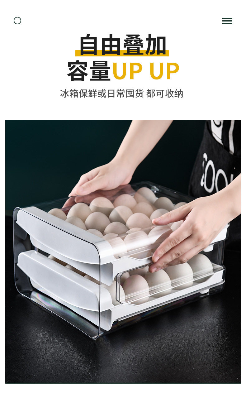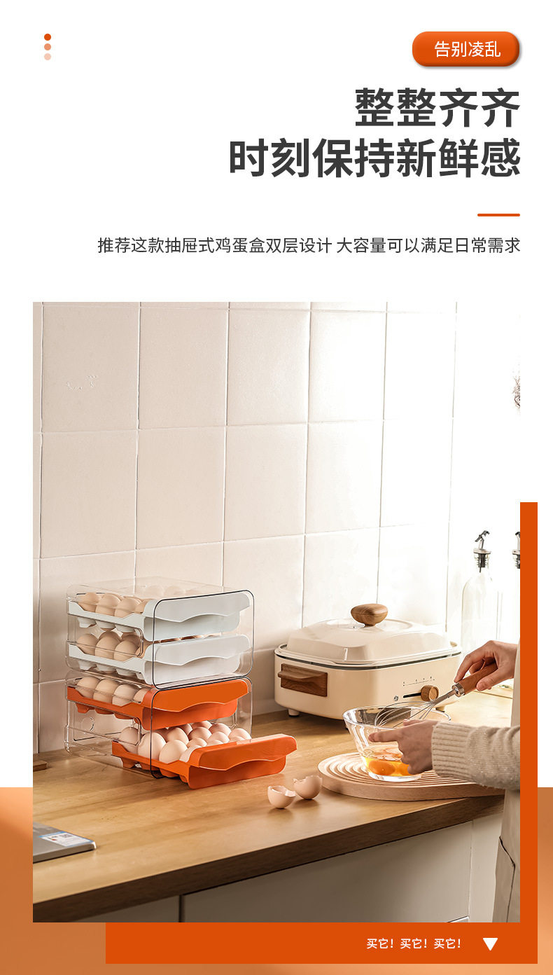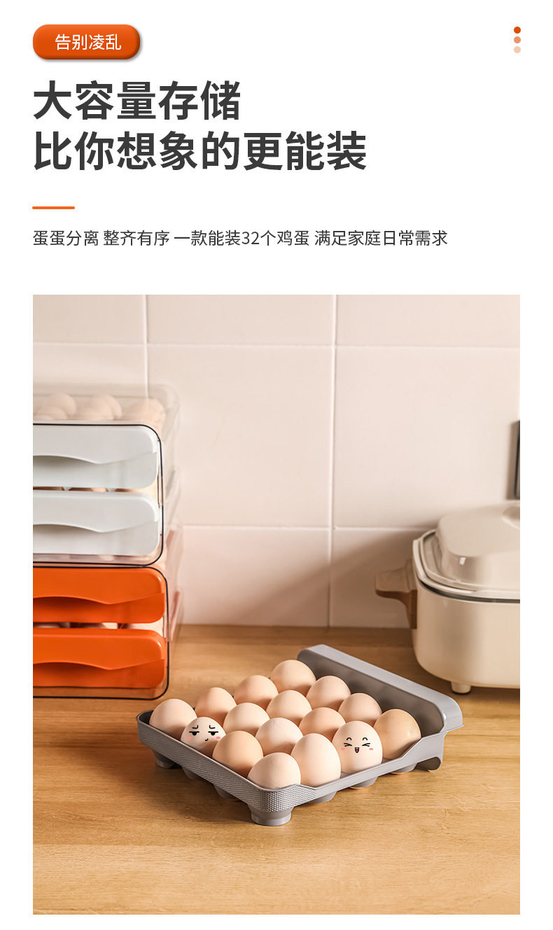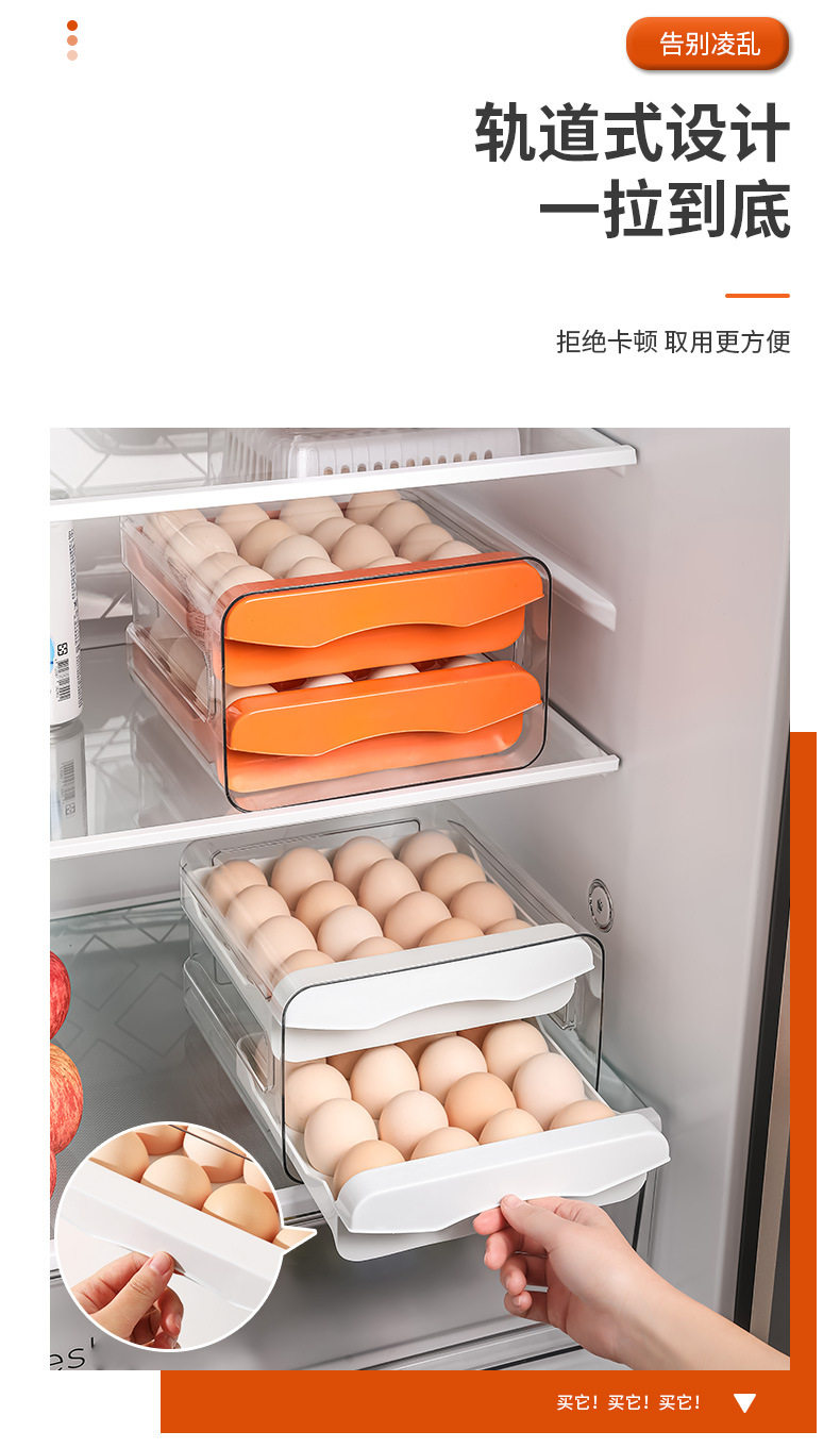Refrigerator Egg Storage Box, Drawer-Style Fresh-Keeping Box, Kitchen Egg Box, Large Capacity Egg Tray, Sealed for Home Use