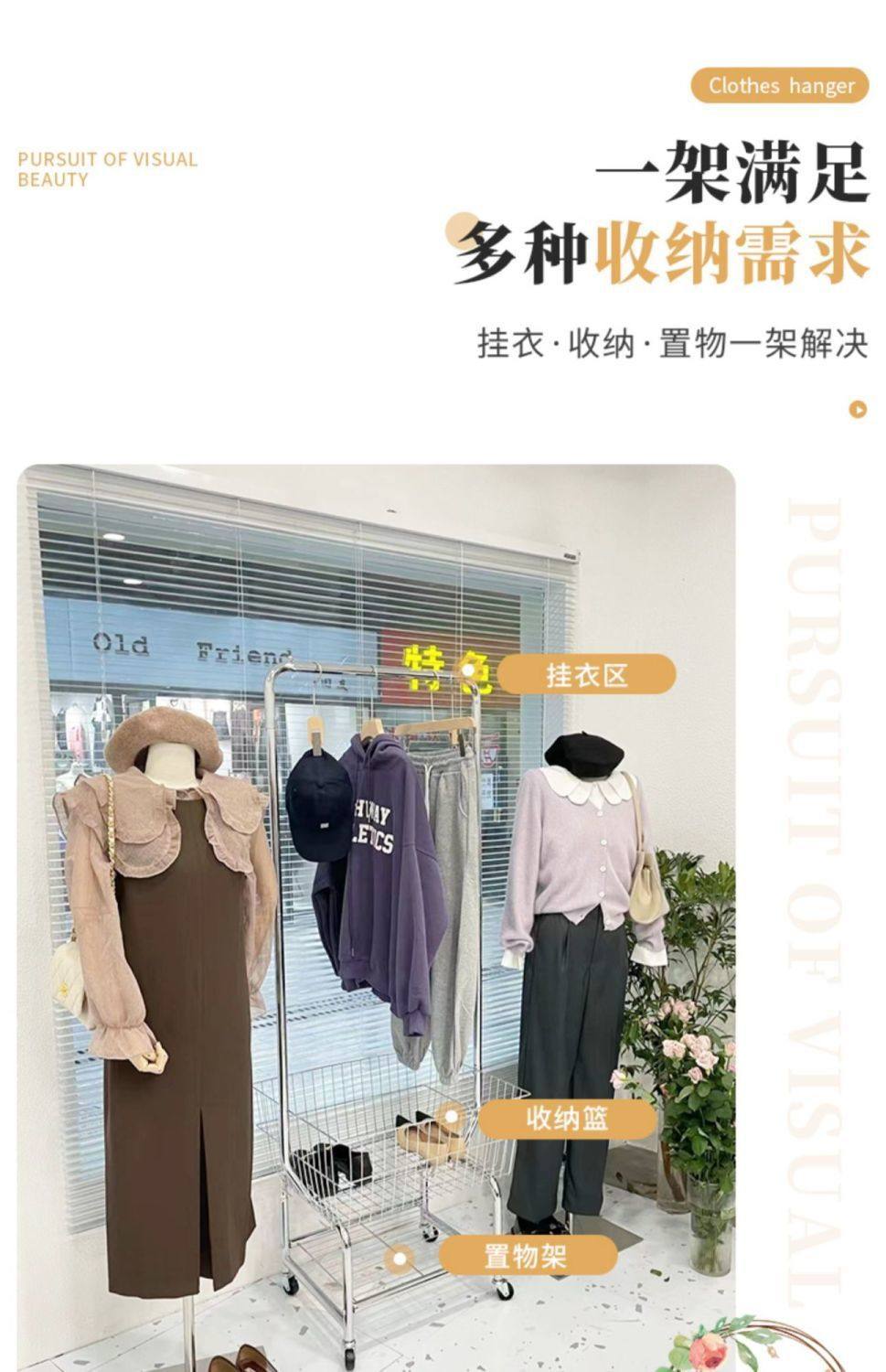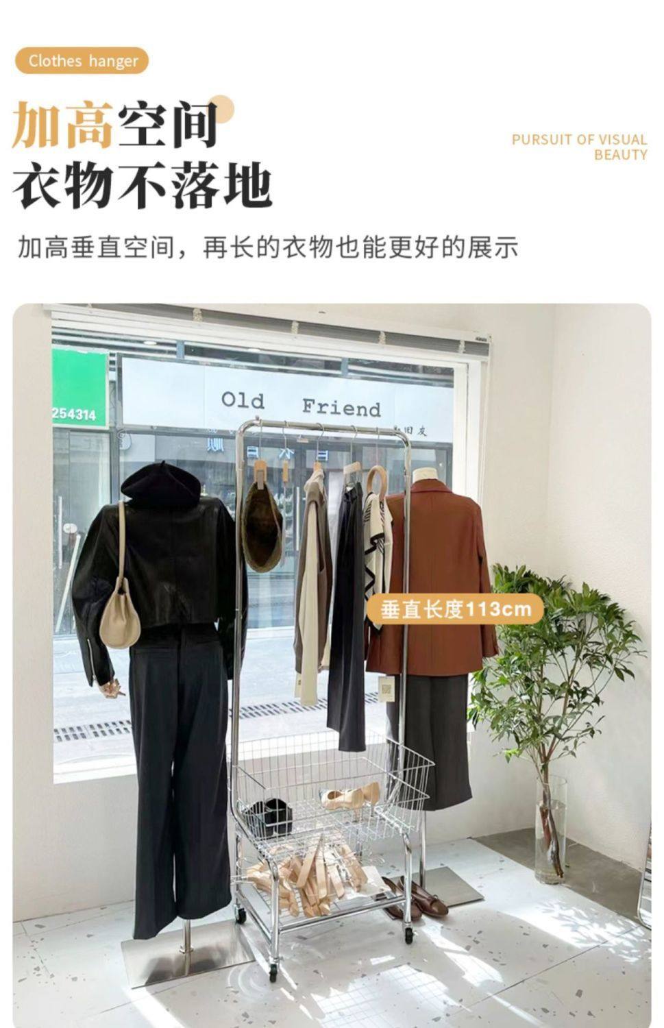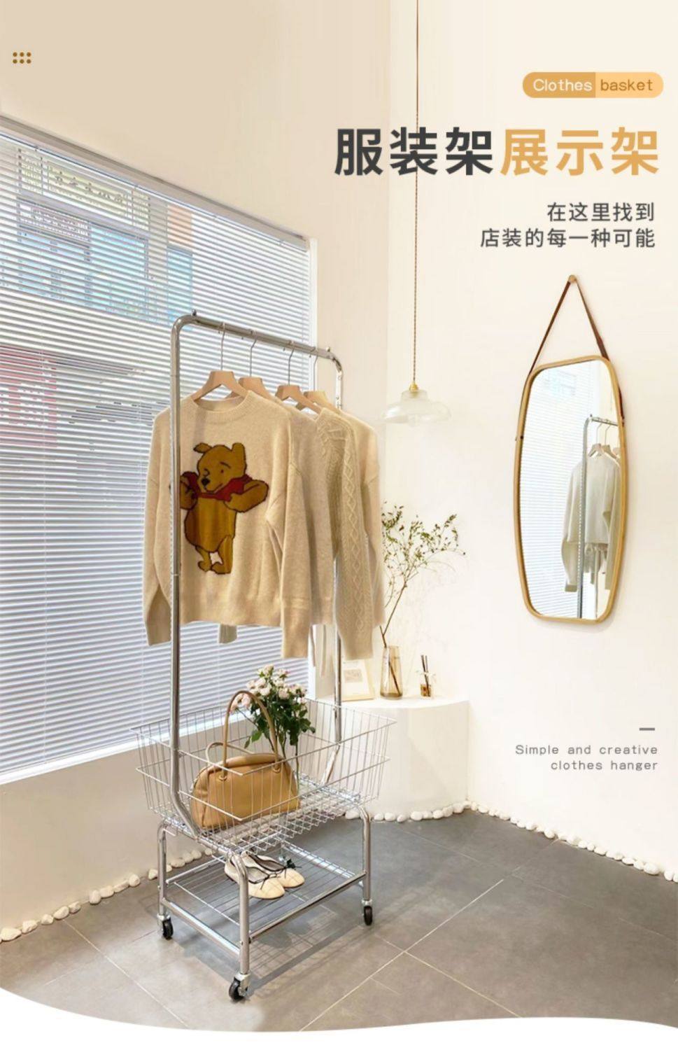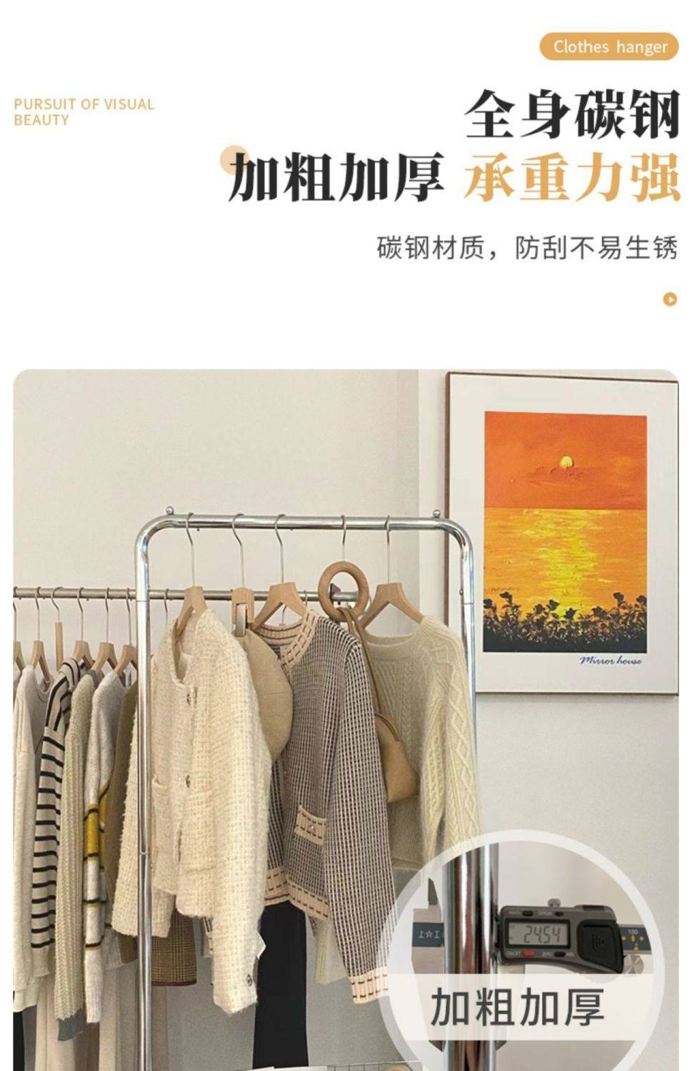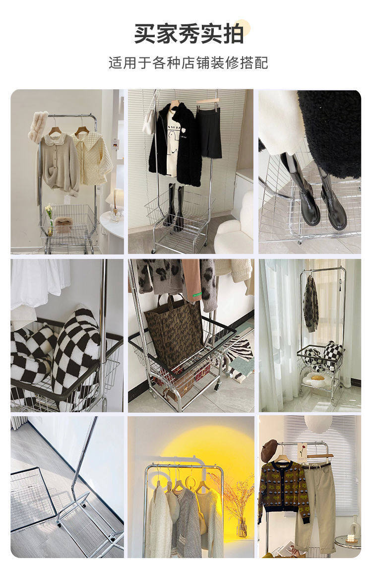 Clothes Rack Bedroom Simple Storage Rack Mobile Floor-Standing Clothes Rack Clothes Drying Rack Home Coat Rack Clothes Indoor Balcony