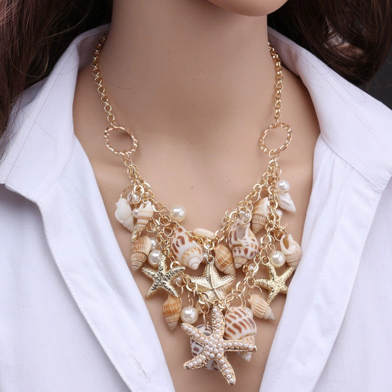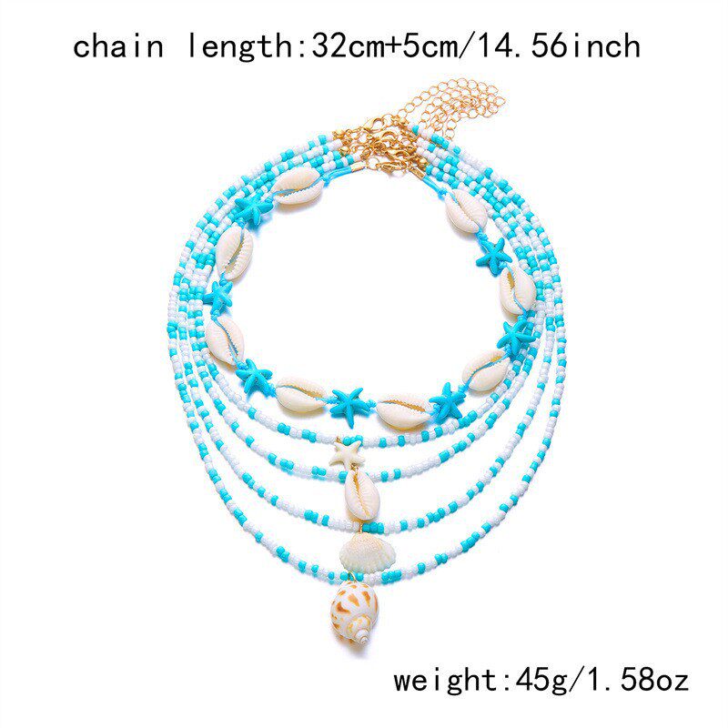 Amazon New Bohemian Style Multi-layer Shell Necklace Women Fashion Rice Bead Necklace Clavicle Chain suit Wholesale