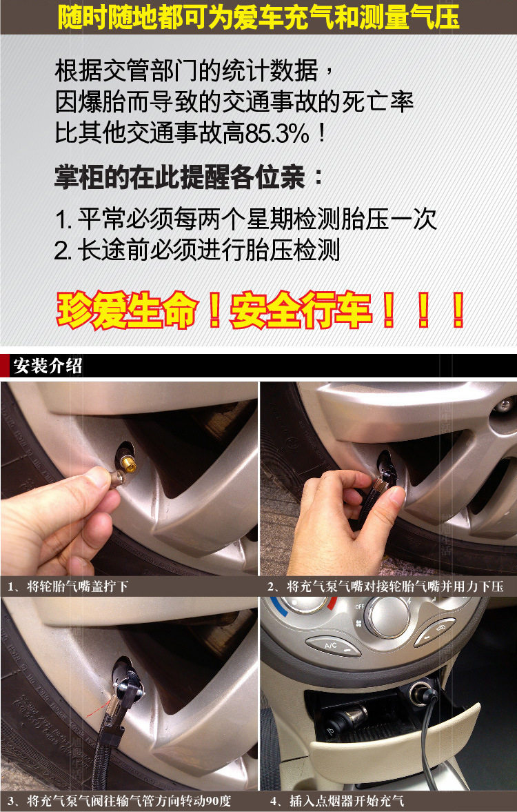 | Additional features | Tire pressure gauge |
