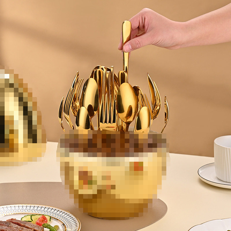 Cross-border Amazon Heart Egg Tableware Gift Box Set Silver Egg Golden Egg Colorful Egg Stainless Steel Knife, Fork and Spoon 24-piece Set
