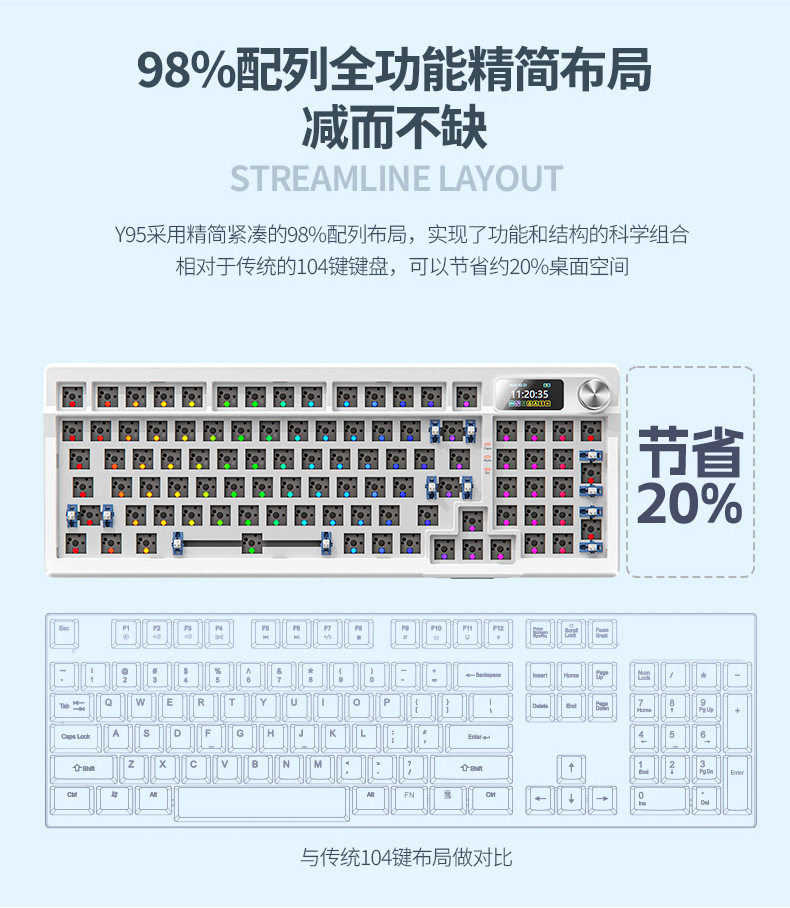 Silver Sculpture Y95 Customized Wireless Bluetooth Three-Mode Mechanical Keyboard 98 with RGB Wired Game Gasket Kit