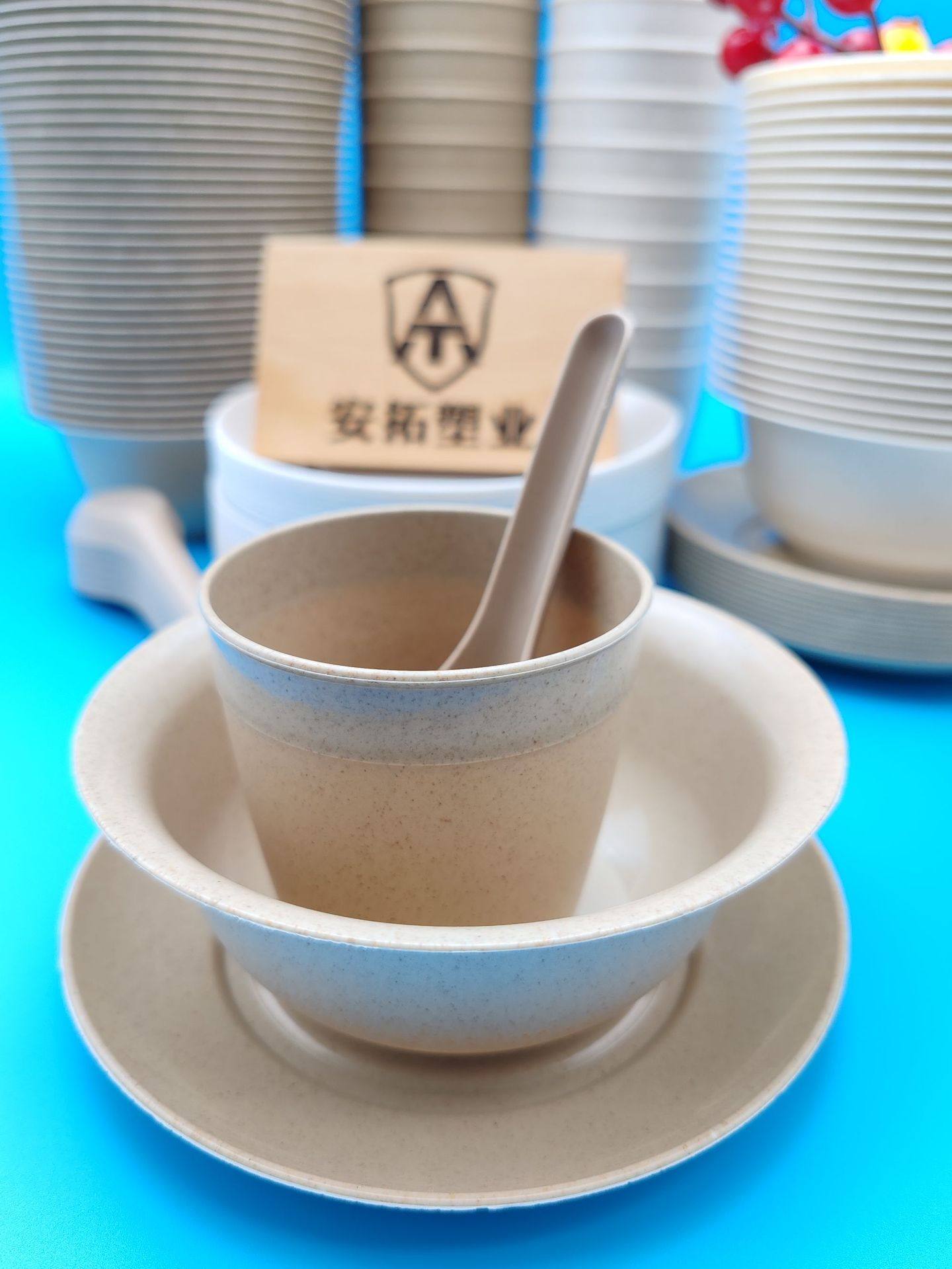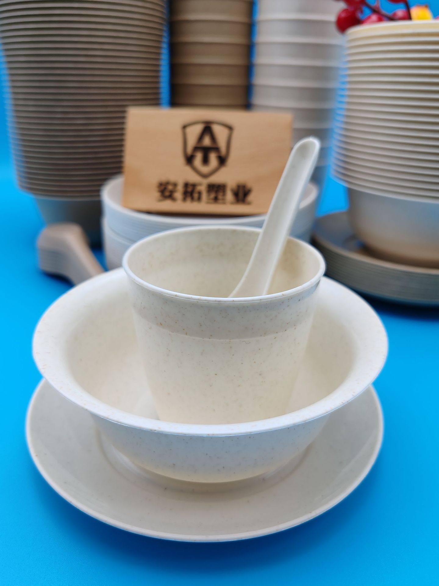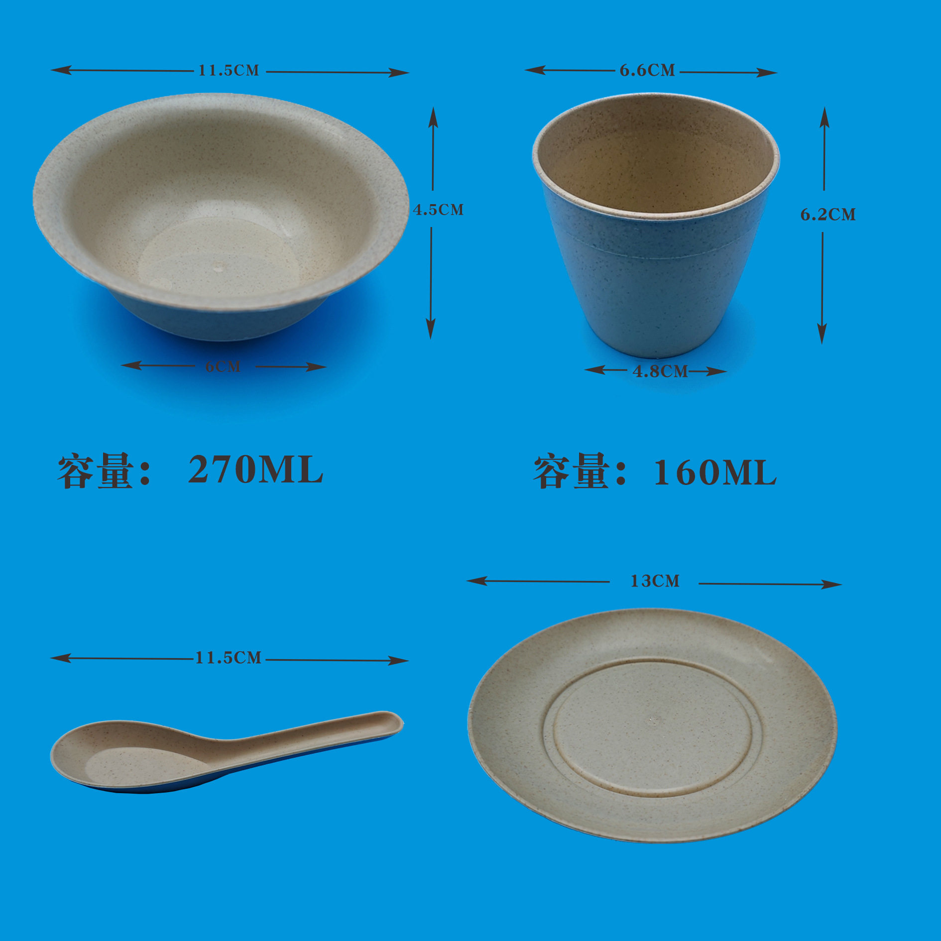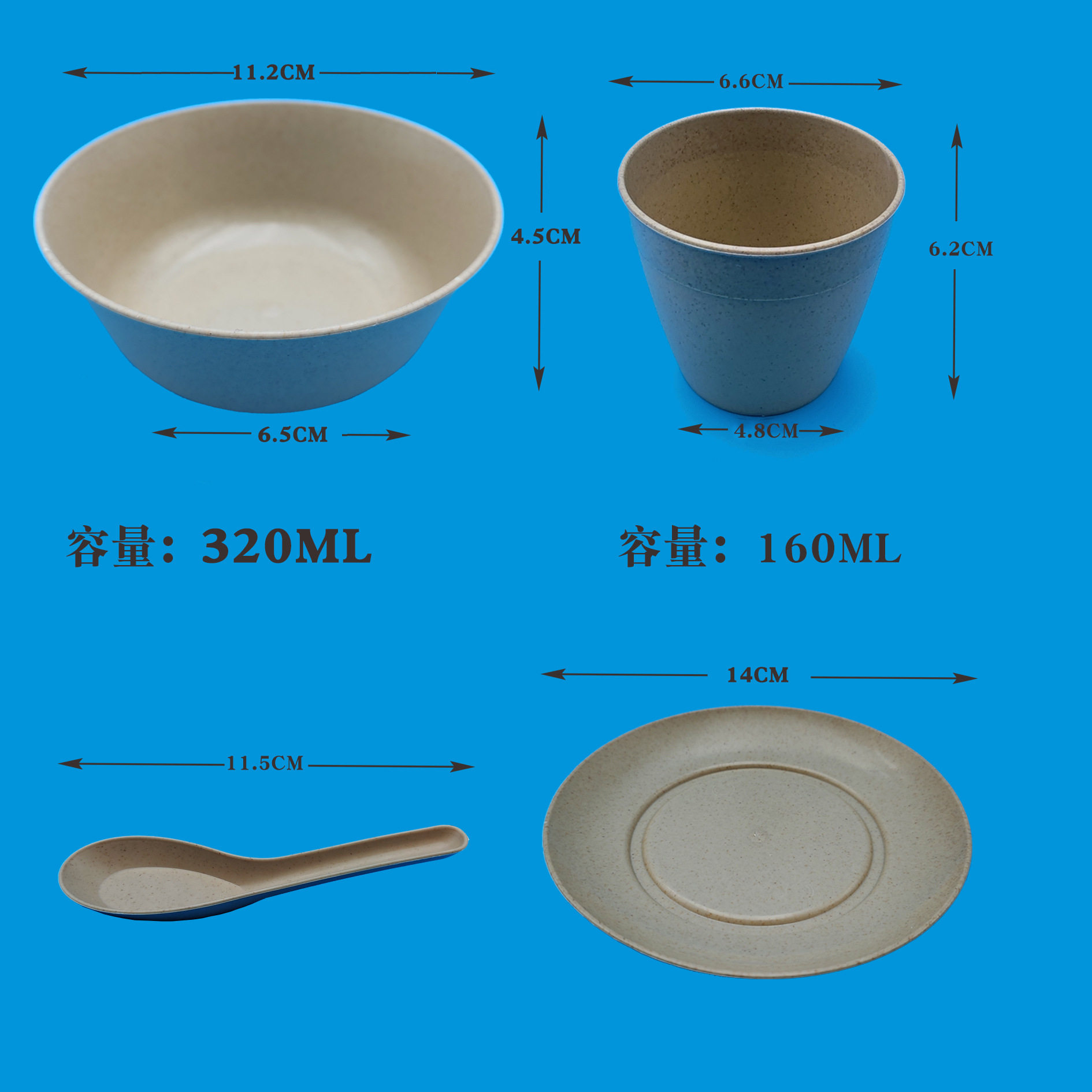 Disposable Rice Husk Four-Piece Set Bulk Biodegradable Tableware Environmentally Friendly Hot Pot Shop Home Banquet Hotel Rice Husk Tableware