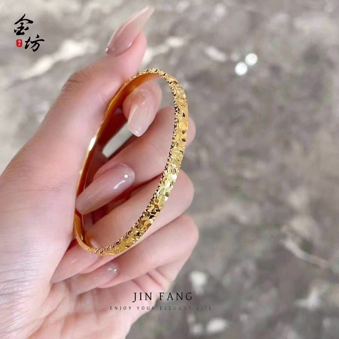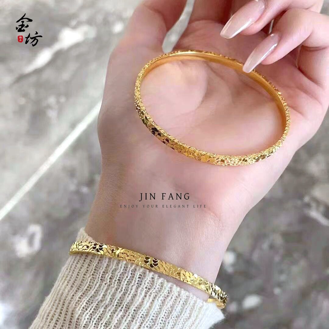 Gold shop with ancient French sand gold three-sided broken ice ice bracelet fashion Joker high-end flash bracelet online red wholesale