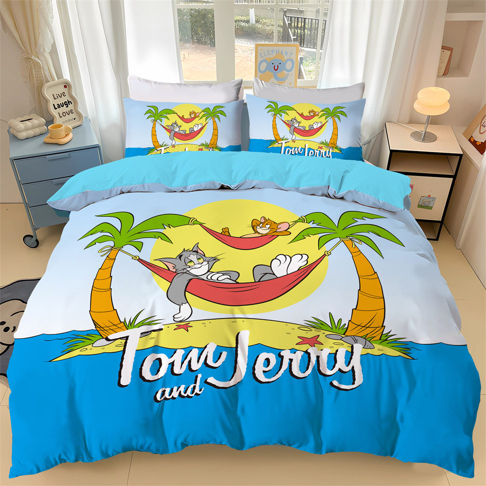 Four-piece cotton DIY animation photo three-piece set of 40 60S100 foreign trade cotton quilt cover sheets