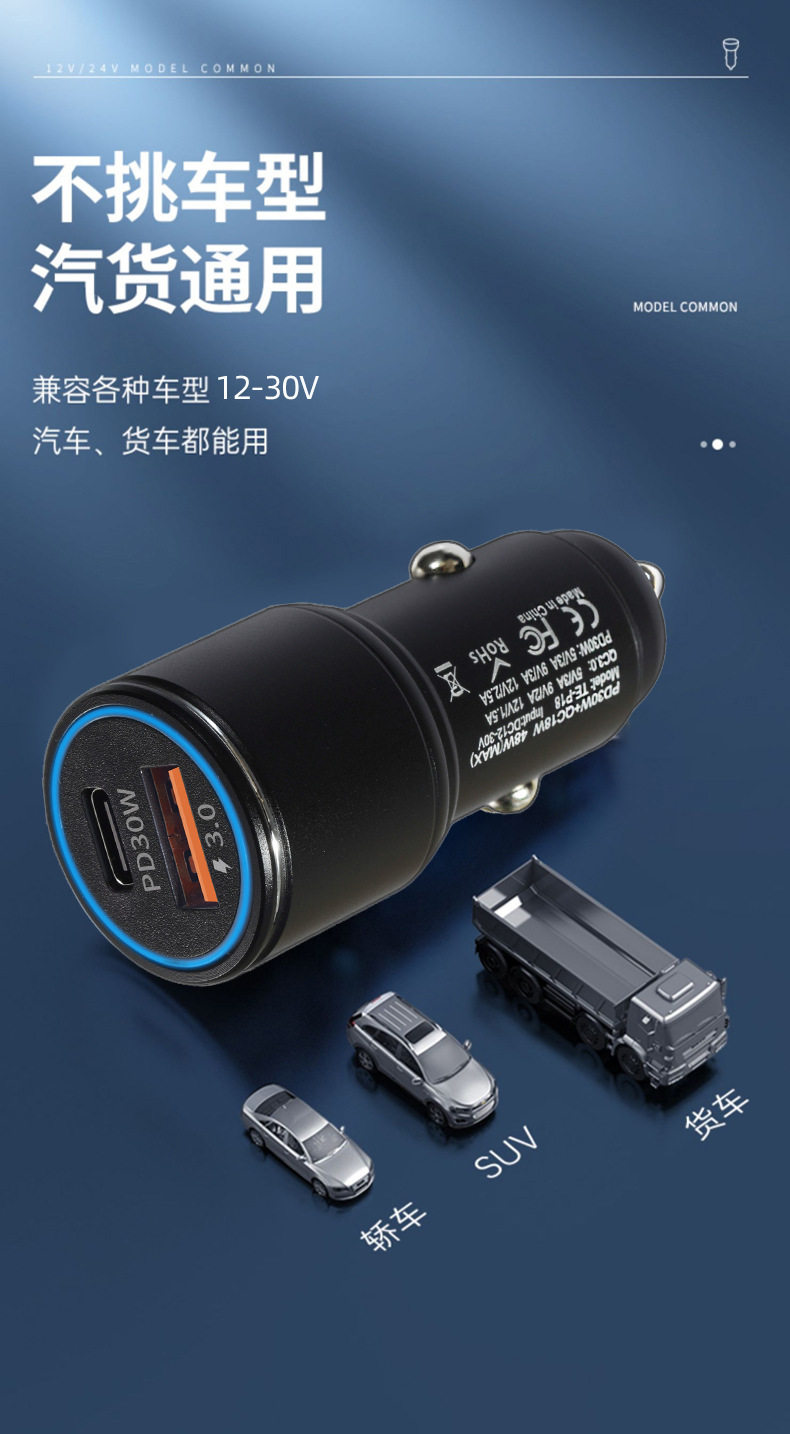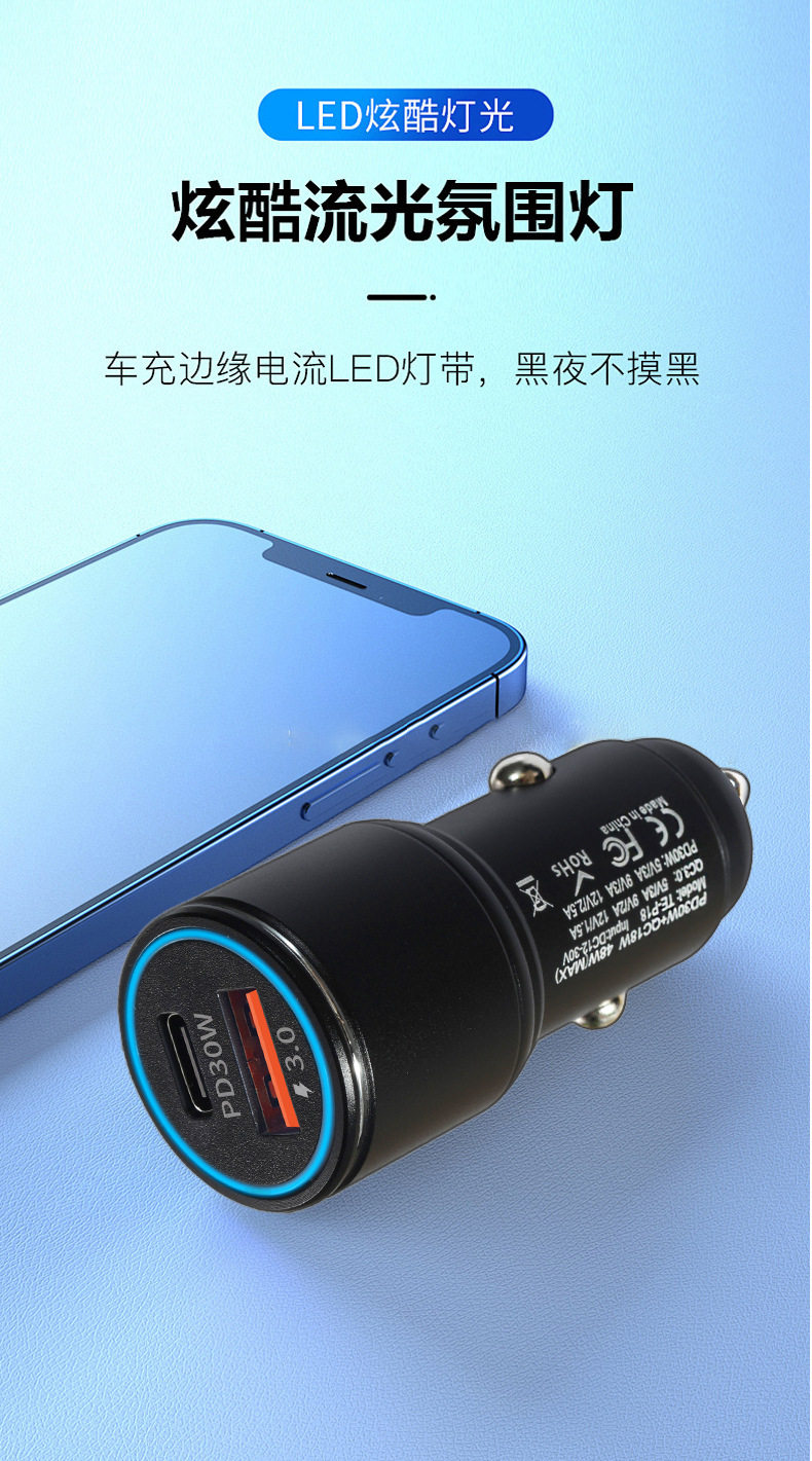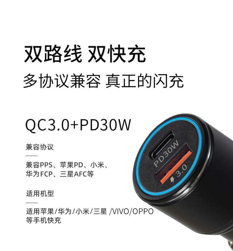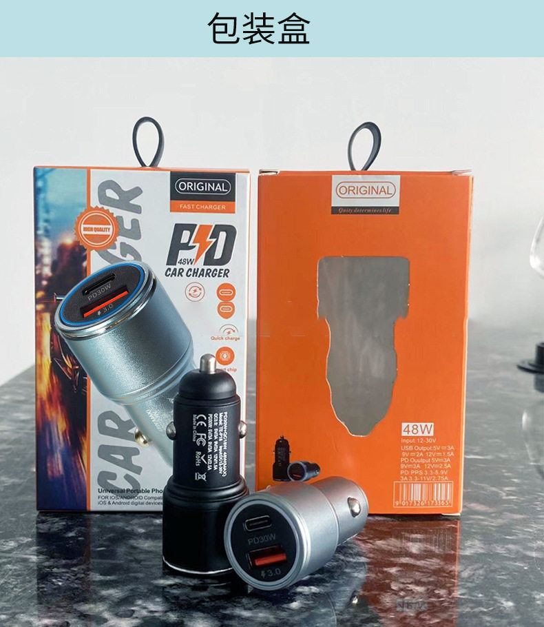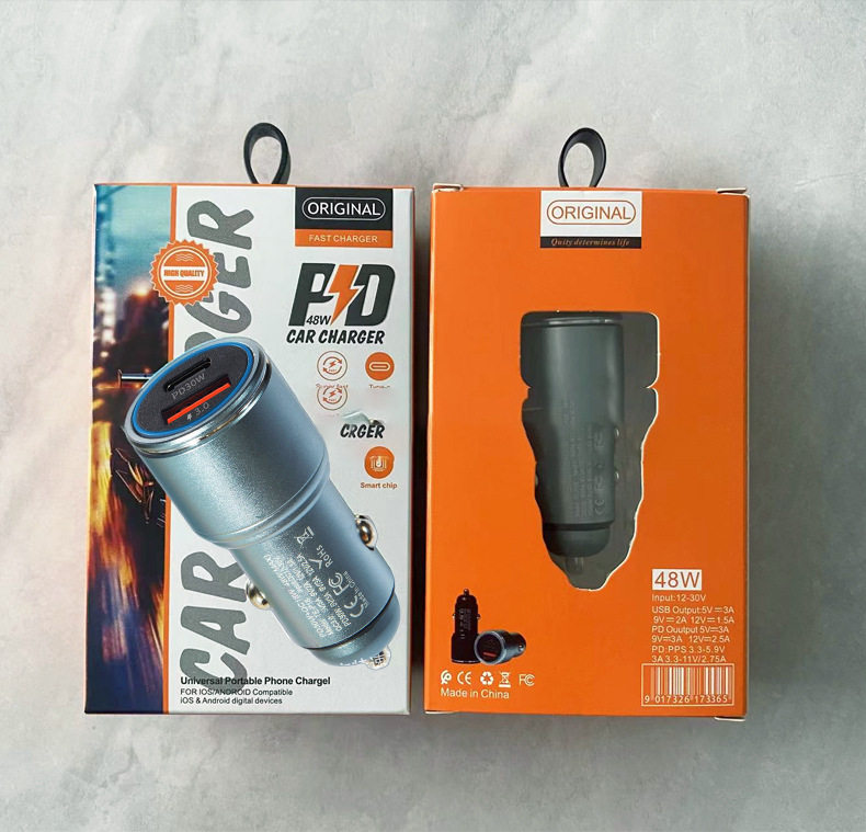 New A C car charger double fast charge 6A metal aluminum alloy 48WPD car charger car charger head wholesale