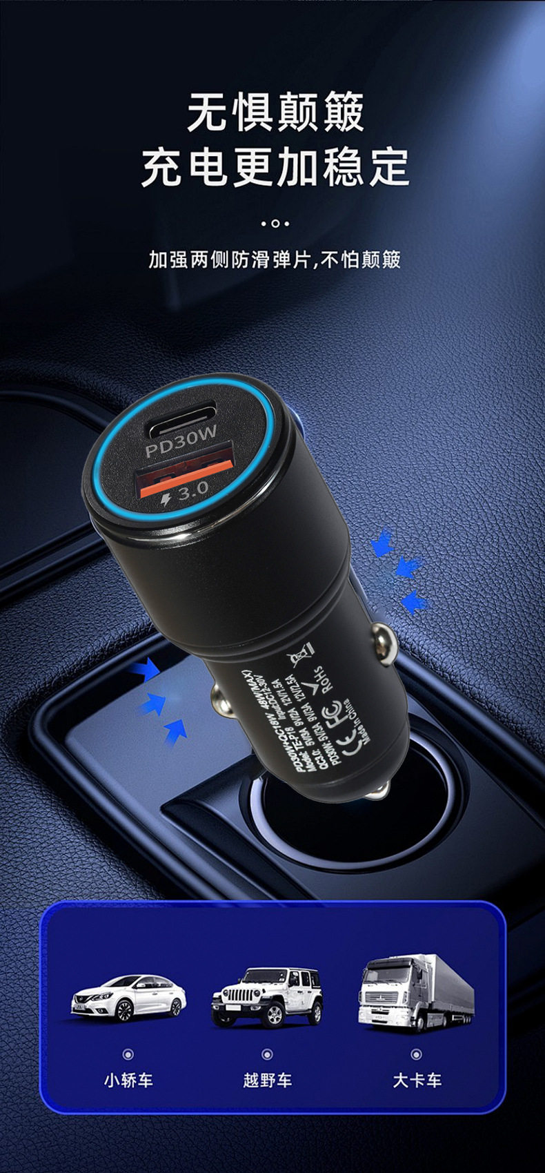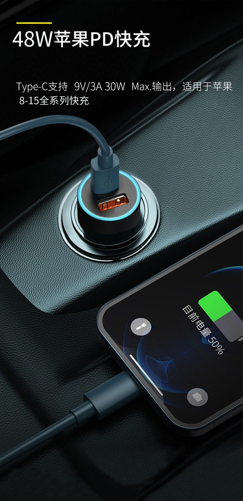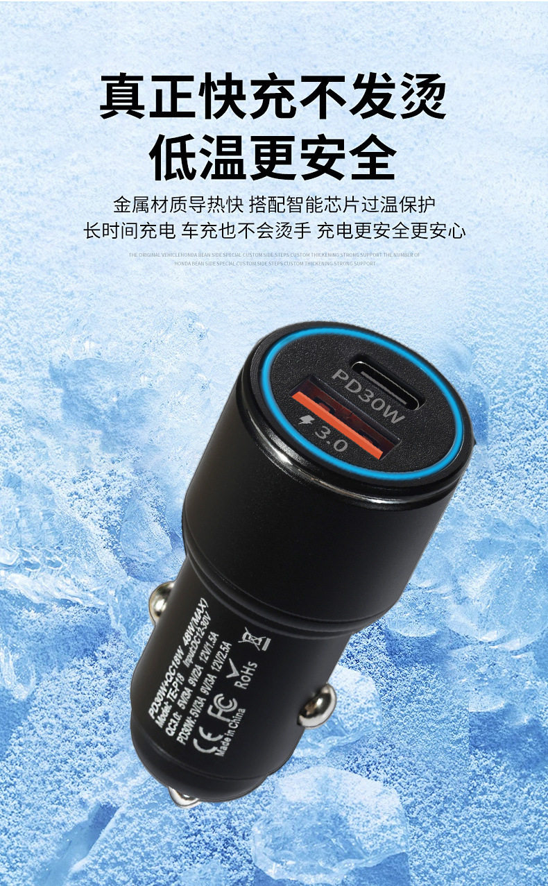 New A C car charger double fast charge 6A metal aluminum alloy 48WPD car charger car charger head wholesale