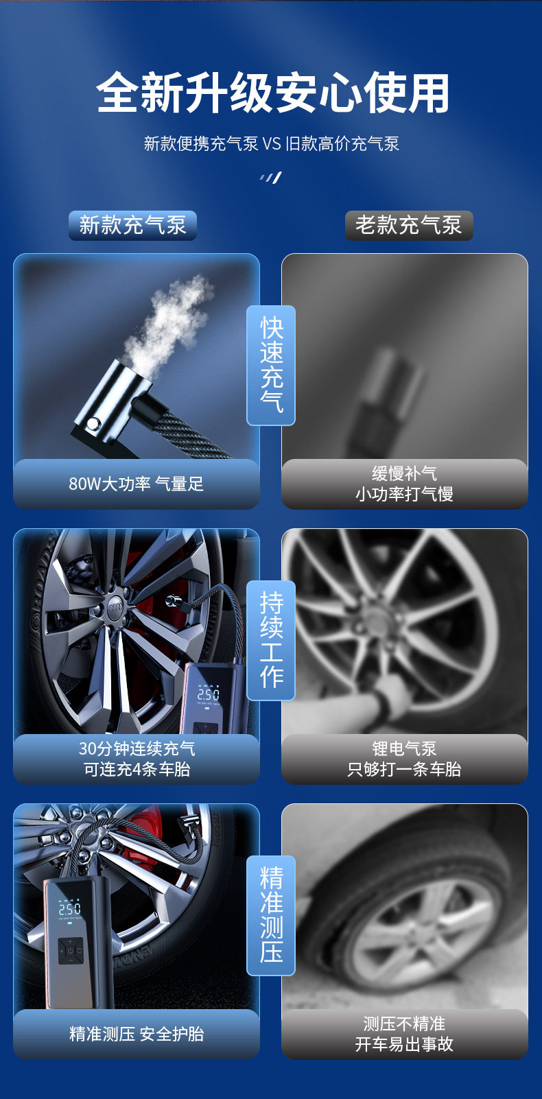 | Specifications | 500000 R power [wired plug-in model/full mirror screen] comes with storage bag,800000 R power [german AI wireless model/full mirror screen] 4 seconds inflatable (comes with storage bag and inflatable set),900000 R strong power [german AI wired wireless dual-use model] 3 seconds air replenishment (comes with storage bag and inflatable set),GeRman AI dual pump 2500000 R supeR poweR] as a poweR bank ★ stoRage bag ★ inflatable set |