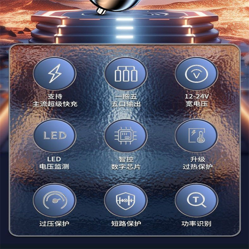 Car charger one drag five fast charging car converter super fast charging cigarette lighter car charging truck car universal