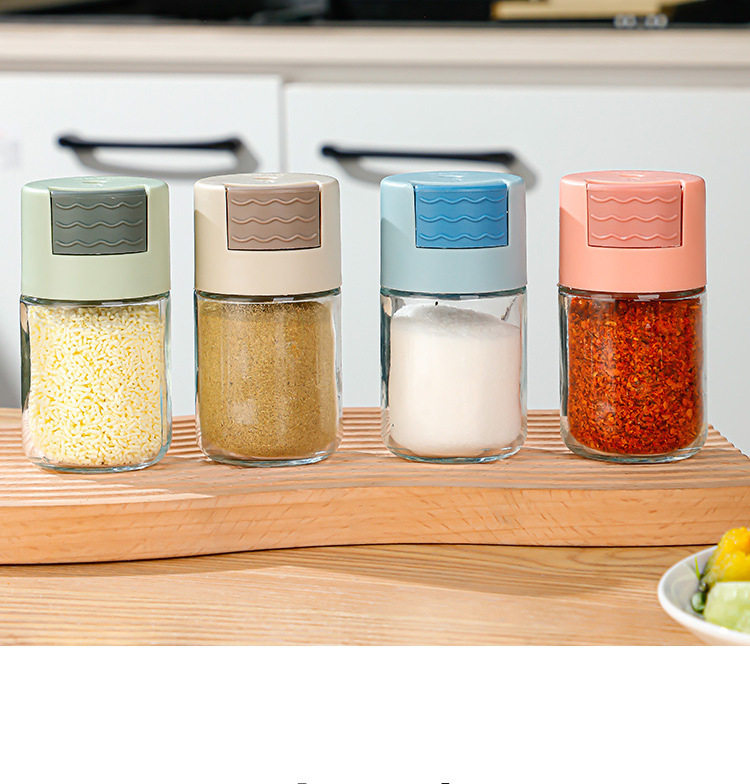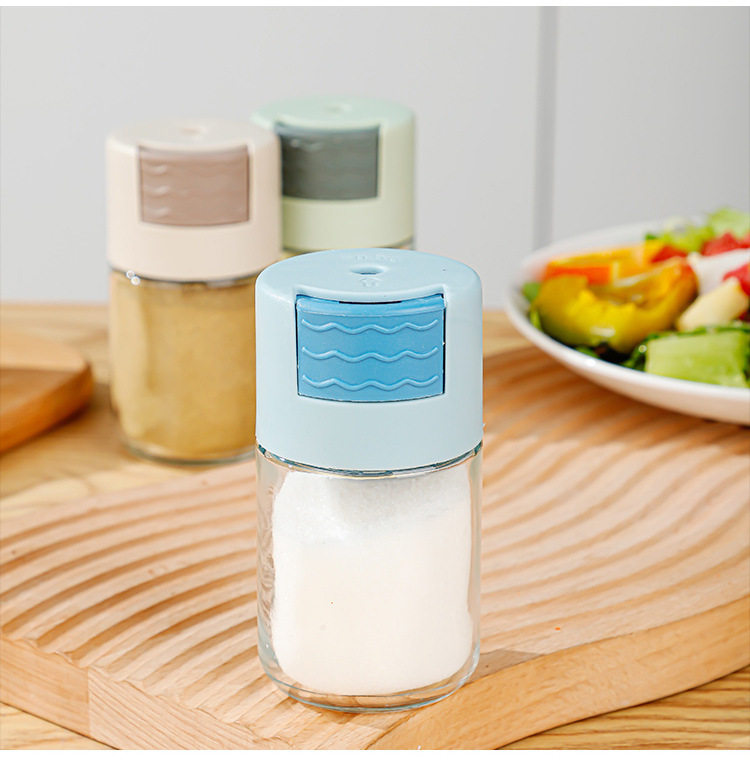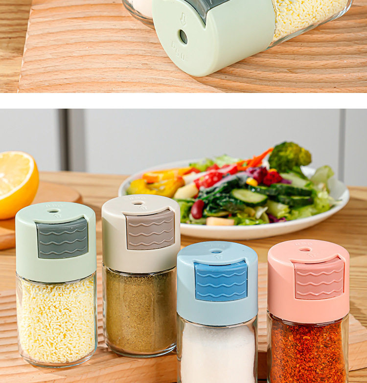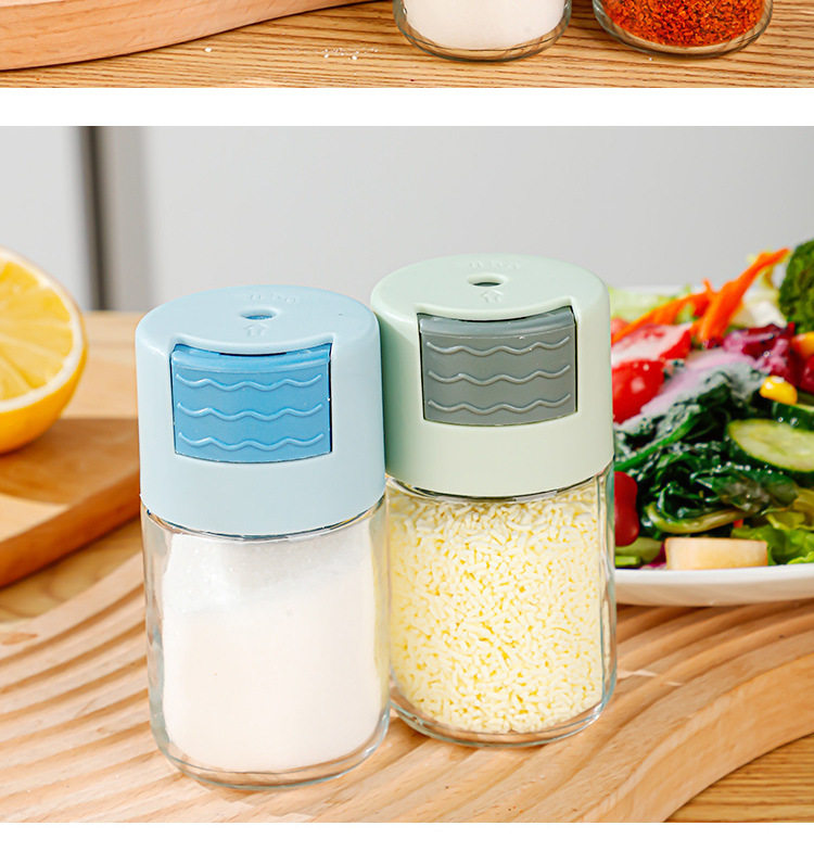 Controlled Salt Bottle Quantitative Seasoning Jar Kitchen Glass Seasoning Press Seasoning Jar Sealed Seasoning Box Salt Jar MSG