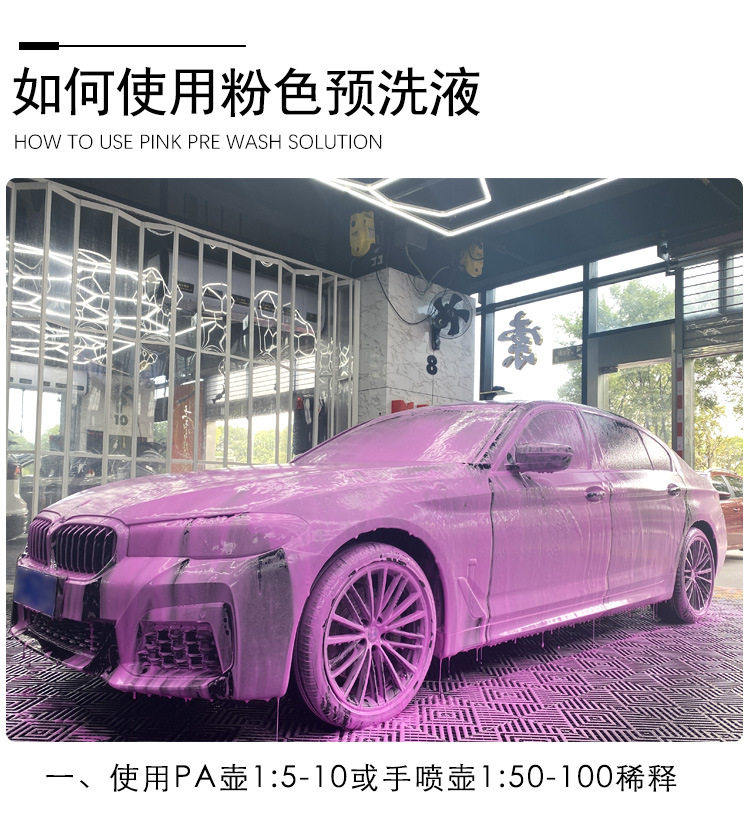 Pink Pre-Wash Liquid High-Foaming Concentrated Car Wash Liquid Car Powder Pre-Wash Car Strong Decontamination Cleaning Liquid Pre-Wash Agent