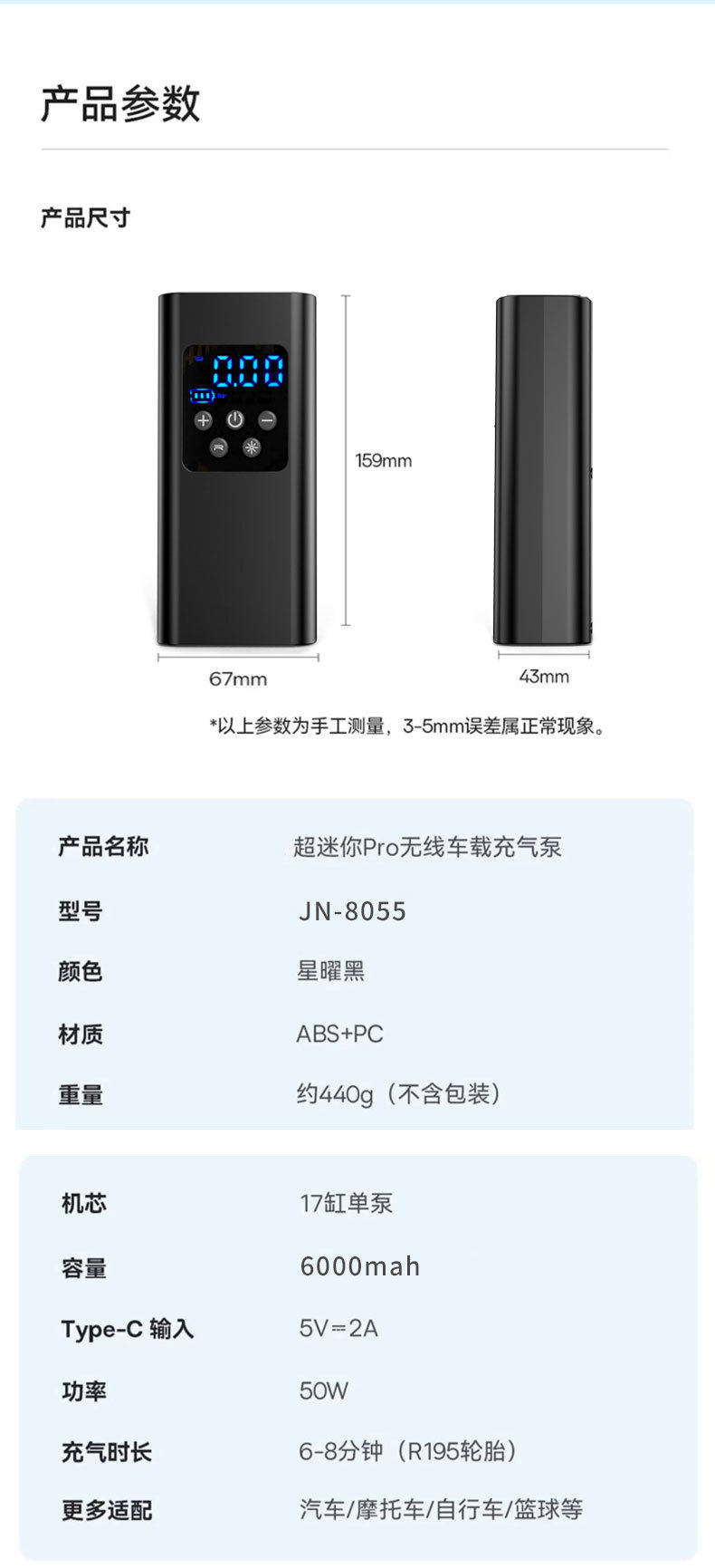 | Specification | Vehicle plug-in model,Wireless lithium battery (6000mah),058a full mirror wired model [cigarette lighter to draw power],058b full mirror wireless model [usb charging model],058c full mirror dual-use model [cigarette lighter power + usb charging model],058d emergency power supply air pump all-in-one machine,Jn-8111 wired digital display model,Jn-8111 wireless digital display + usb model [1800 mah*2],Jn-8111 wireless digital display + usb + dc model [1800 mah*2] |