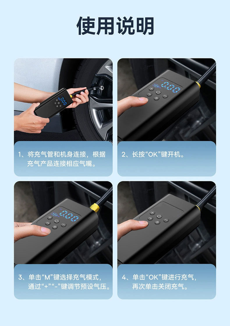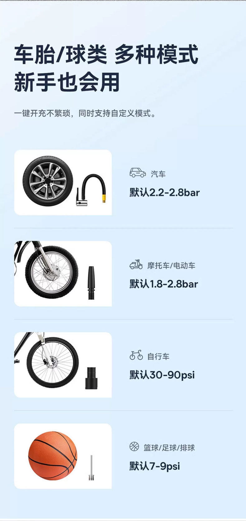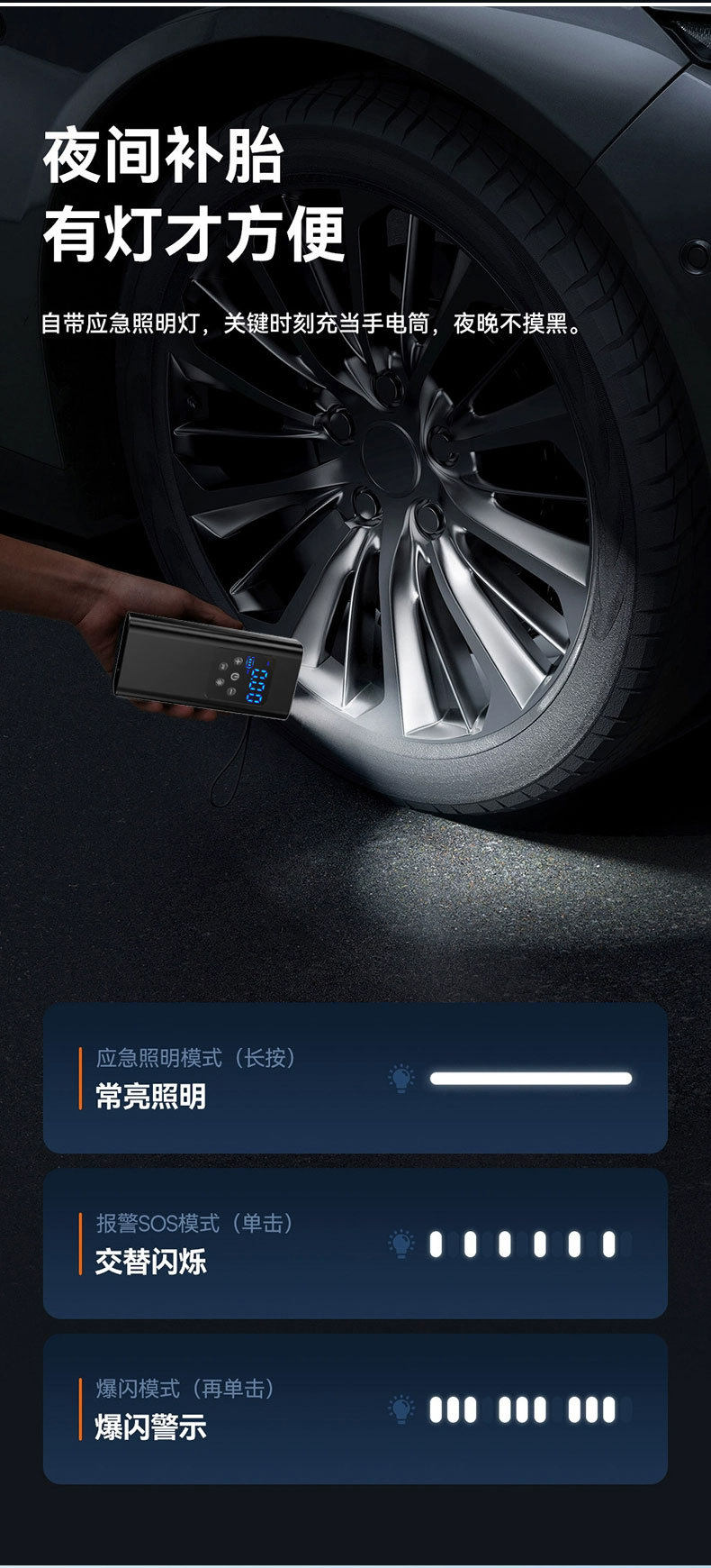 | Additional features | Lighting,Tire pressure gauge,Warning light,Usb charging |
