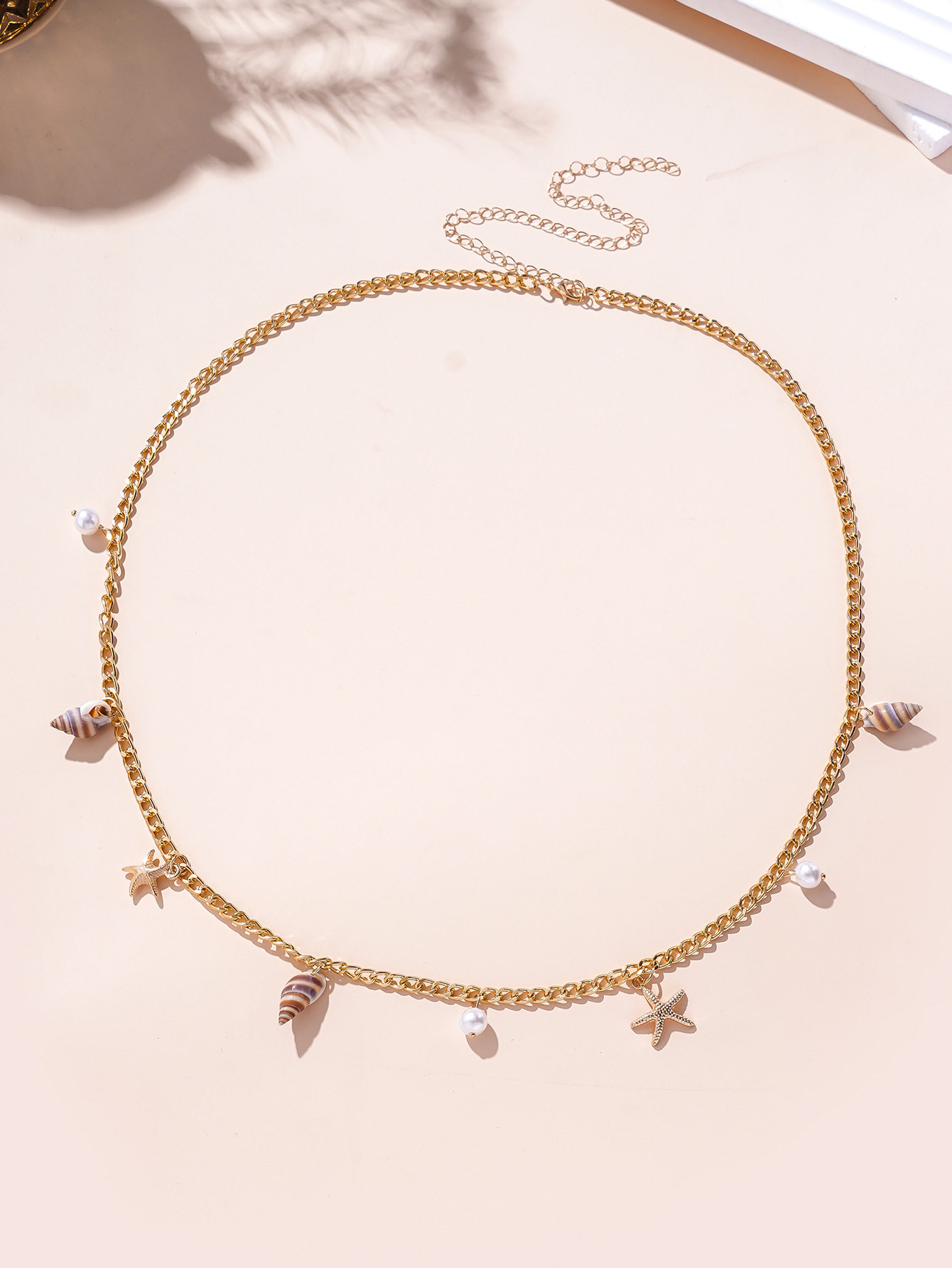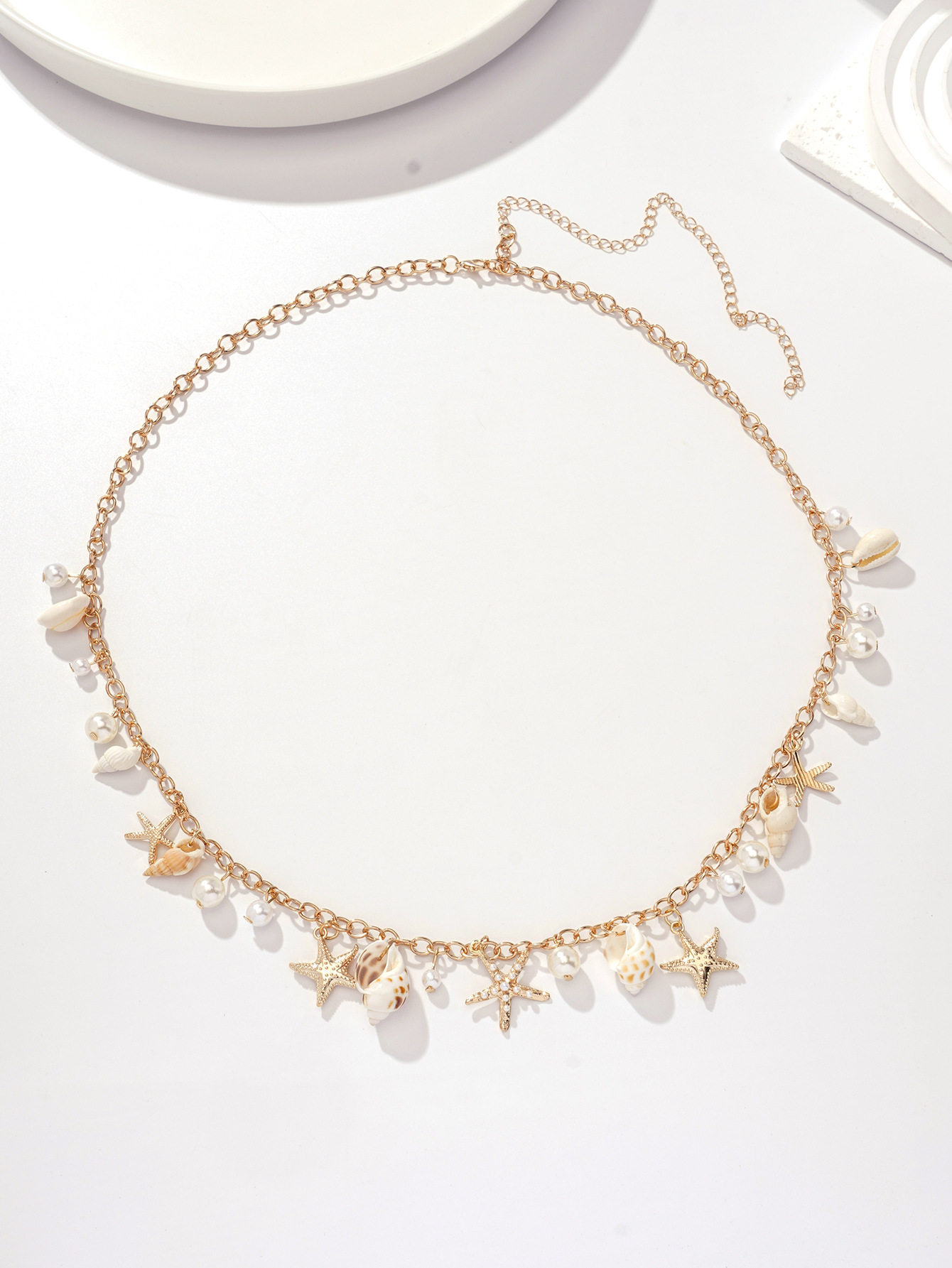 Bohemian Beach Shell Body Chain Summer Seaside Bikini Imitation Pearl Starfish Conch Pendant Waist Chain for Women