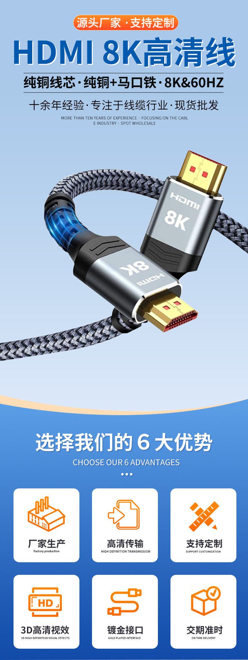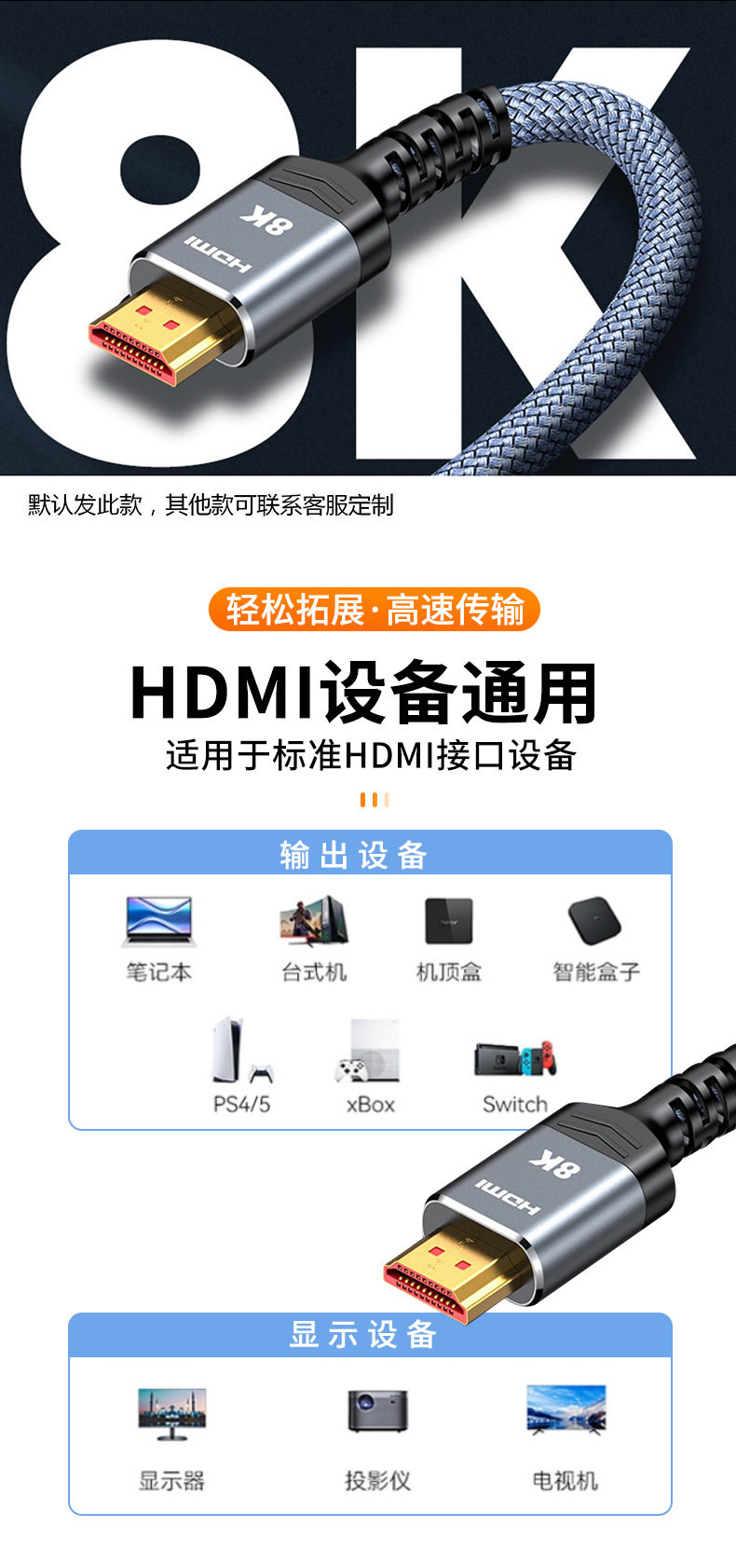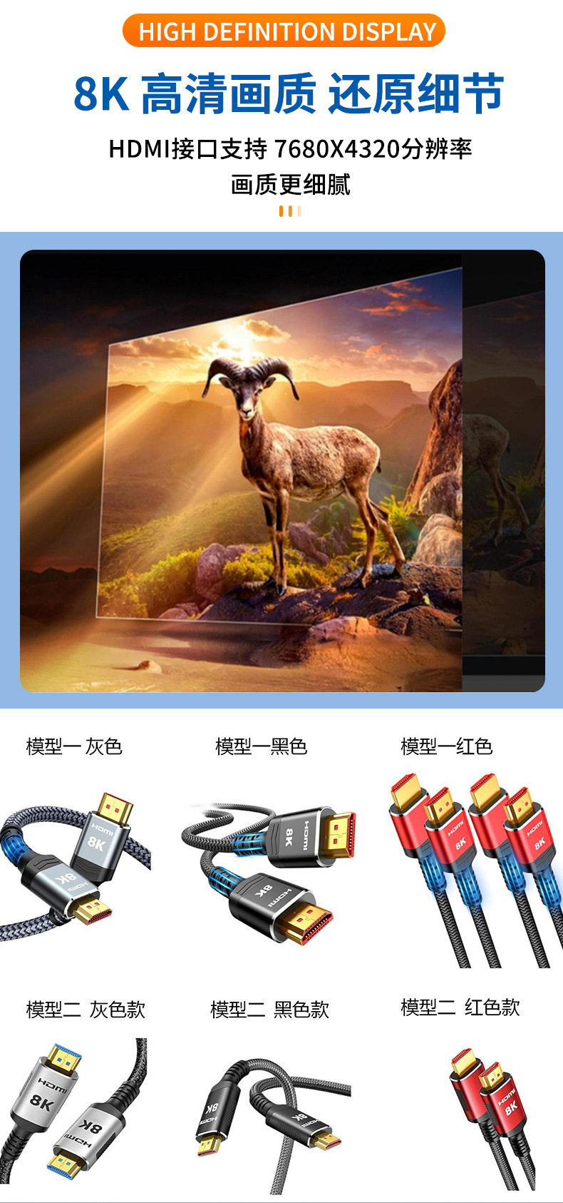 HDMI High-Definition Cable HDMI Cable 8K60Hz Computer Male-To-Male Cable Hd Cable Conversion Cable Tv Connection