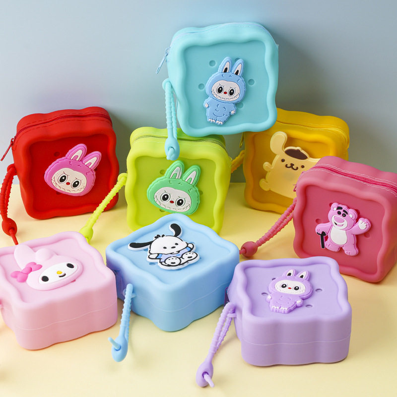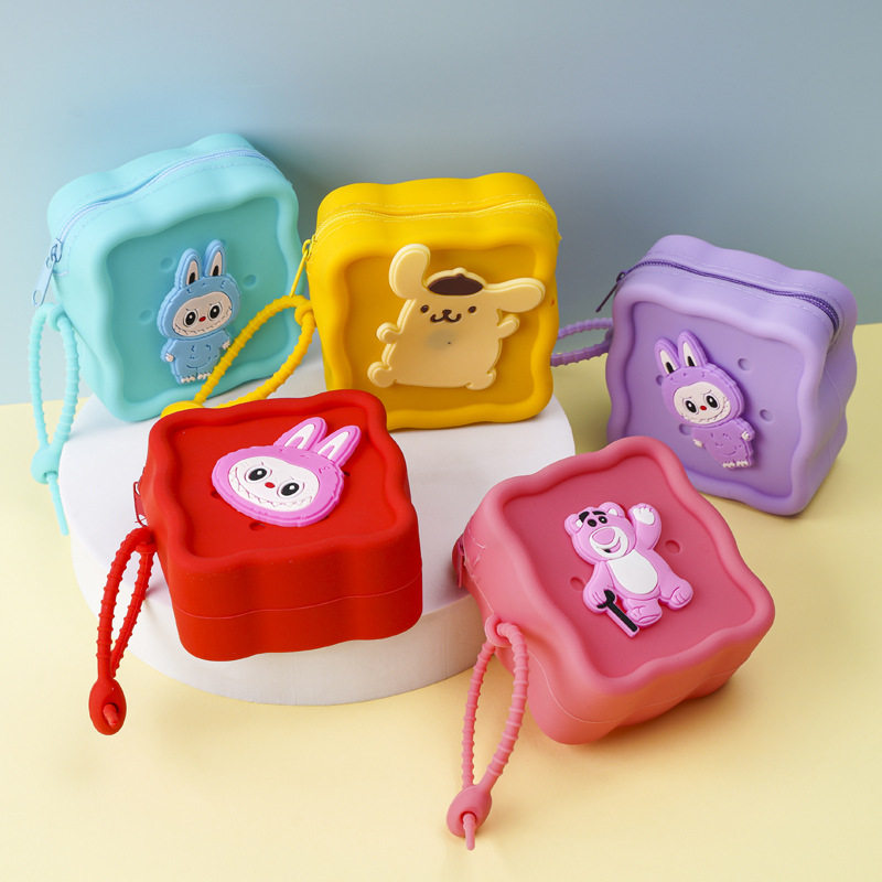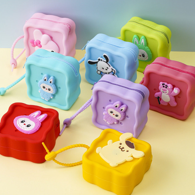 Square Cave Silicone Coin Purse Children's DIY Crossover Walking Key Bag Fun Cute Change Silicone Bag