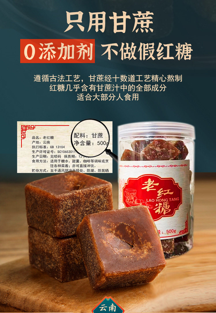 Authentic Traditional Brown Sugar Cubes, Genuine Brown Sugar with No Additives, Suitable for Menstrual Period Consumption, National Standard Pure Cane Pressed in Bulk