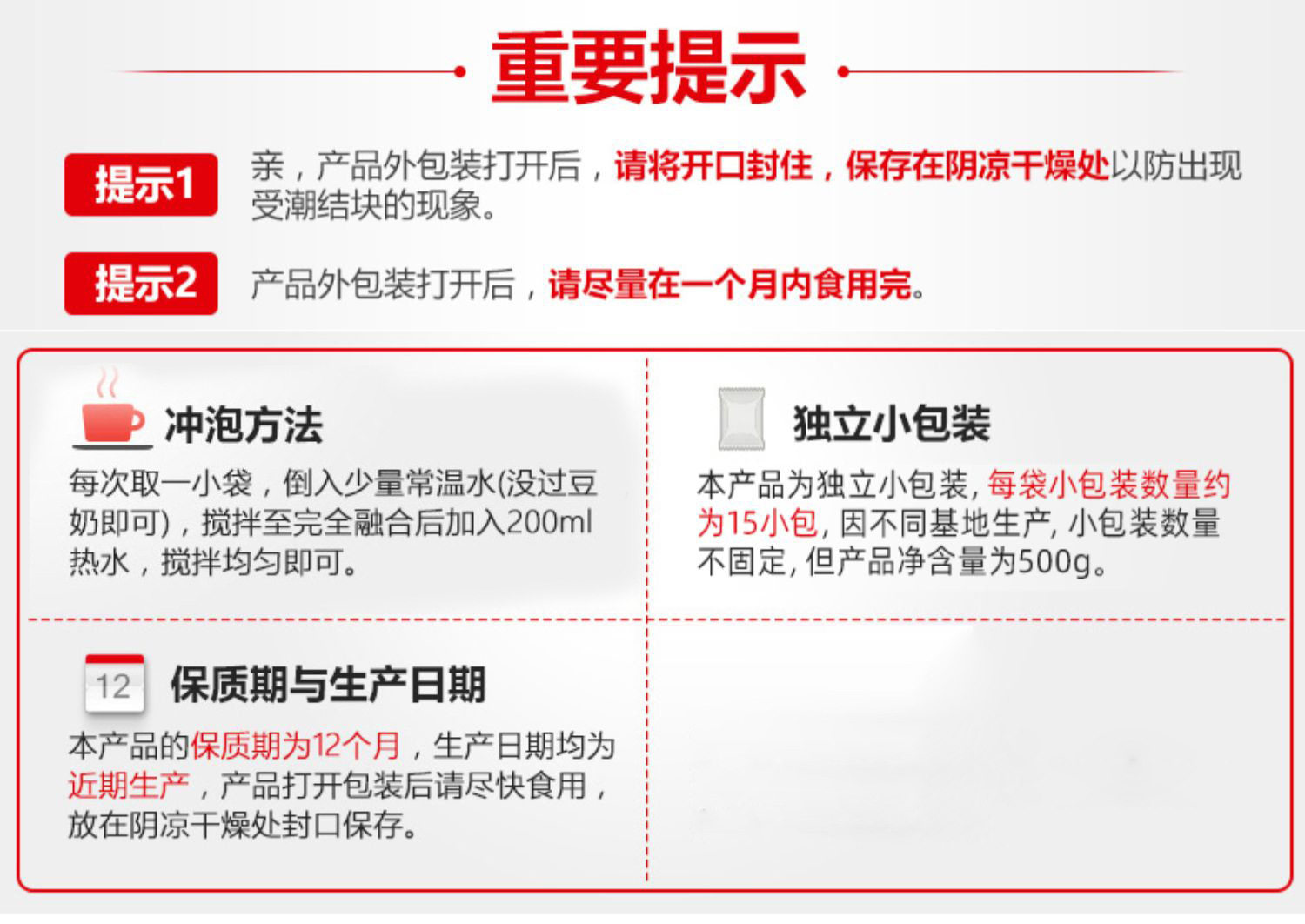 | Packaging specifications | 500g |