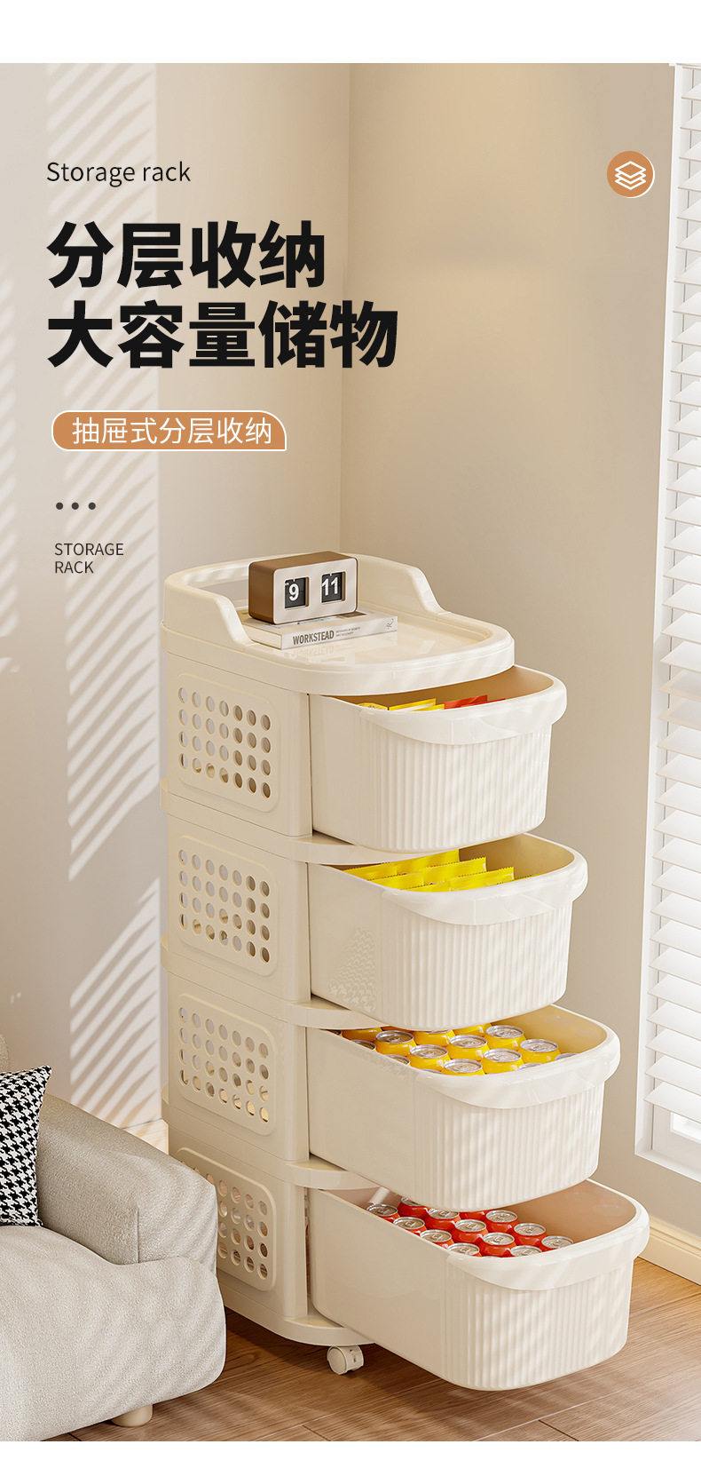 Small Cart Snack Storage Rack Baby Products Layered Rack Drawer Storage Storage Cabinet Living Room Toy Storage Rack