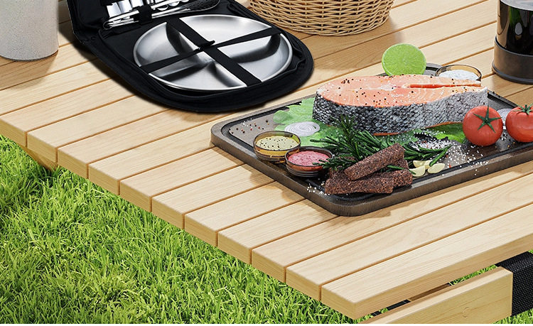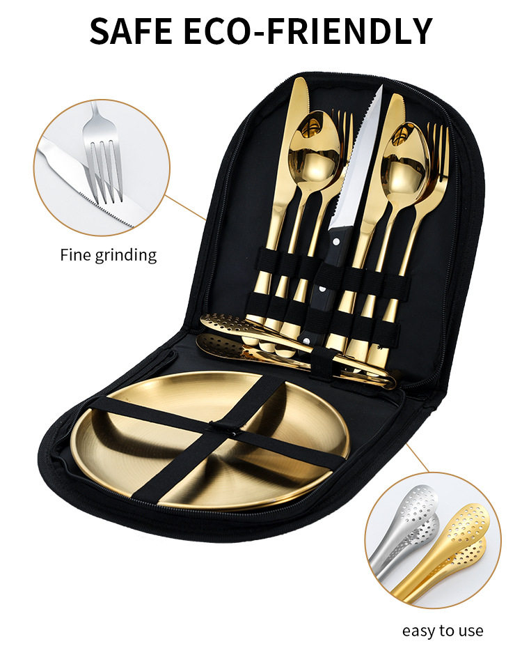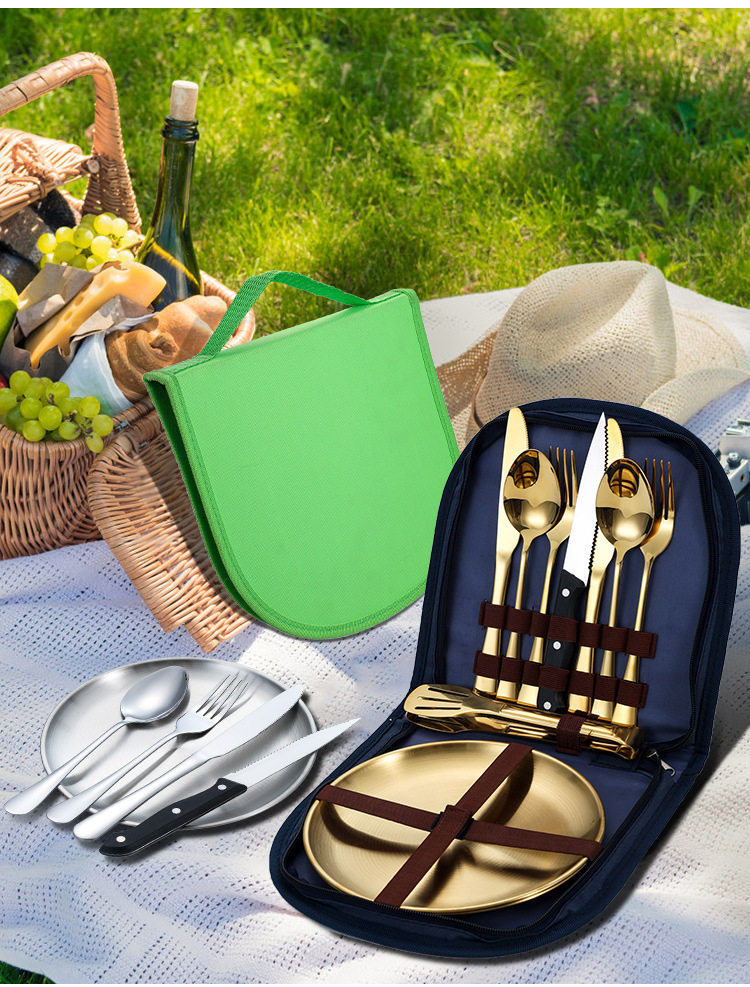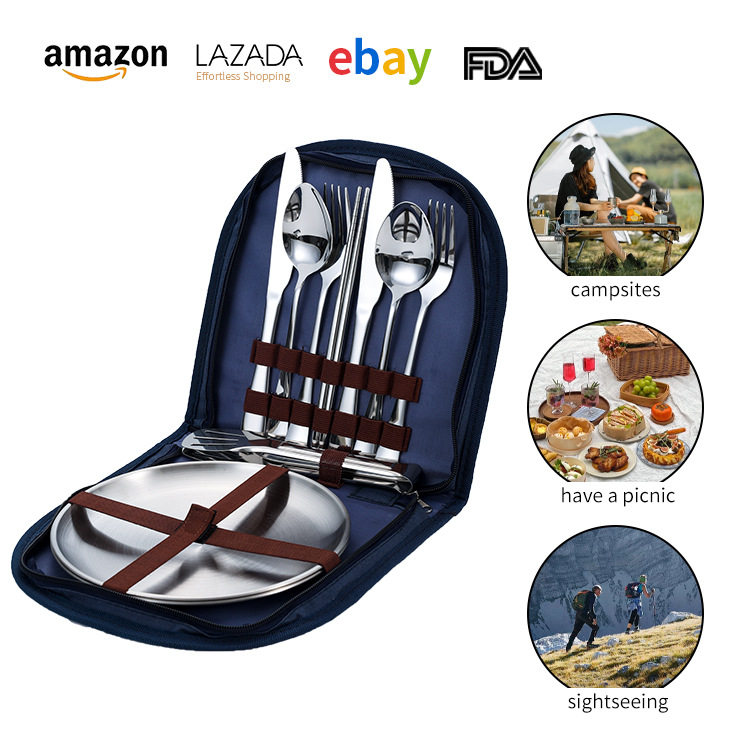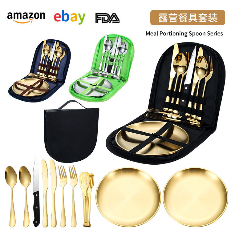Amazon Stainless Steel Outdoor Tableware Camping Picnic Barbecue Steak Knife, Fork and Spoon Plate Portable Tableware Set