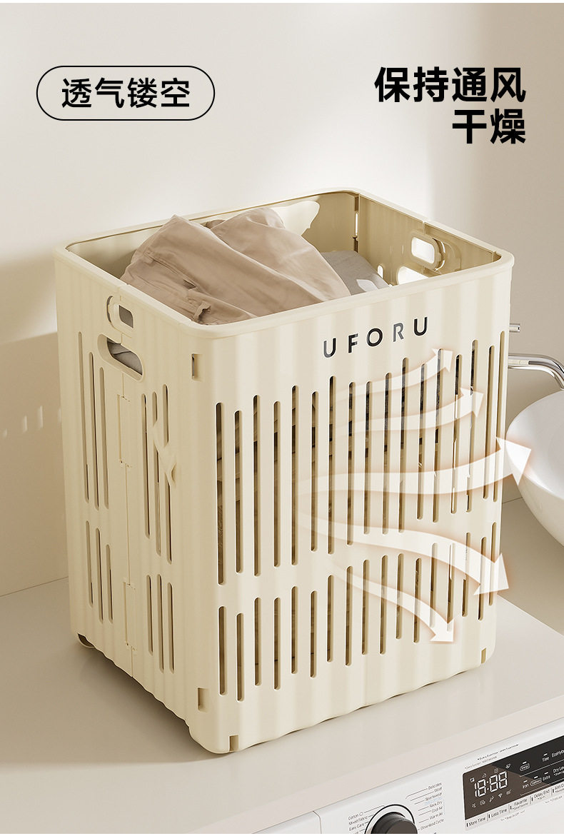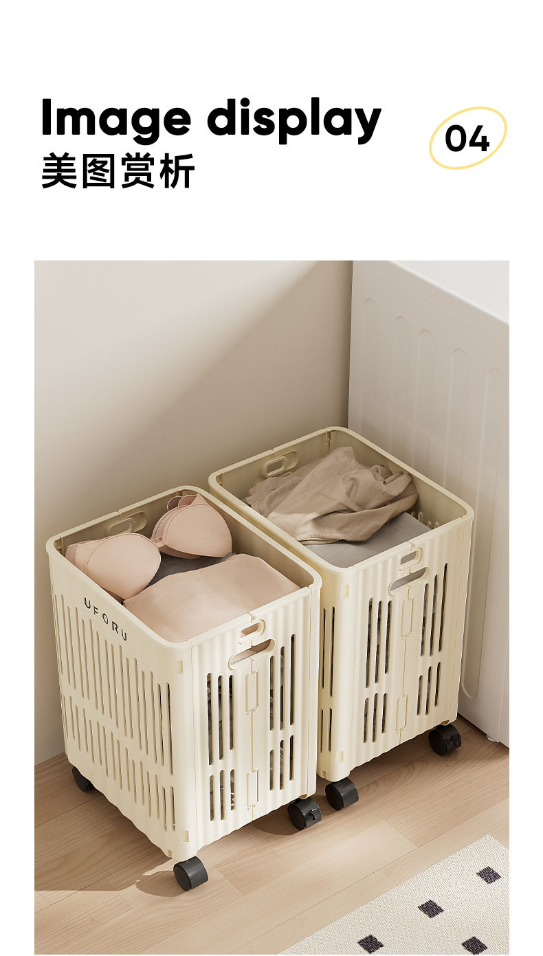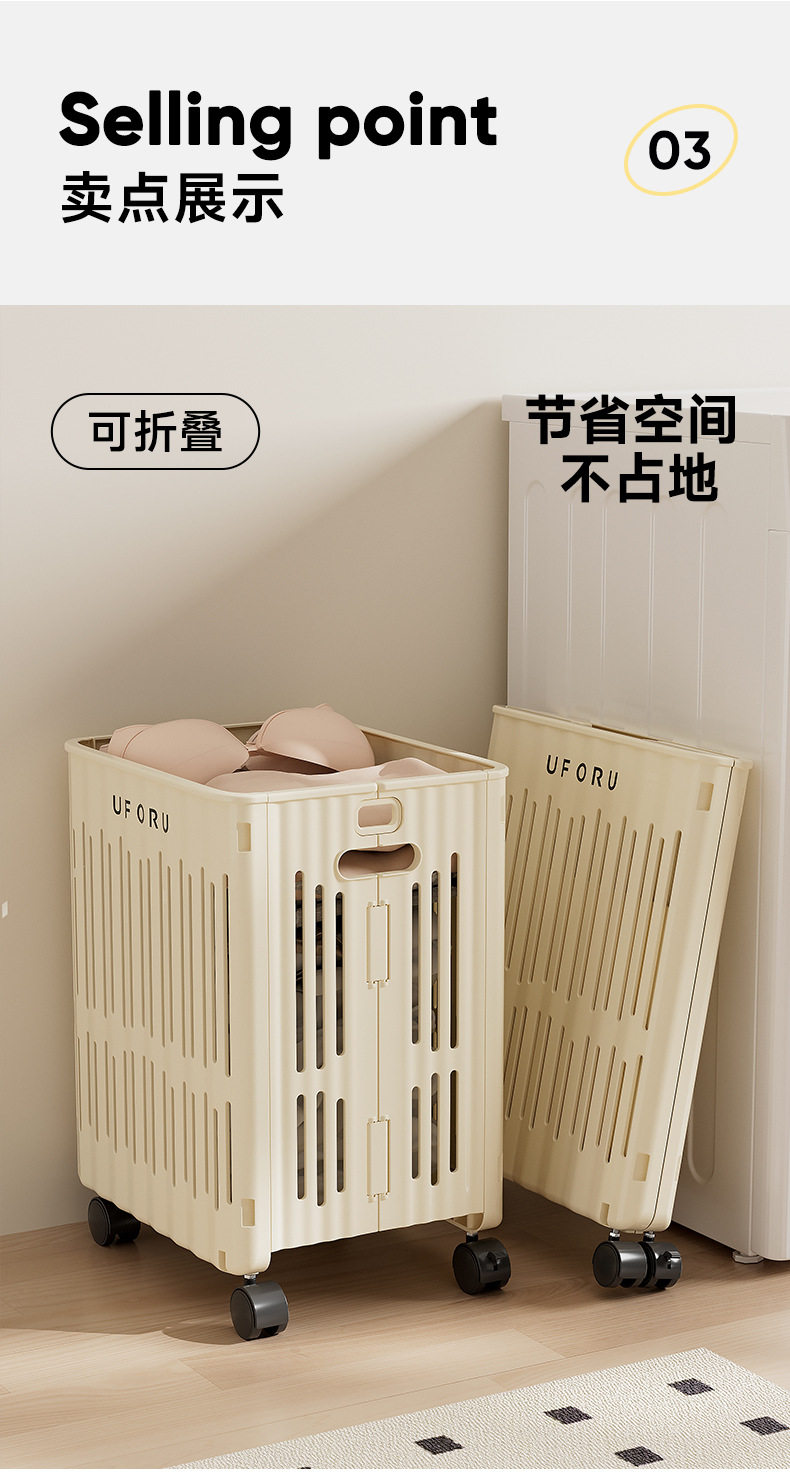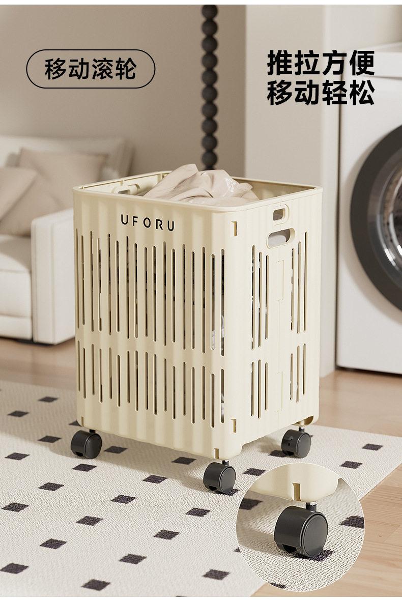Folding Dirty Clothes Basket Clothes Storage Basket Household Movable Bedroom Bathroom Multi-functional Large Dirty Clothes Basket with Wheels