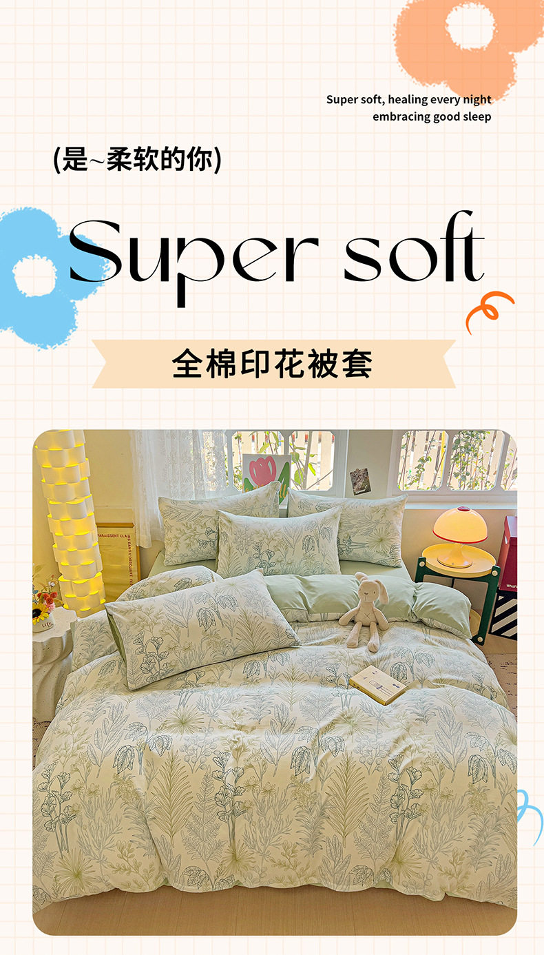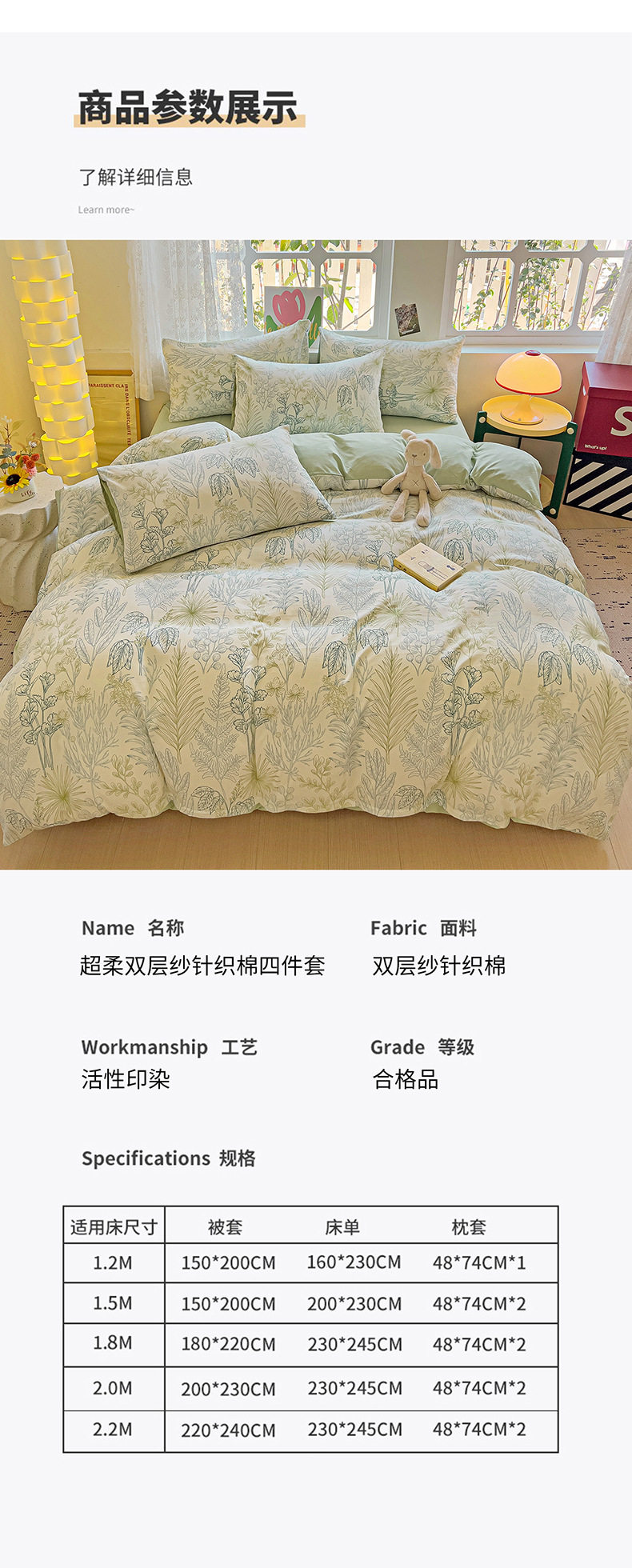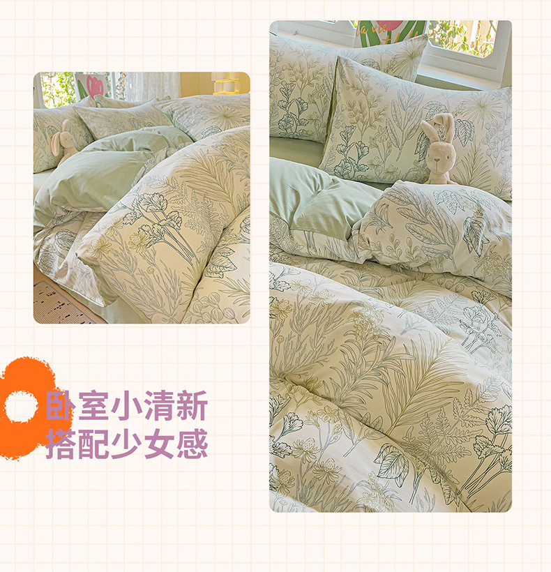 | Dimensions | 0.9-1.2m bed small three-piece set (quilt cover 1.5*2.0m bed sheet 1.6*2.3m),1.2-1.35m bed small four-piece set (quilt cover 1.5*2.0m bed sheet 2.0*2.3m),1.5-1.8m bed standard four-piece set (quilt cover 2.0*2.3m bed sheet 2.3*2.45m),2.0m bed plus four-piece set (quilt cover 2.2*2.4m, sheets 2.3*2.45m,1.5-1.8m medium-sized four-piece bed set (quilt cover 1.8*2.2m sheets 2.3*2.45m),0.9 fitted sheet (quilt cover 1.5*2.0m) three-piece set,1.2 fitted sheets (quilt cover 1.5*2.0m) four-piece set,1.5 fitted sheets (quilt cover 1.5*2.0m) four-piece set,1.5 fitted sheets (quilt cover 1.8*2.2m) four-piece set,1.5 fitted sheets (quilt cover 2.0*2.3m) four-piece set,1.8 fitted sheets (quilt cover 1.8*2.2m) four-piece set,1.8 fitted sheets (quilt cover 2.0*2.3m) four-piece set,1.8 fitted sheets (quilt cover 2.2*2.4m) four-piece set,2.0 fitted sheet (quilt cover 1.8*2.2m) four-piece set,2.0 fitted sheet (quilt cover 2.0*2.3m) four-piece set,2.0 fitted sheet (quilt cover 2.2*2.4n) four-piece set,Single pillowcase (pair) |