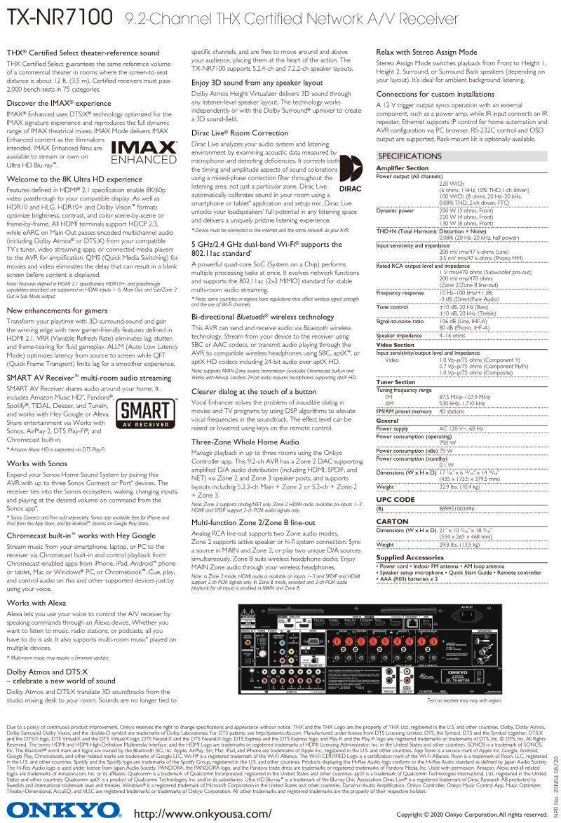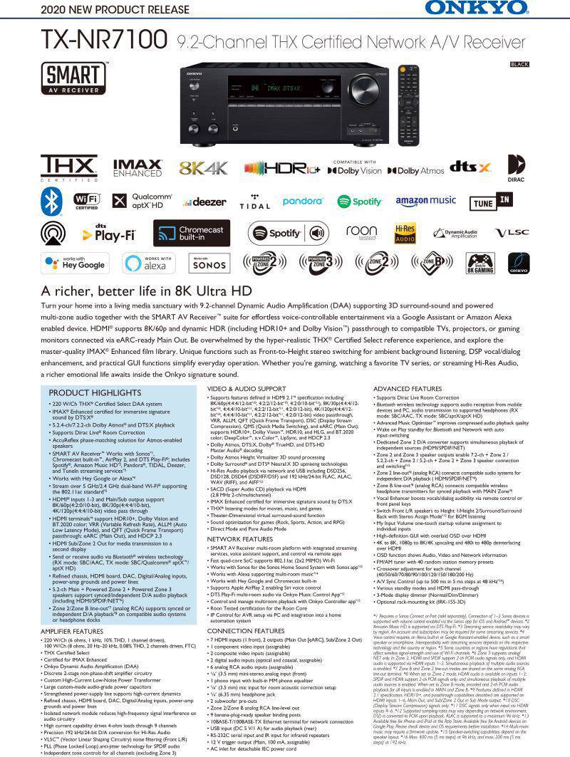 Onkyo/Abridge Tx-Nr7100 9.2 Channel 8K Home Theater Panoramic Sound Av Amplifier