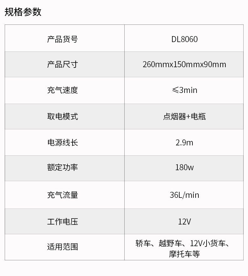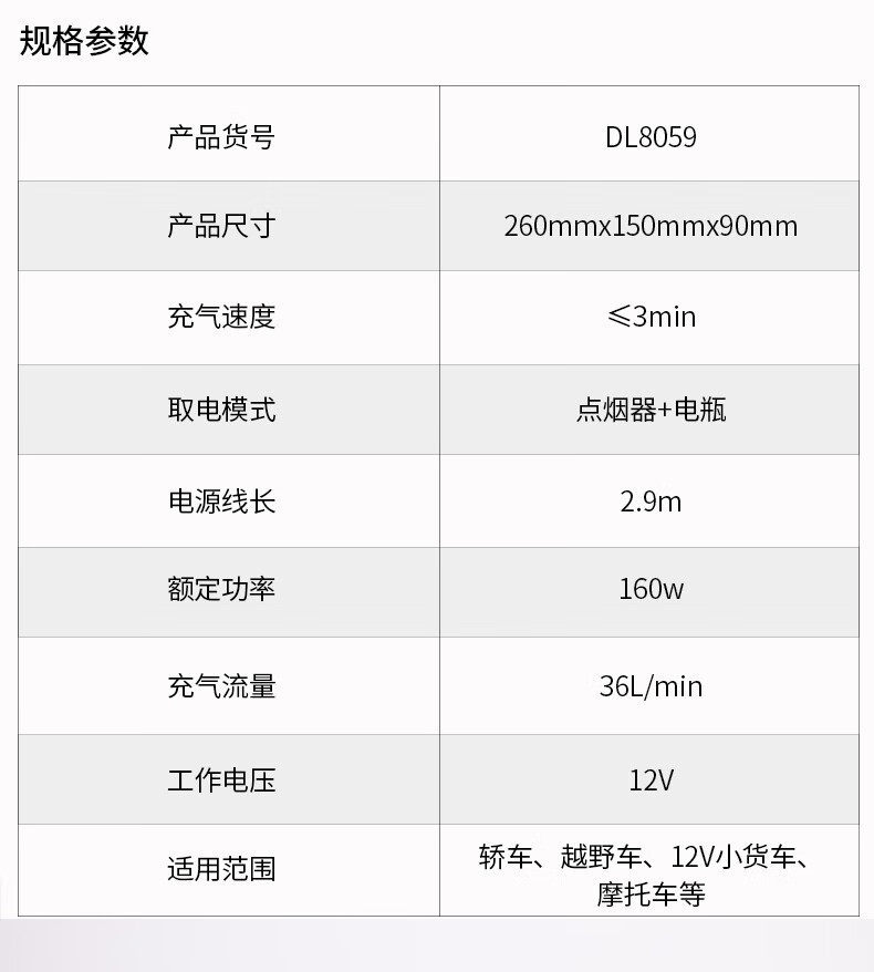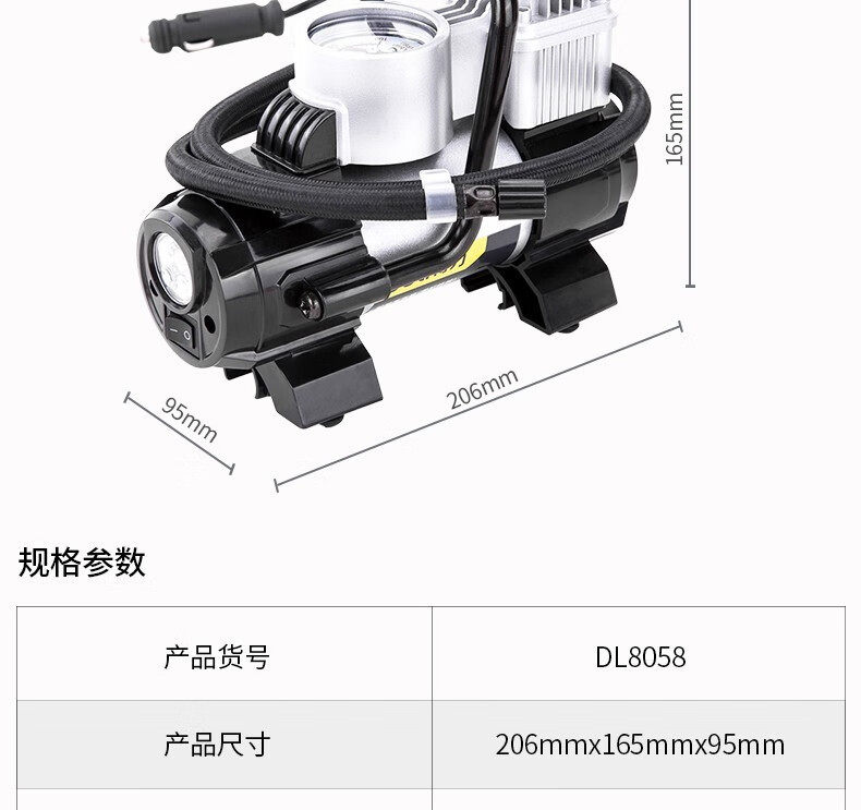 | Specification | Single 30-cylinder [120w mechanical watch] dl8058,Double 30-cylinder [120w mechanical watch] dl8059,Dual 30-cylinder [120w digital display] can preset tire pressure dl880100 |