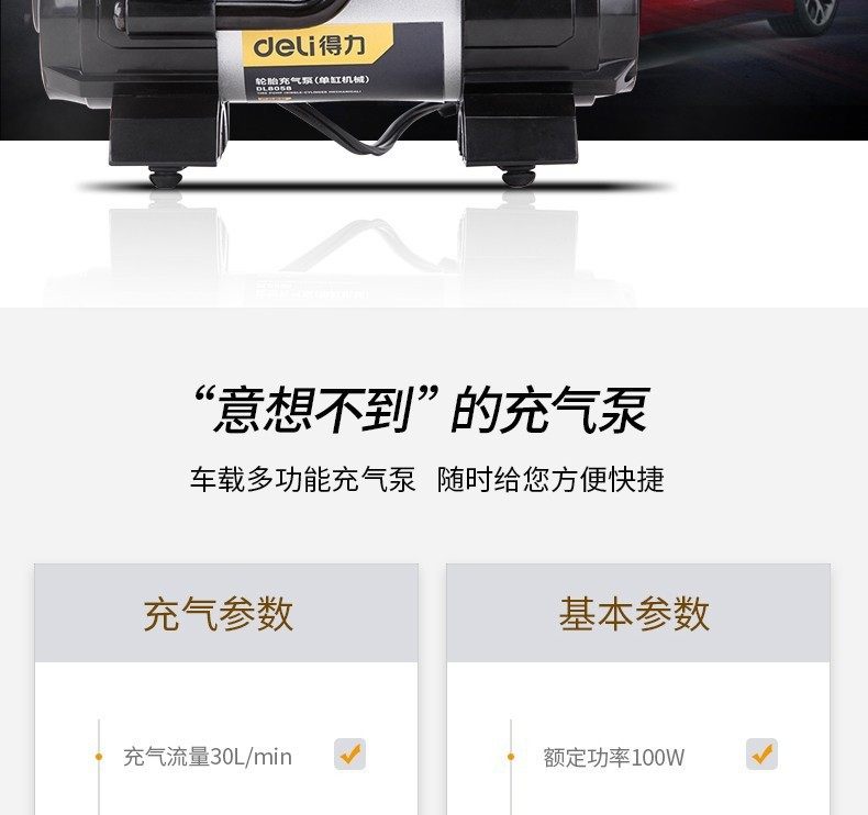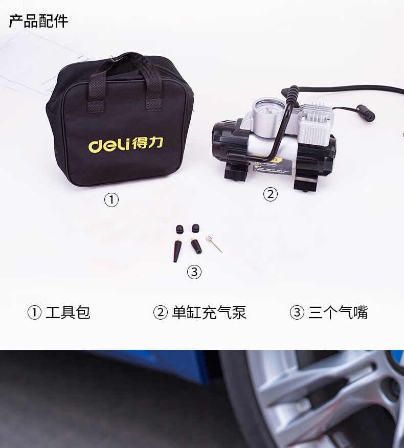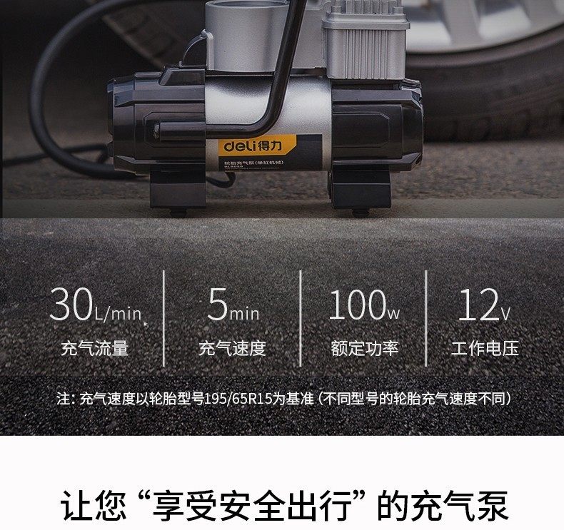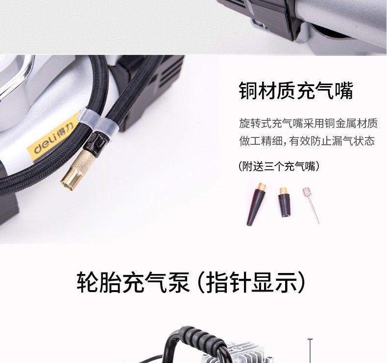 Deli car inflator digital display 12V high pressure portable car high power car inflator pump single 30