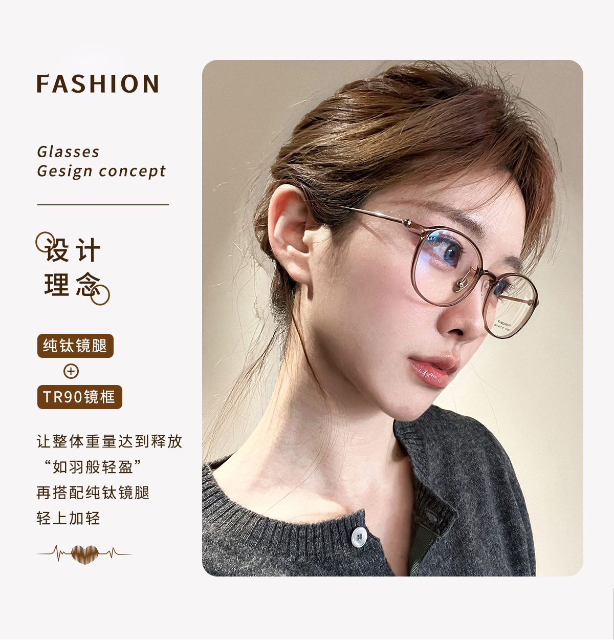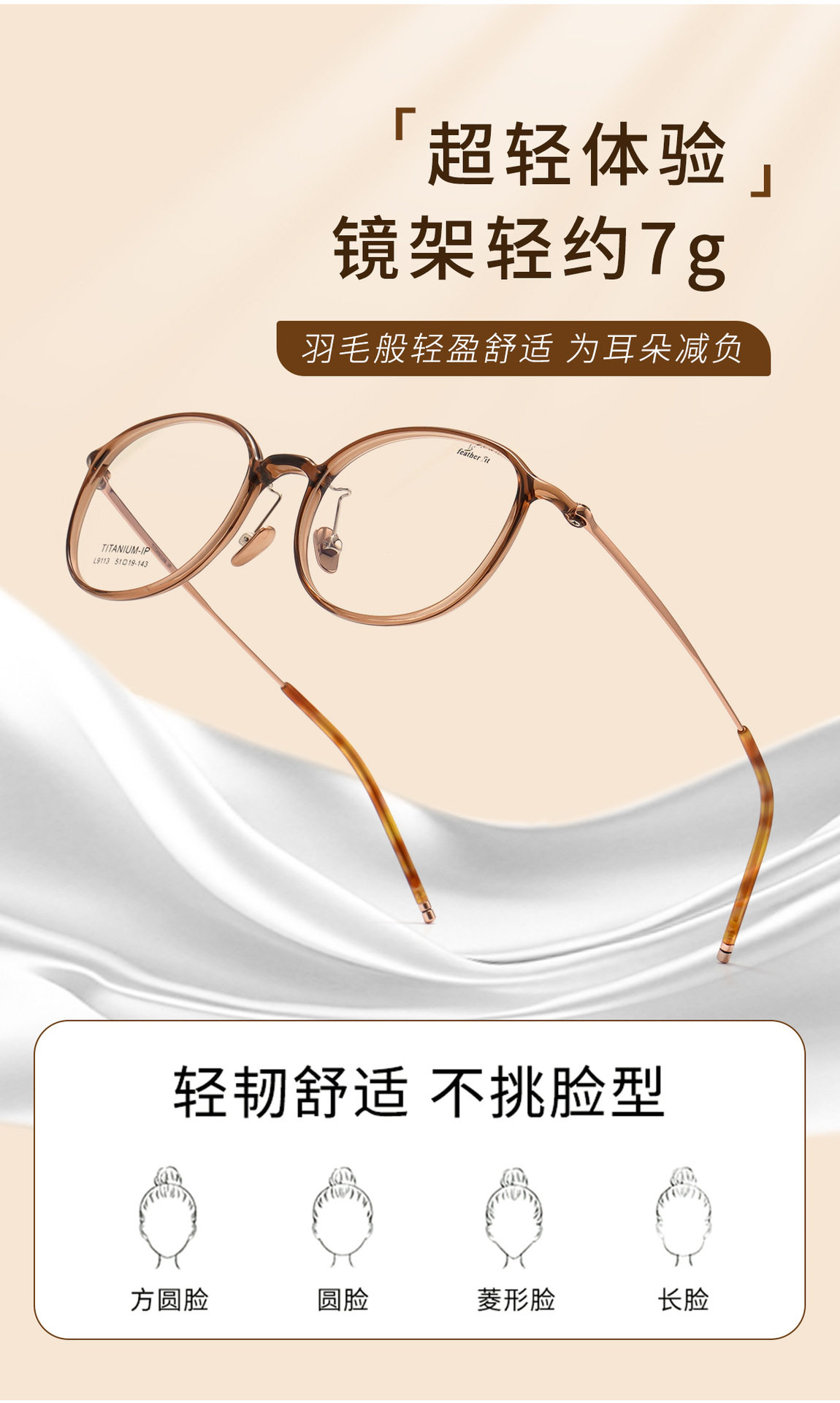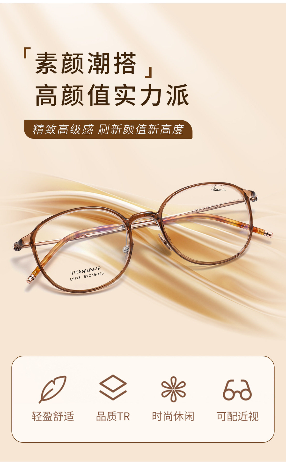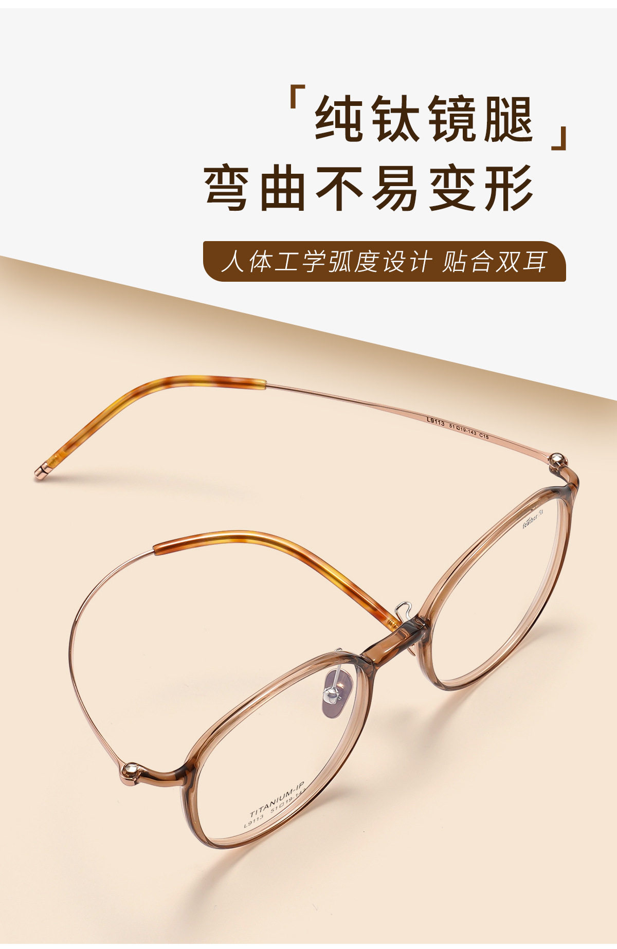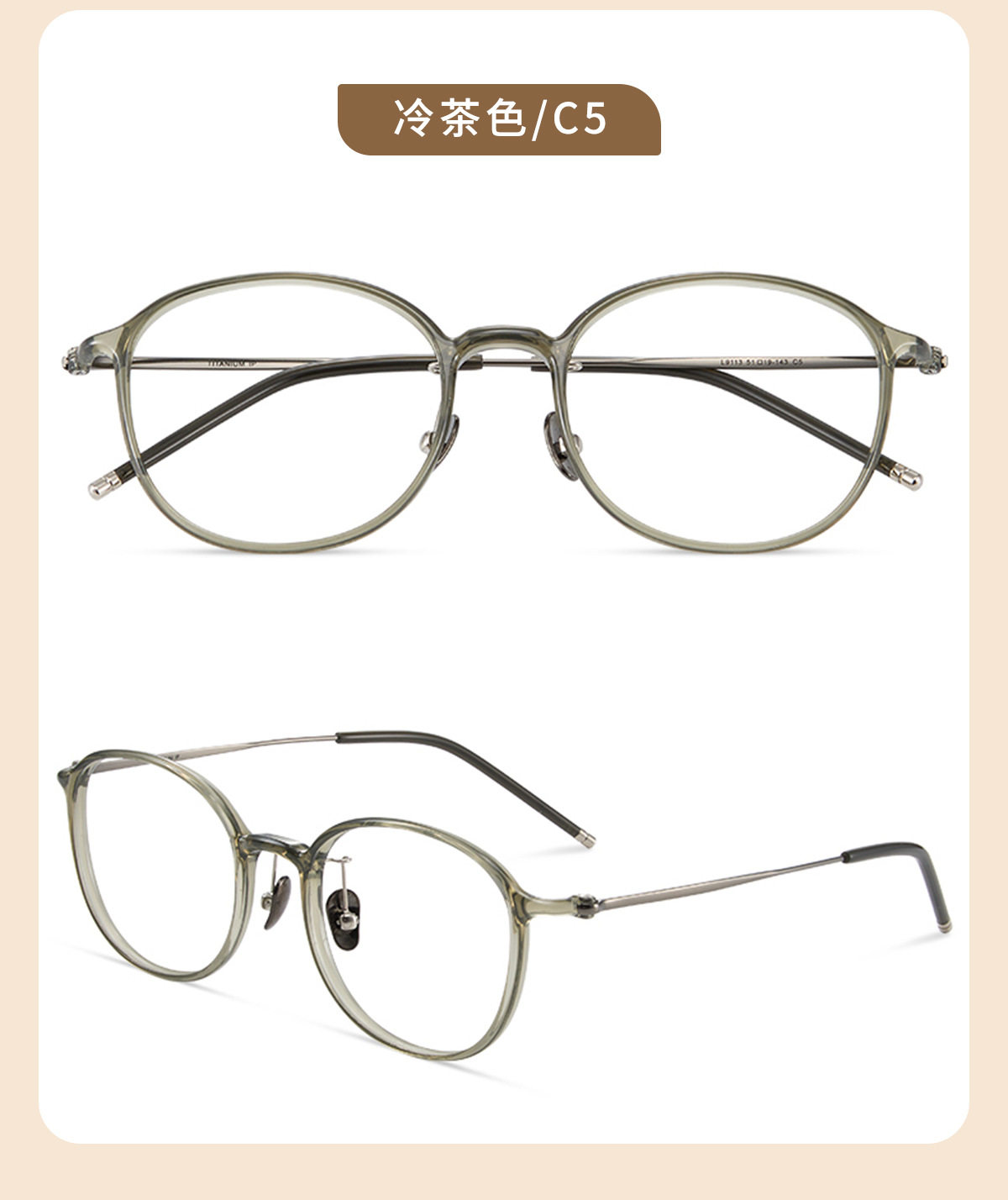 Karin Cold Tea Fashion Small Frame Oval Glasses Frame 9113 Ultra Light Feather Titanium Plain Glasses Frame Danyang Factory Wholesale