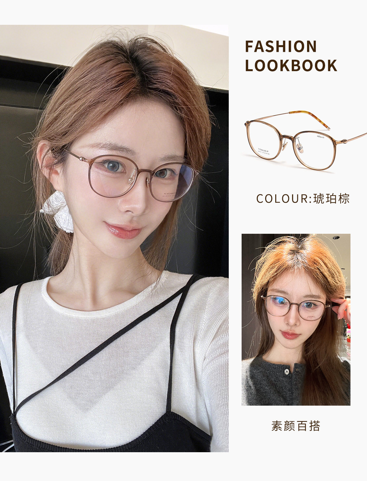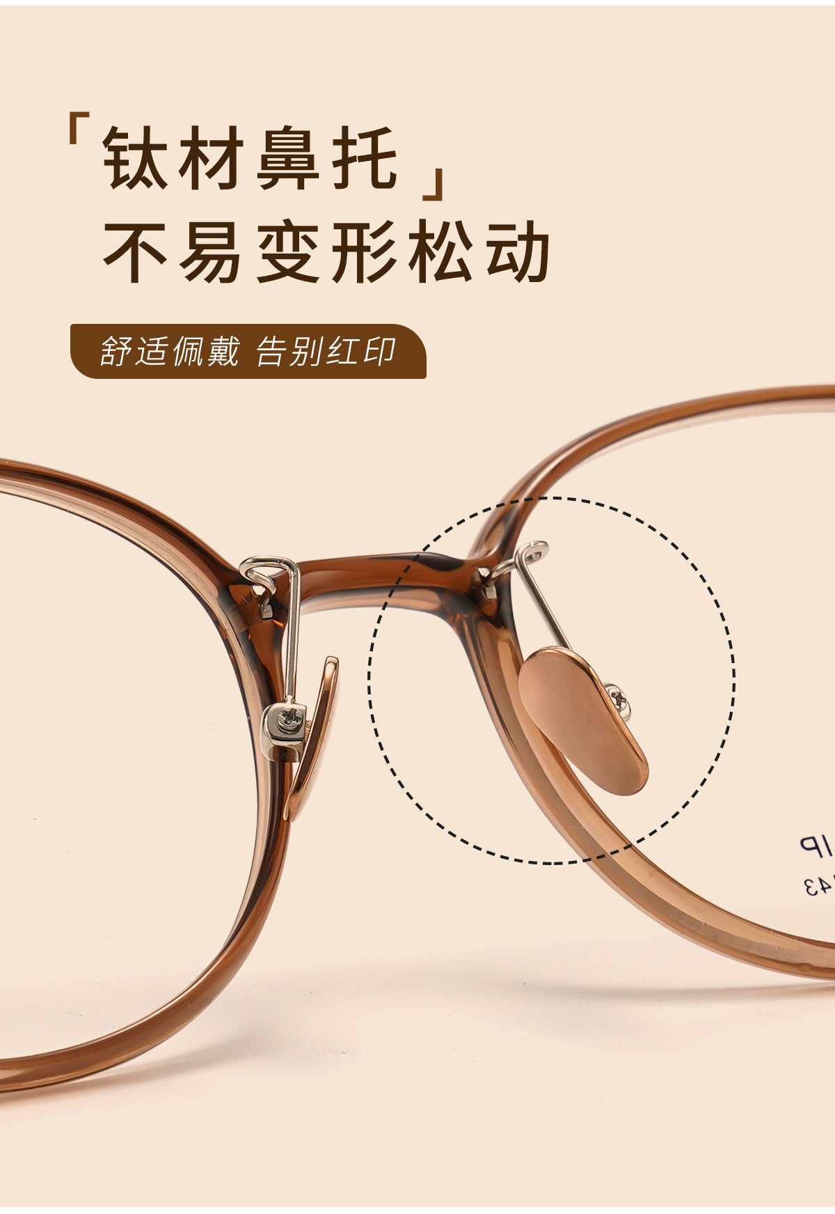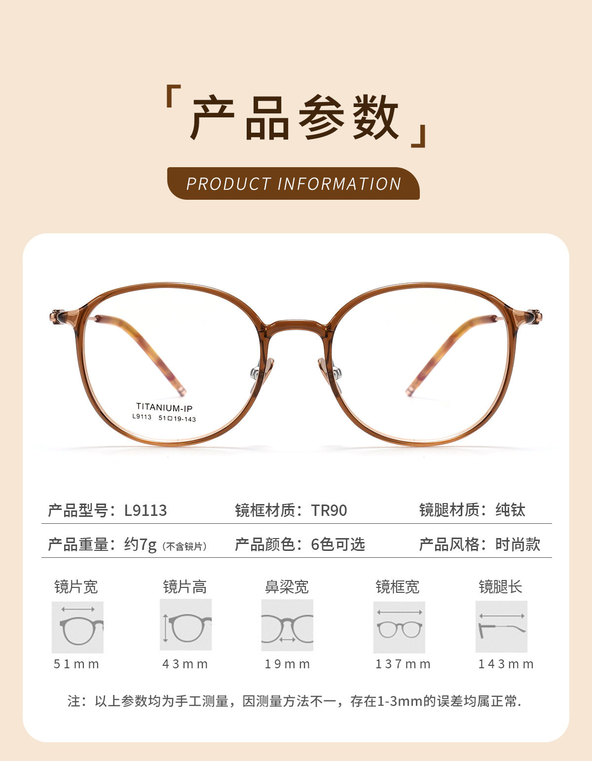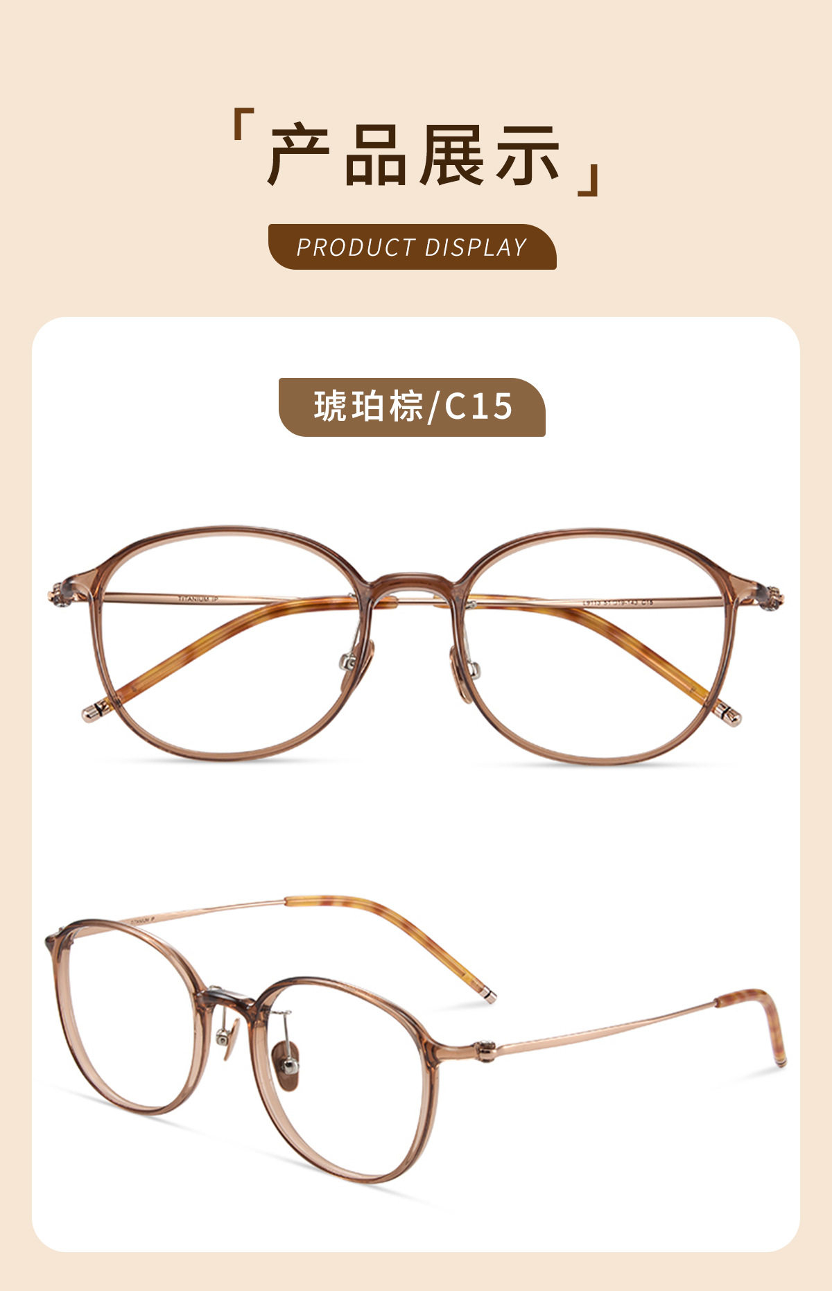 | Frame color | Black silver c1,Glacier gray c2,Cold brown c5,Transparent light pink c7,Transparent color c8,Amber brown c15 (80% customer choice) |